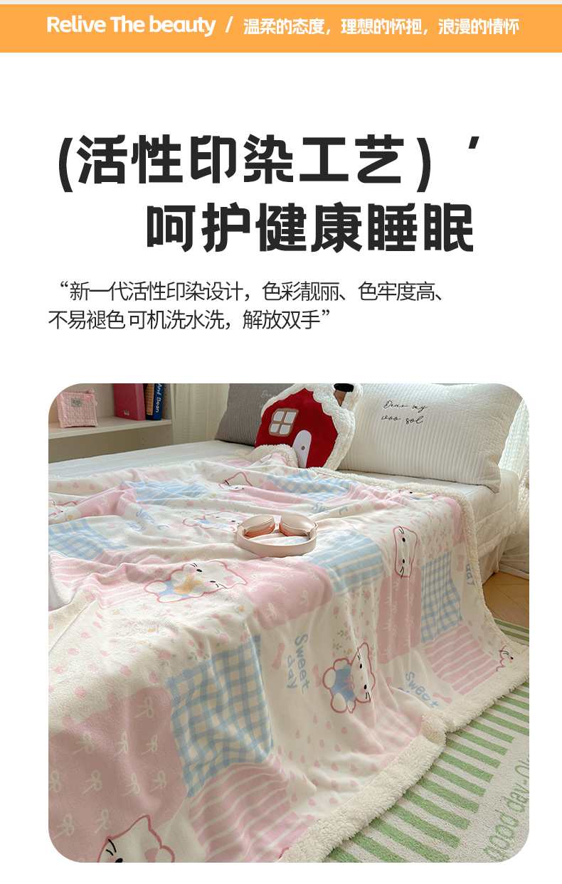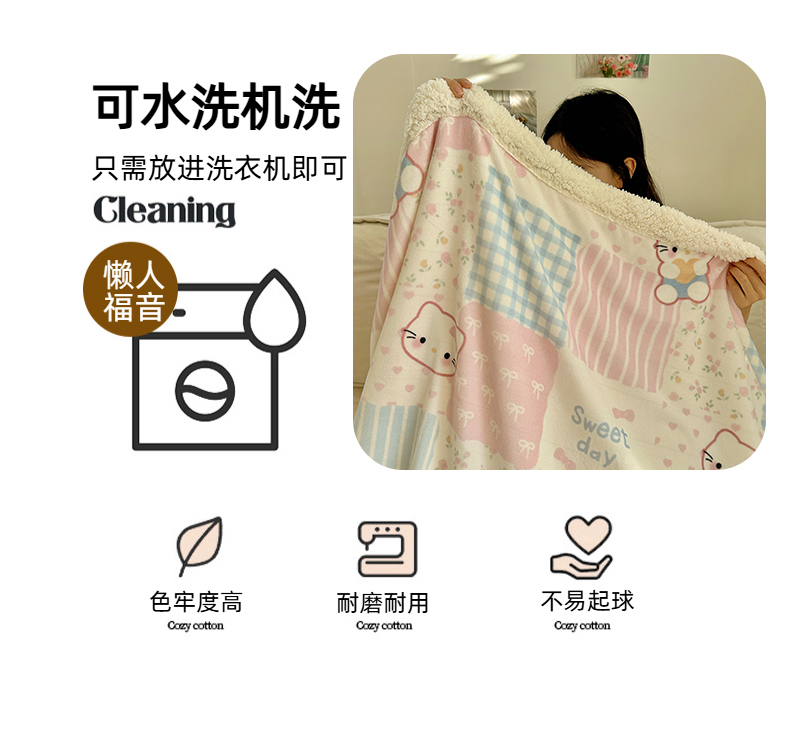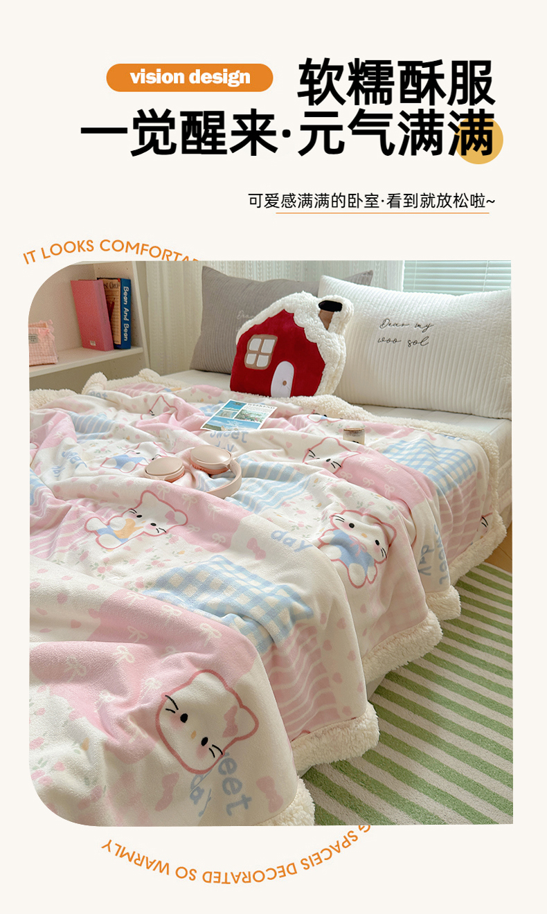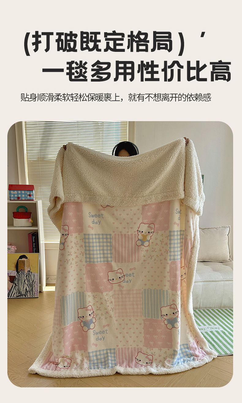 商品名称:六巷胡同 2025新款INS卡通A类牛奶绒羊羔绒毛毯毯子 软萌碎花猫