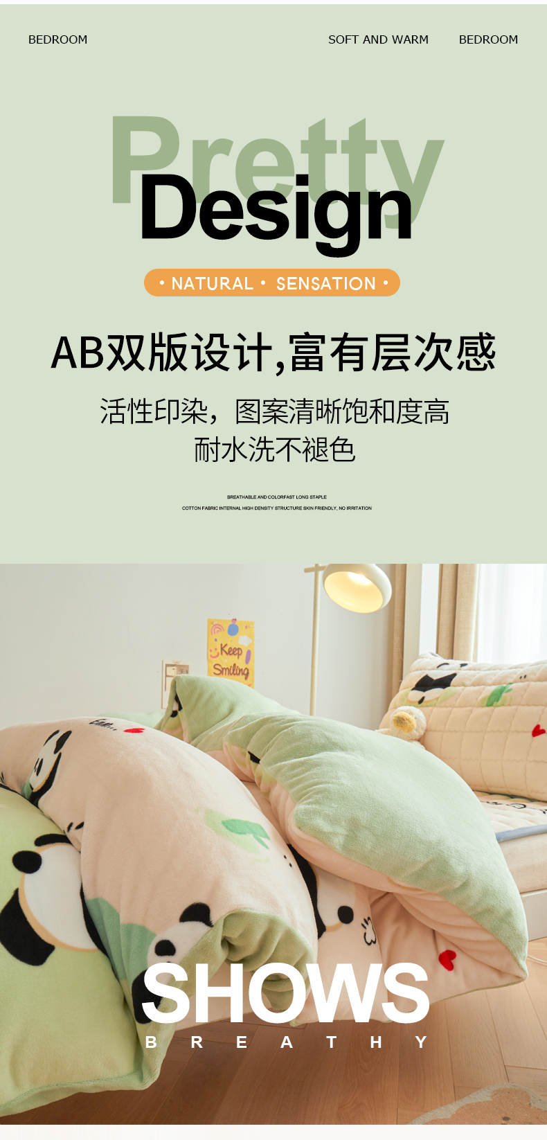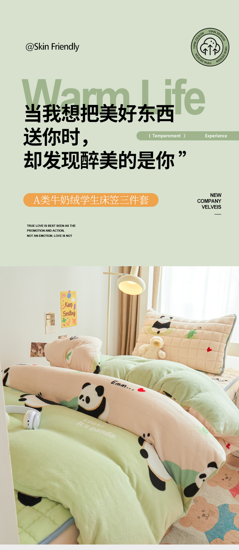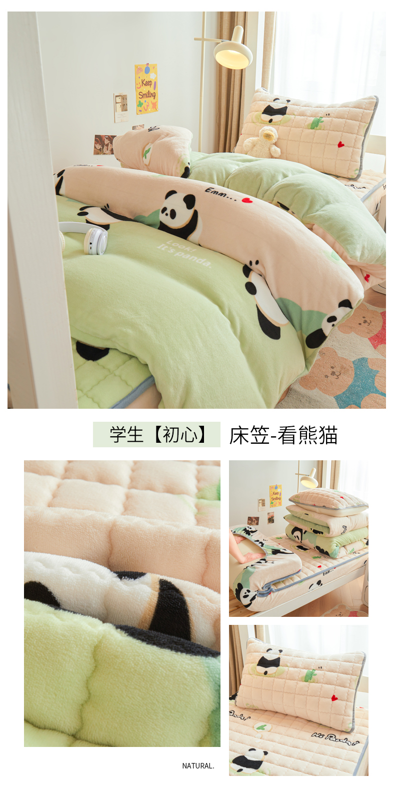 • 91家纺网 家纺一手货源 找家纺 爱思凯家纺 2025新款初心-牛奶绒学生床笠小号三件套 【初心】床笠-看熊猫