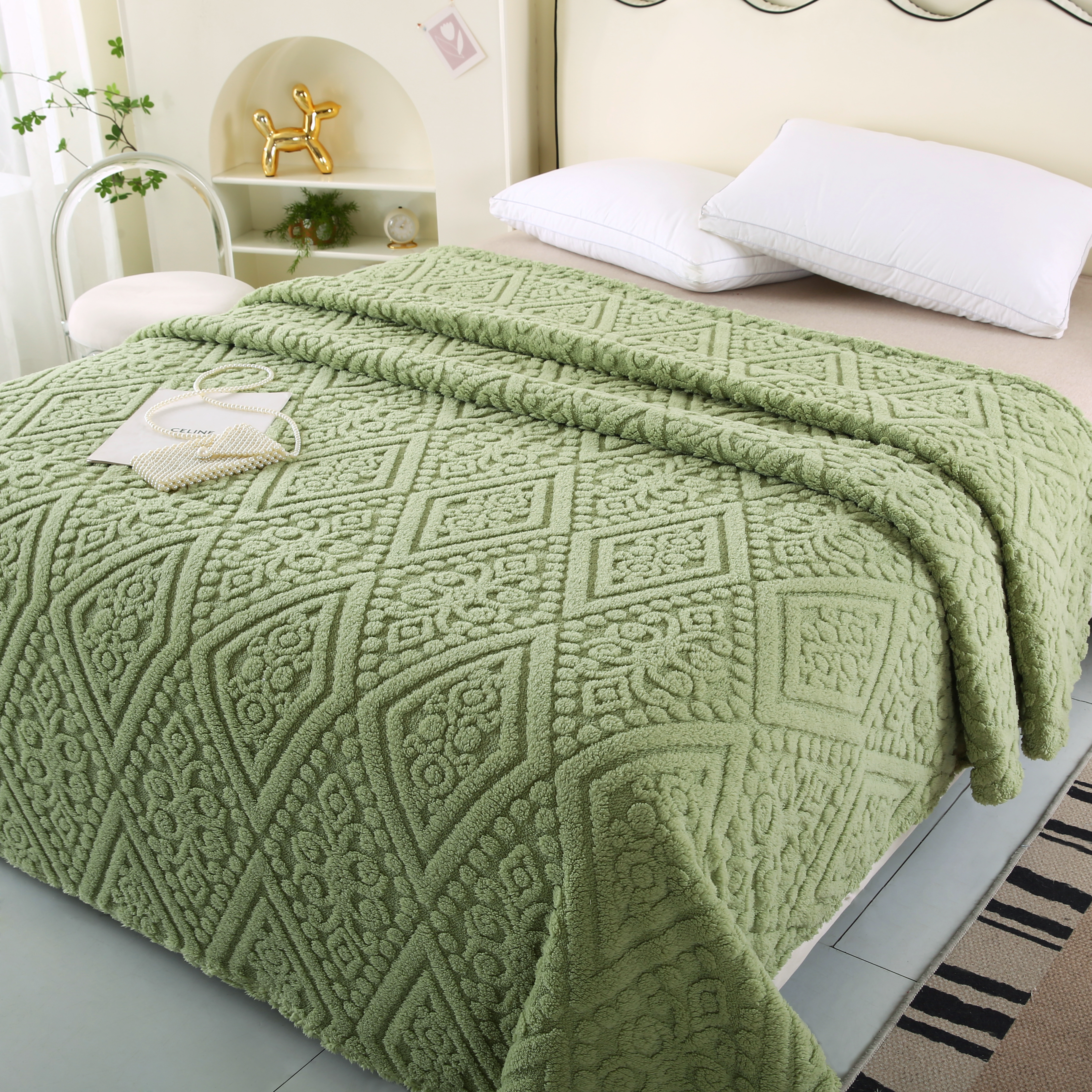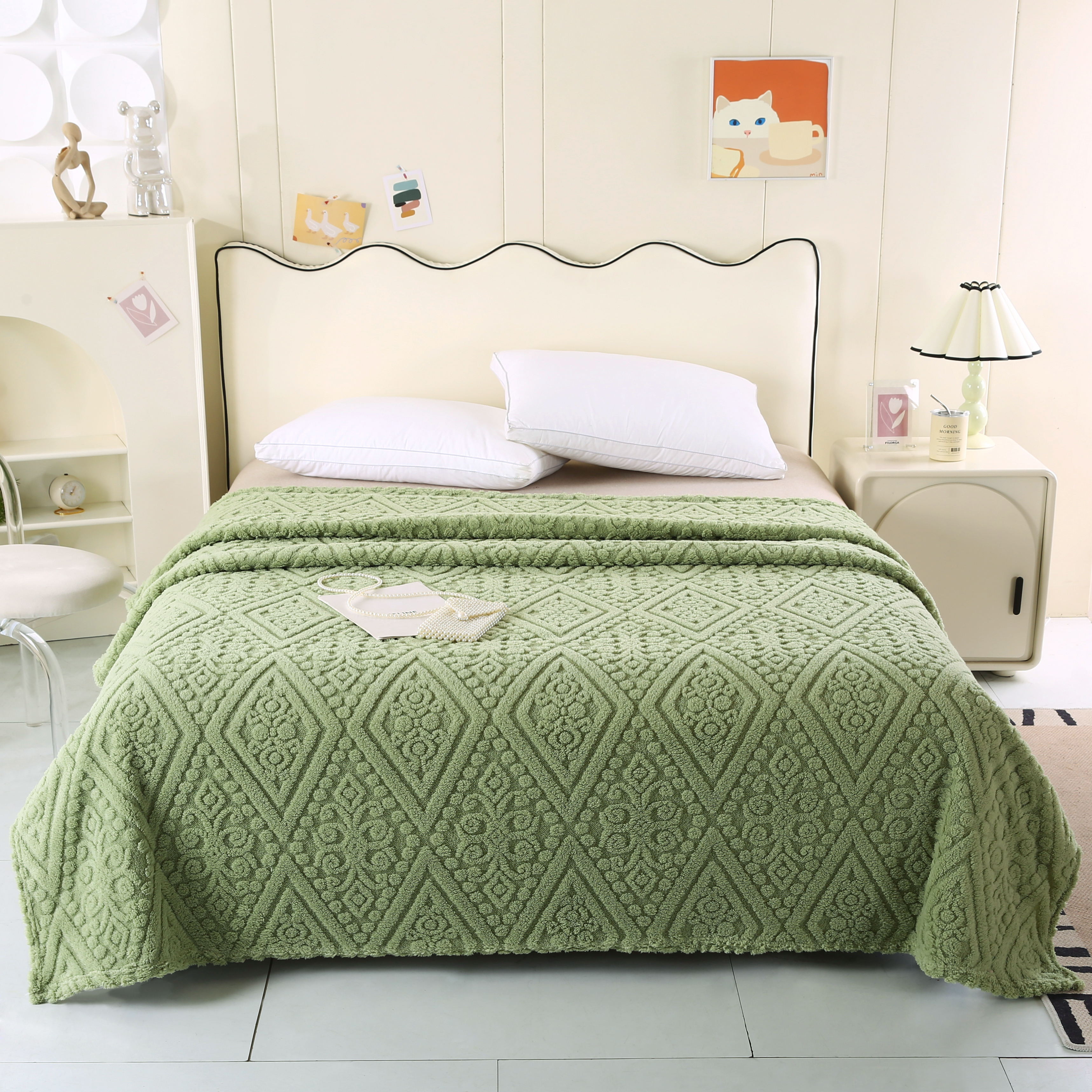 (总)巴木赫 2024新款提花朵朵绒双层羊羔绒毯,茶绿,粉色,咖啡,孔雀蓝,浅灰,浅驼