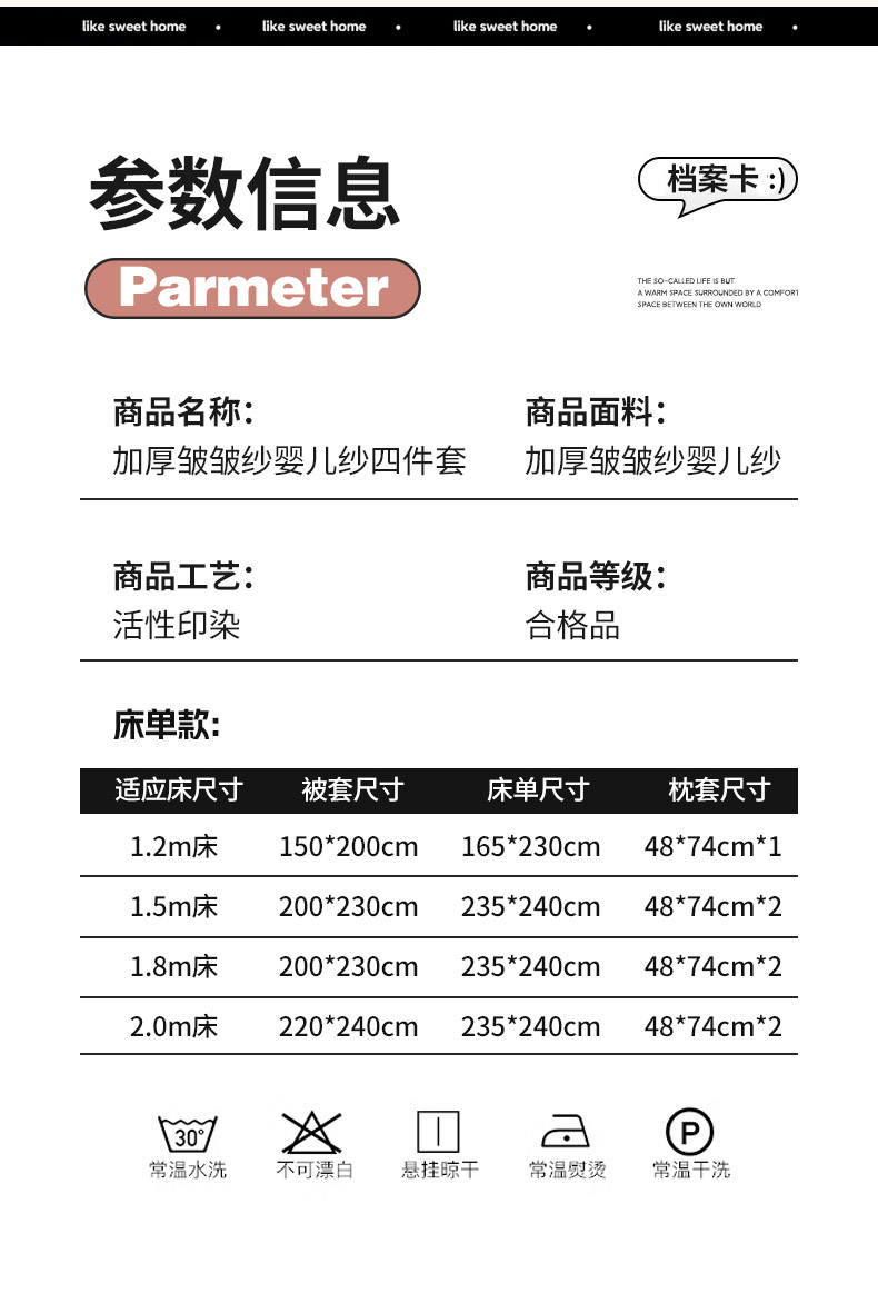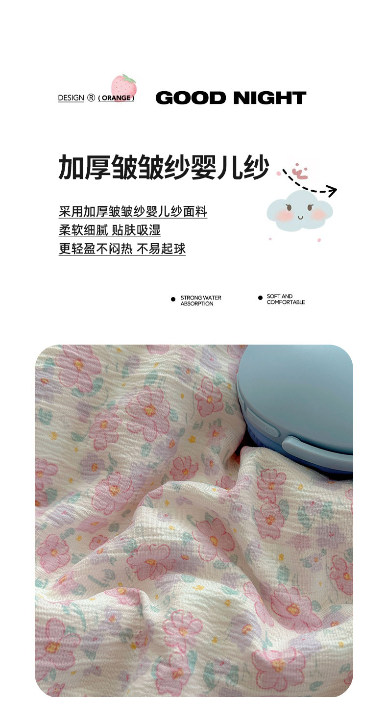 当前位置: 91家纺网 > 商品网购 > 床品套件 > 四件套 > 其它四件套 > 金梦拉家纺 2025新款加厚皱皱纱婴儿纱四件套 小樱桃