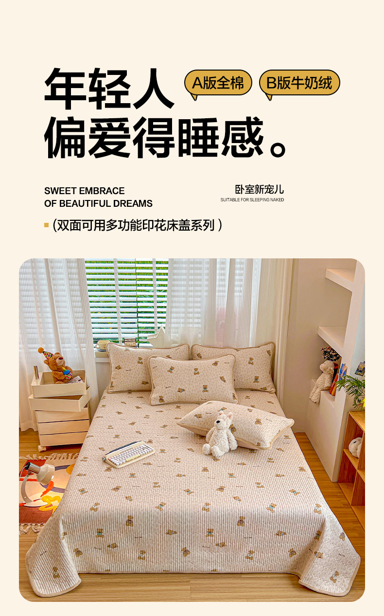• 91家纺网 家纺一手货源 找家纺 X猫先生 2025新品棉加绒床盖一面全棉一面牛奶绒床盖炕盖加厚床单床垫四季款系列二 趴趴熊(A棉B绒)