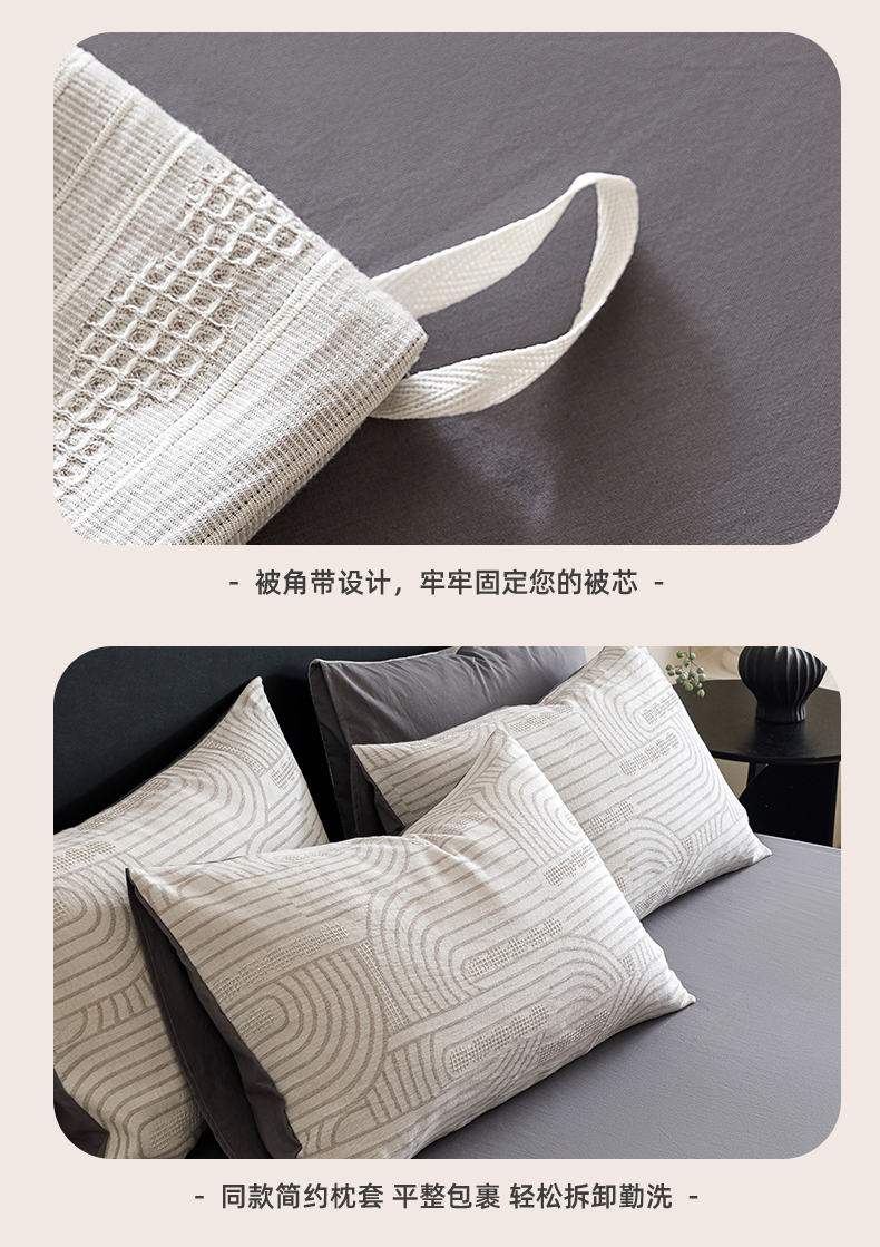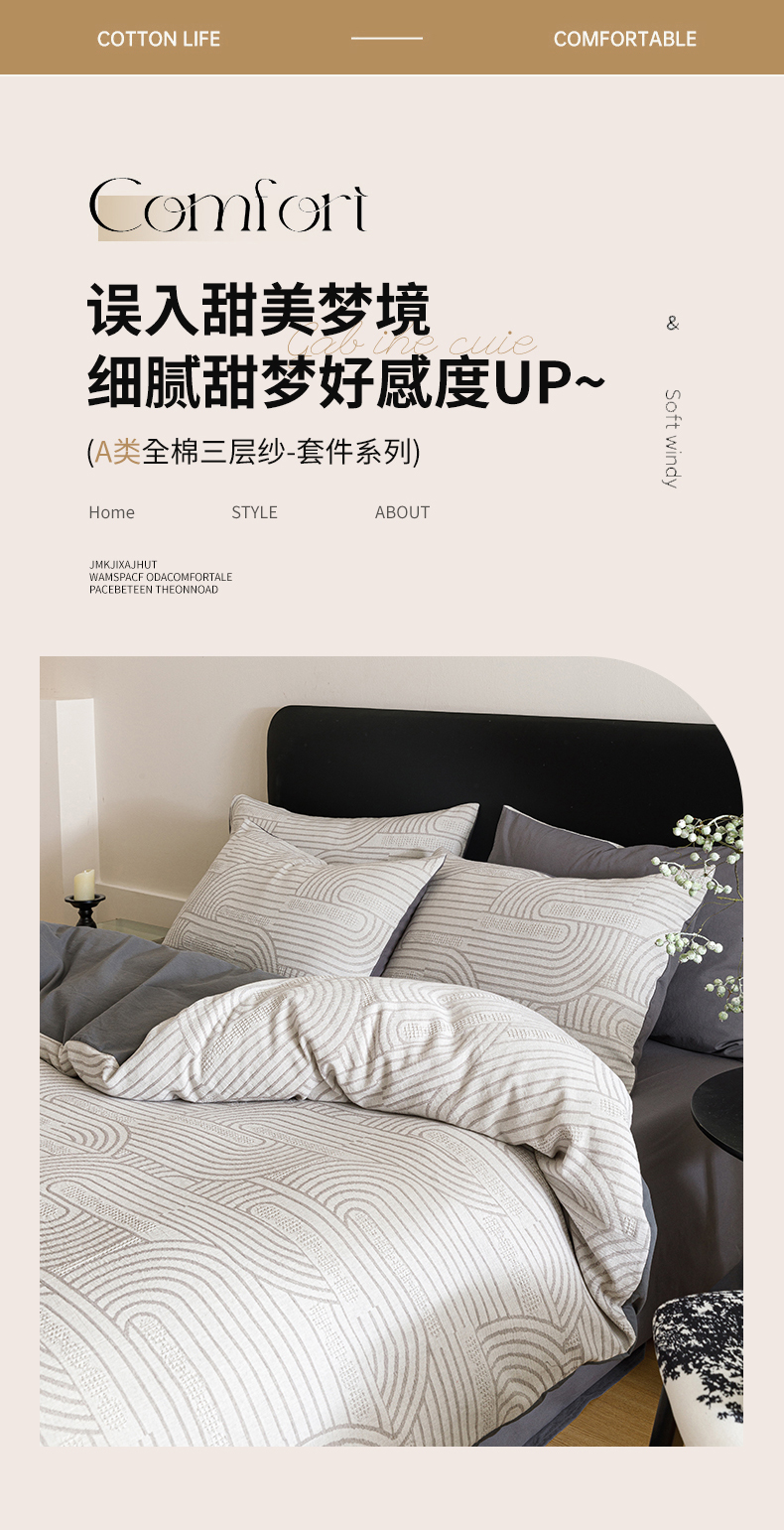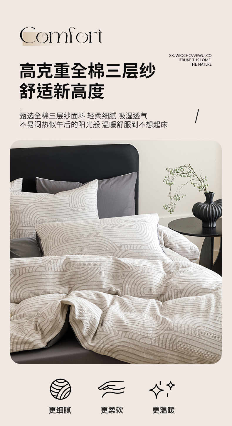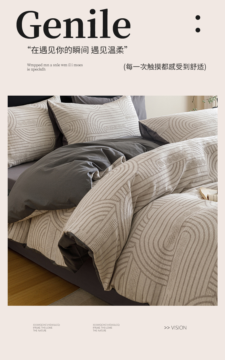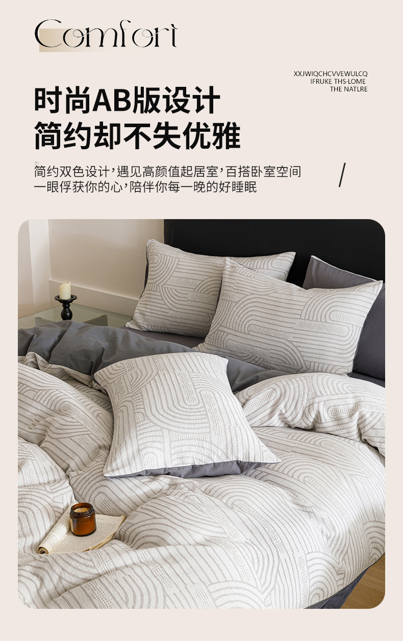 春皖家纺 2026新款A类全棉双层纱AB版简约四件套 瑞拉-灰