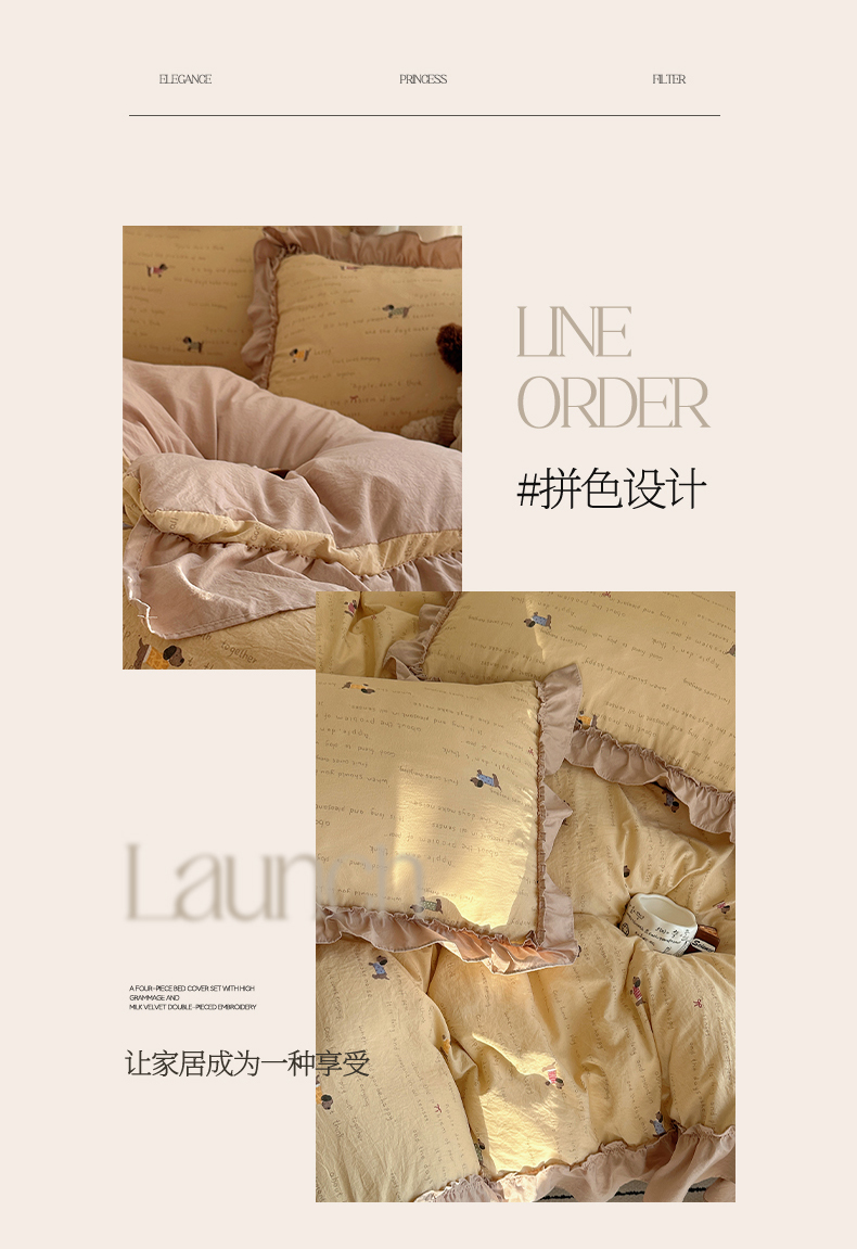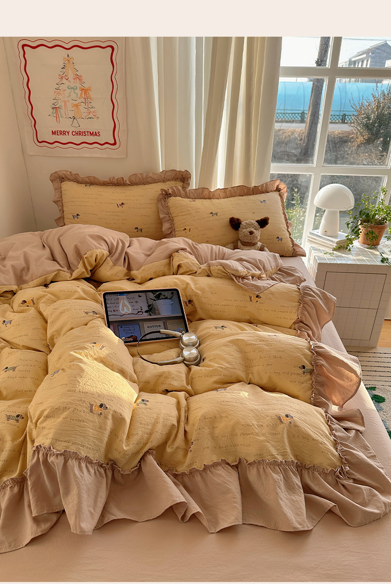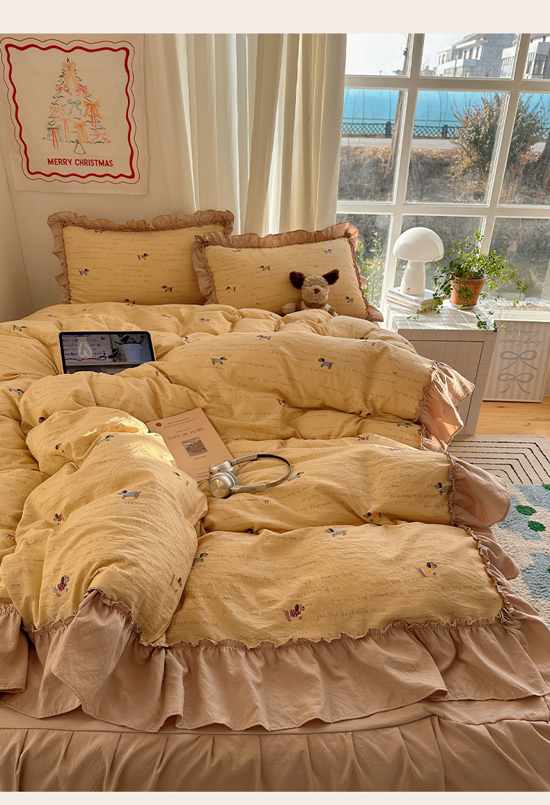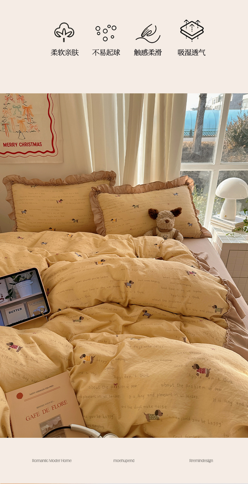 当前位置: 91家纺网 > 商品网购 > 床品套件 > 四件套 > 其它四件套 > 韩都家居 2026新款韩系大花边系列古棉四件套 斑珈狗