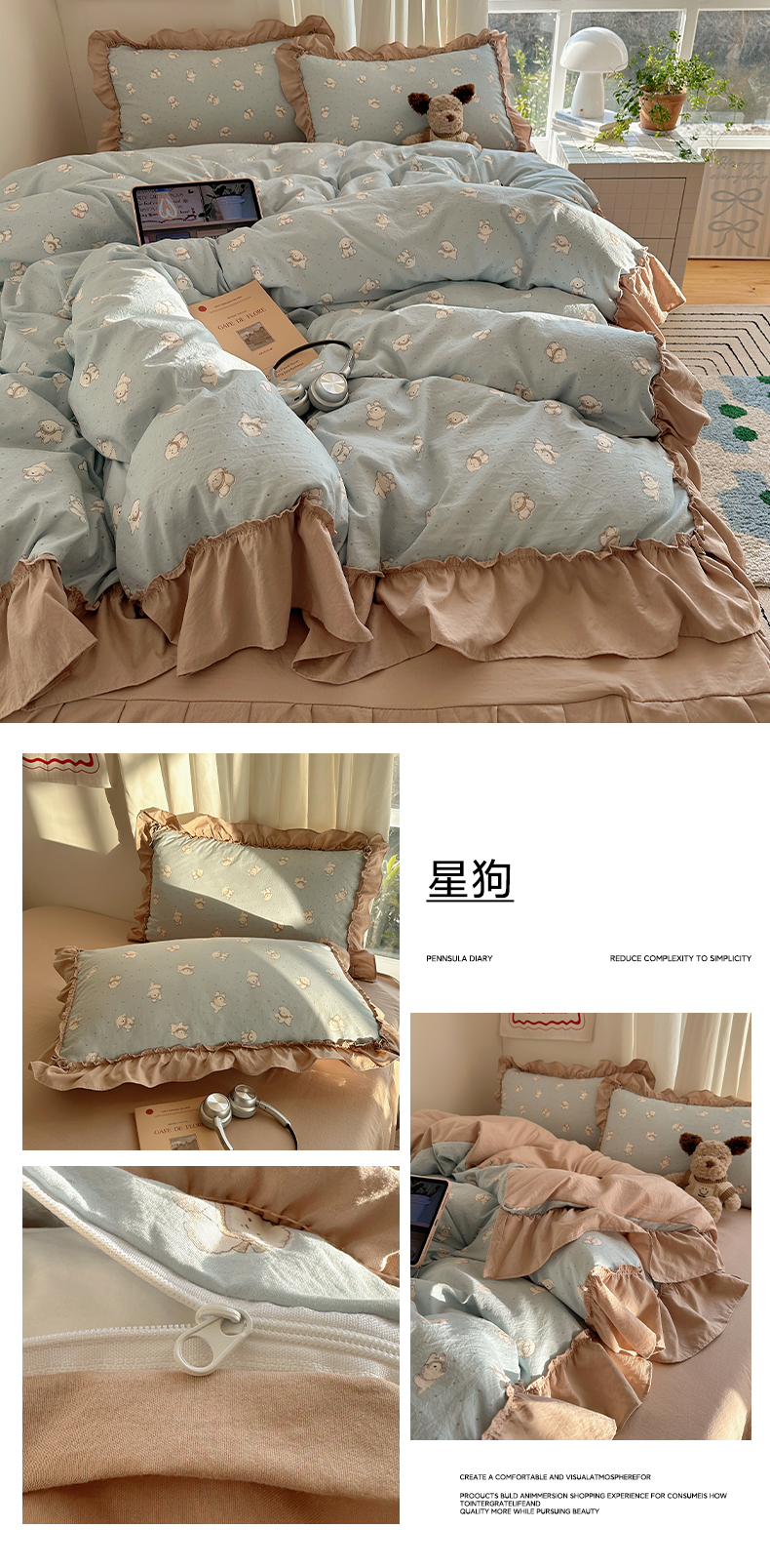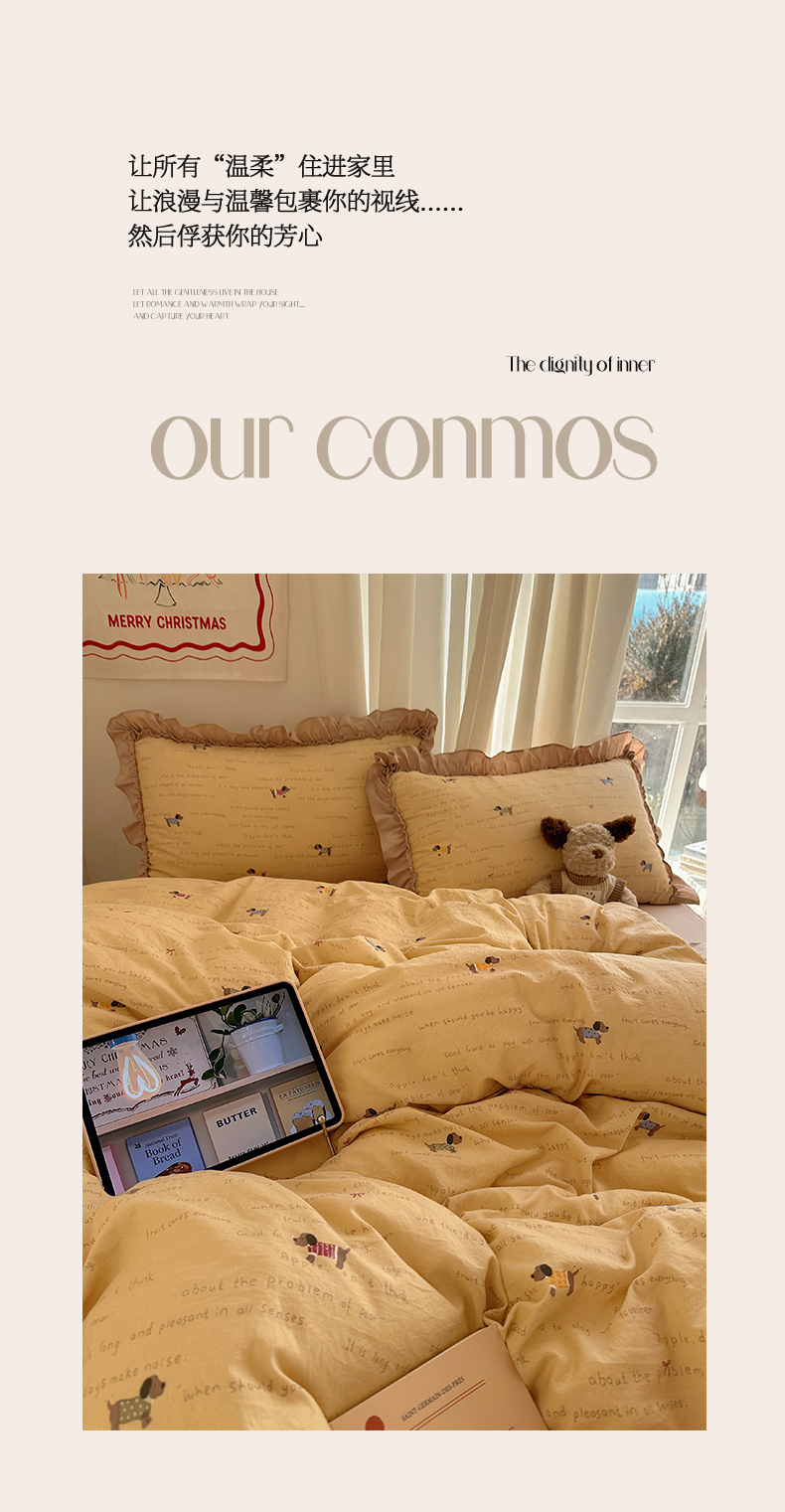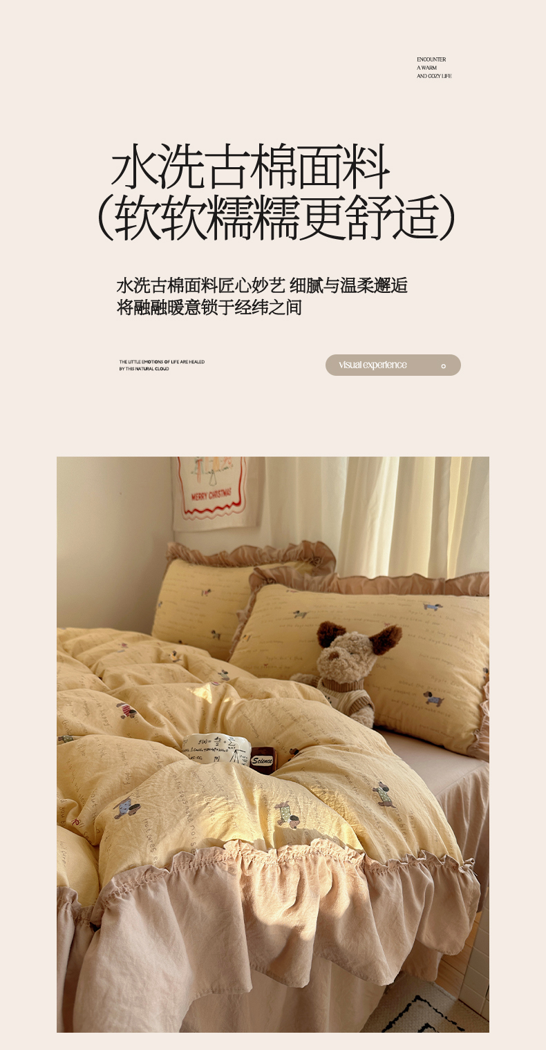 当前位置: 91家纺网 > 商品网购 > 床品套件 > 四件套 > 其它四件套 > 韩都家居 2026新款韩系大花边系列古棉四件套 斑珈狗