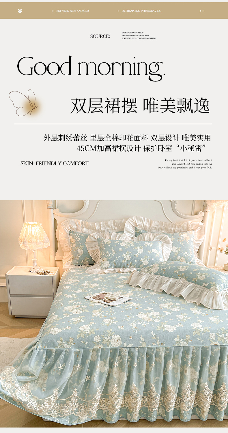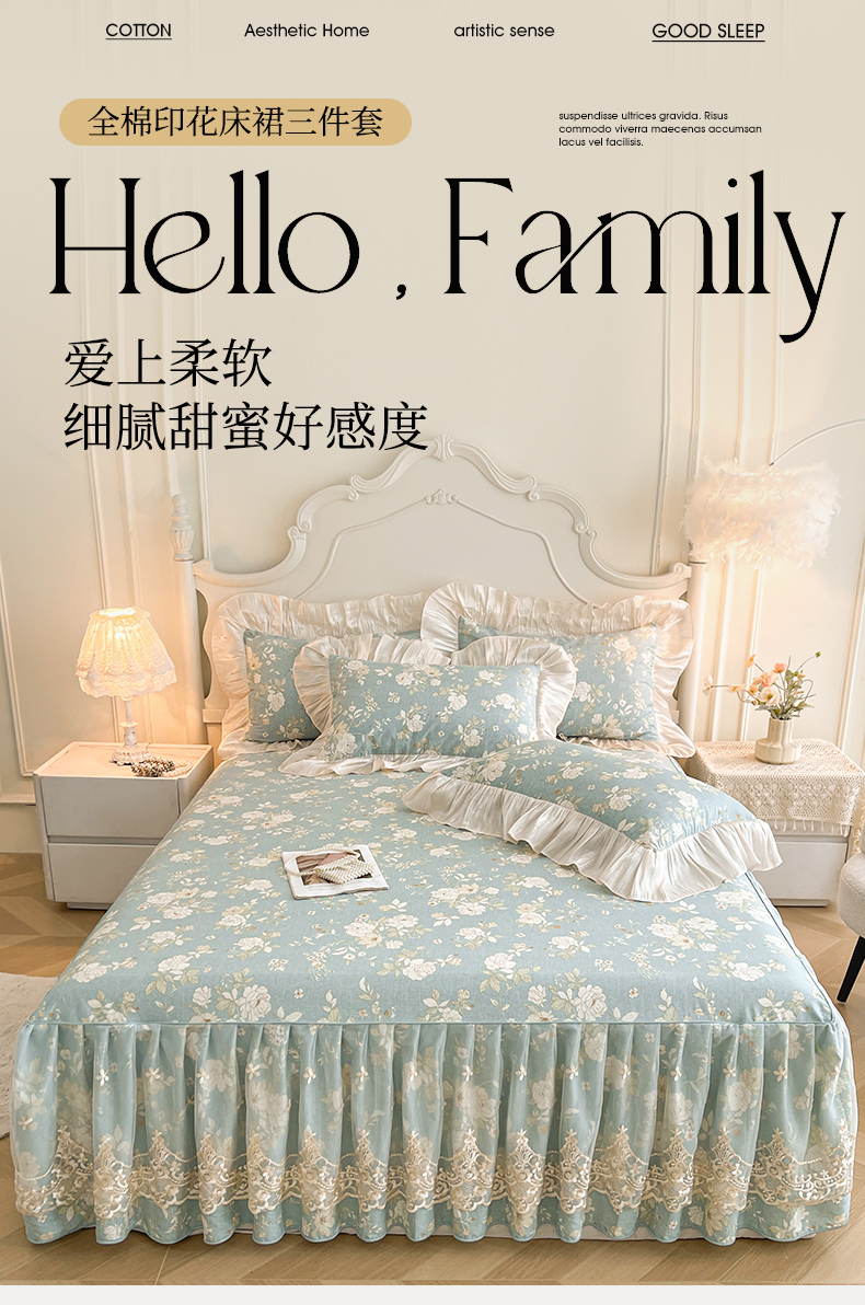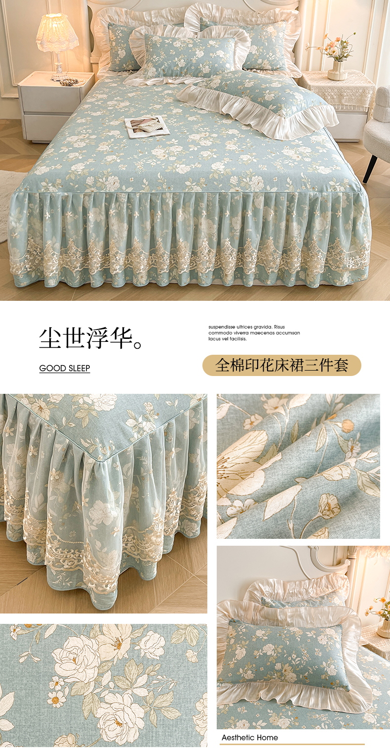 当前位置: 91家纺网 > 商品网购 > 床品套件 > 三件套 > 宜凡家纺 2026新款全棉印花床裙款三件套 尘世浮华