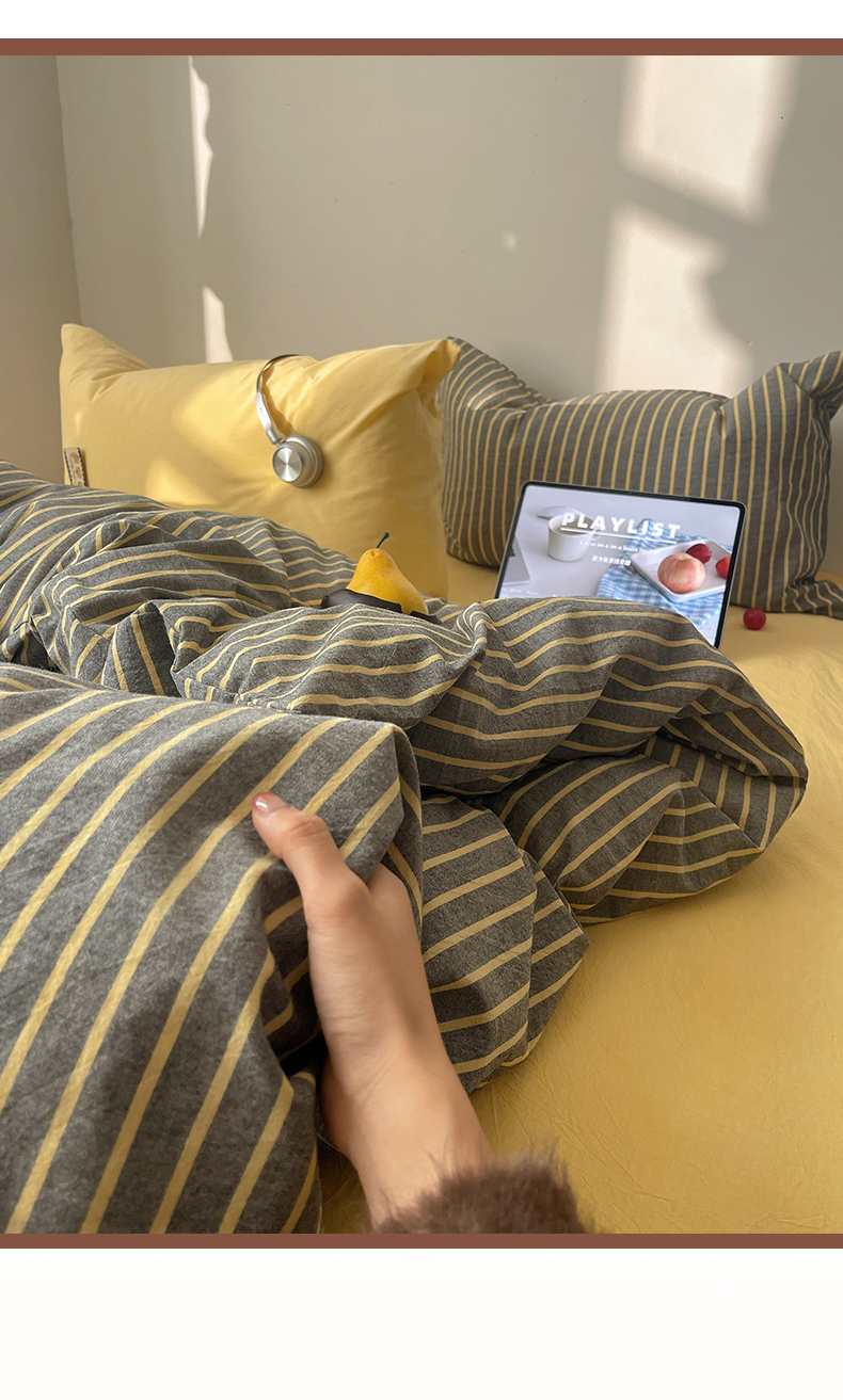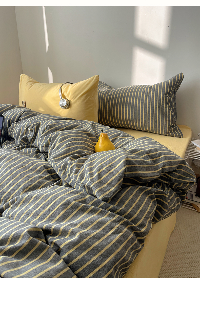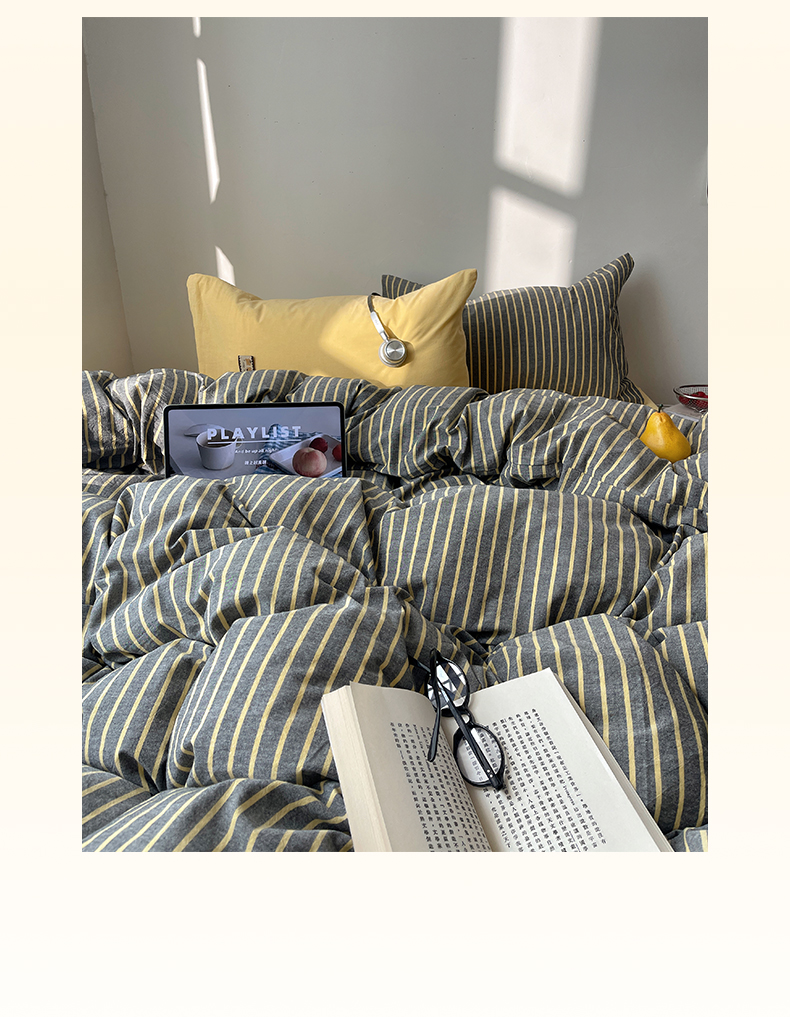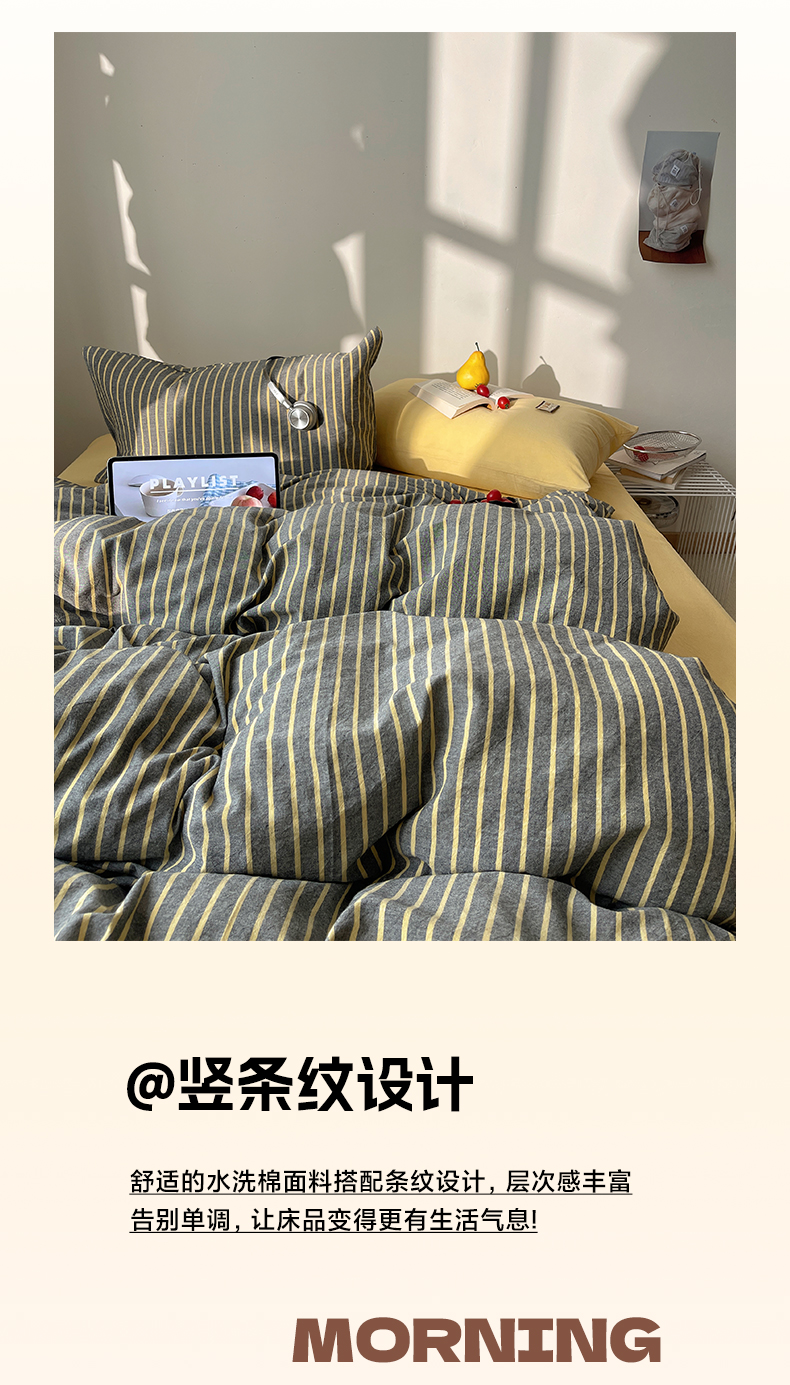 商品名称:雅居纺家纺 2026新款全棉色织混搭水洗棉四件套 雾屿-深灰