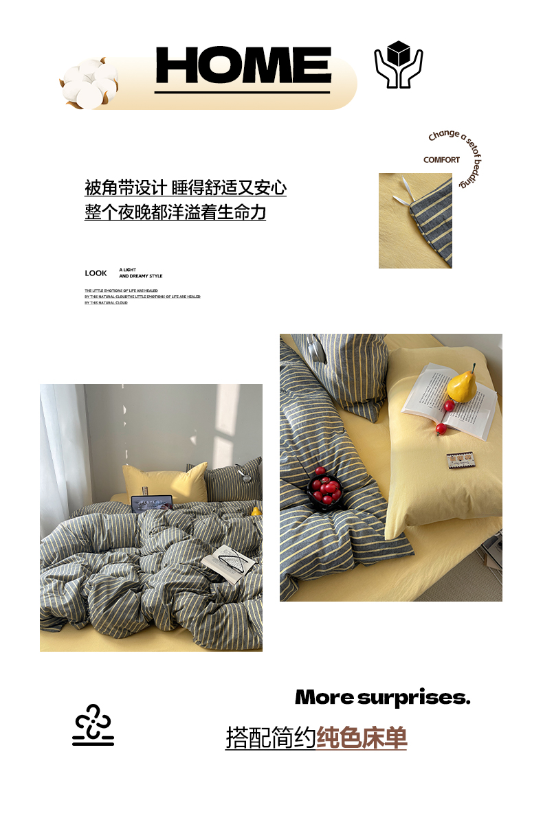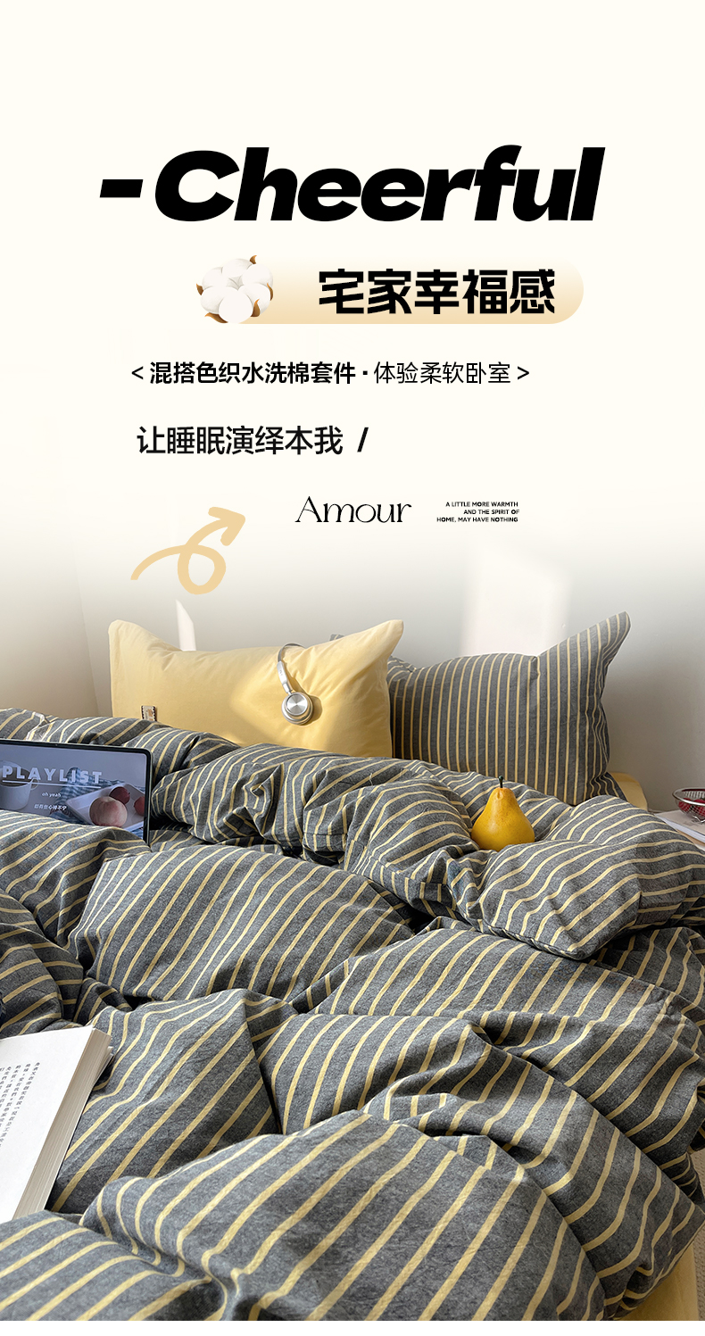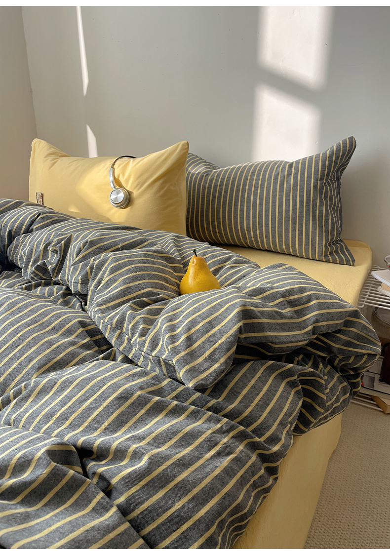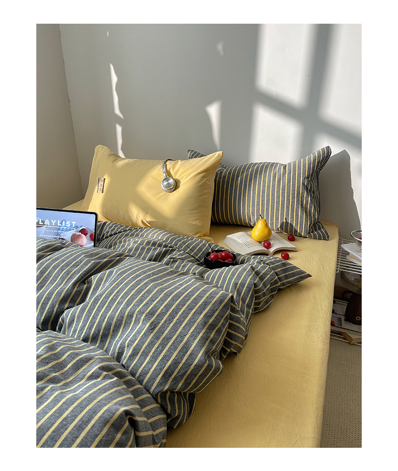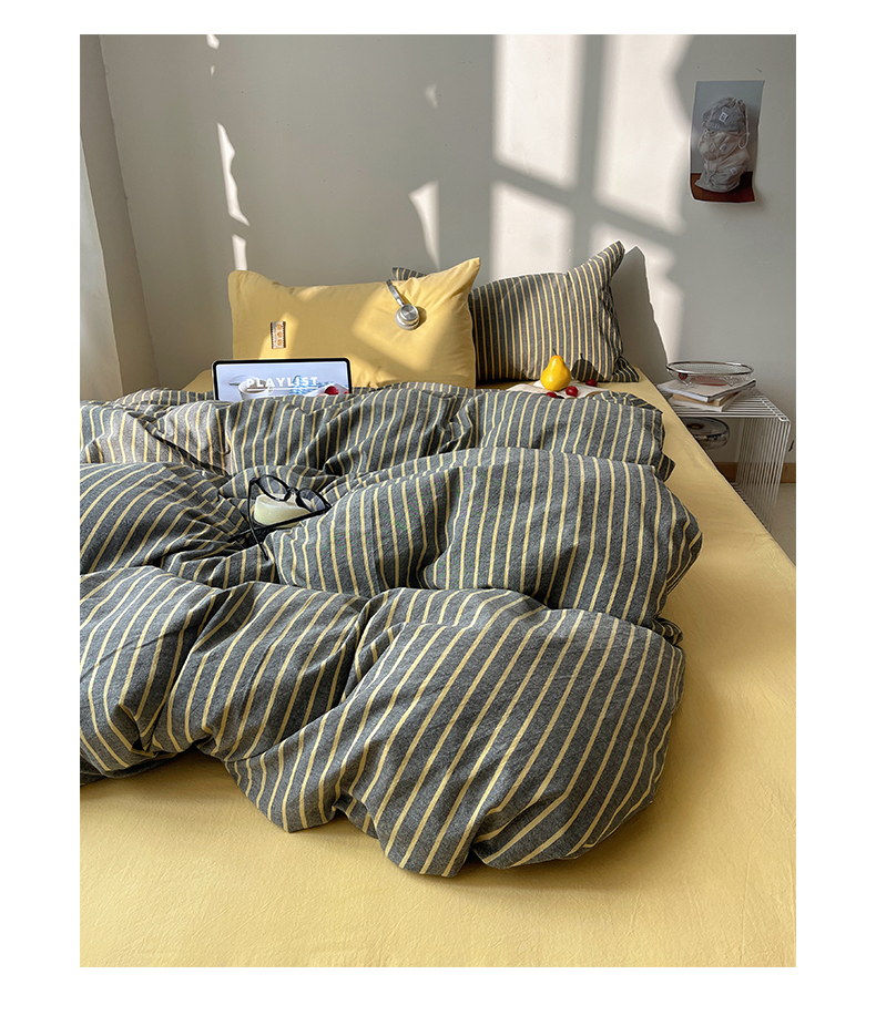 商品名称:雅居纺家纺 2026新款全棉色织混搭水洗棉四件套 雾屿-深灰