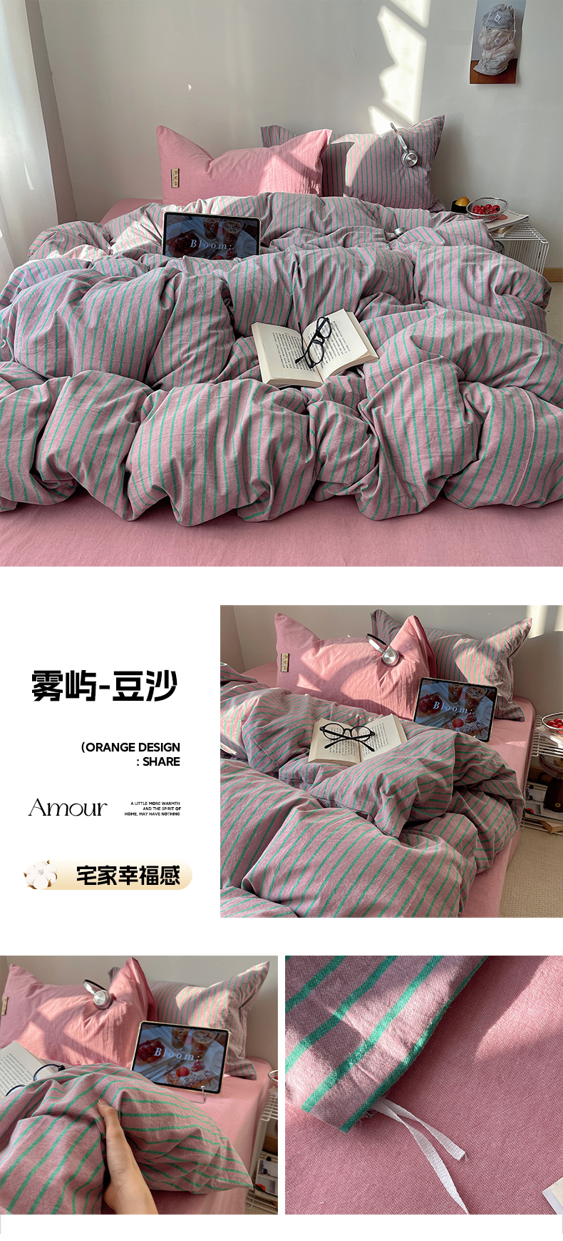 (总)雅居纺家纺 2026新款全棉色织混搭水洗棉四件套,雾屿-豆沙,雾屿-橘黄,雾屿-密黄,雾屿-深灰,雾屿-月白,雾屿-云水蓝,雾屿-竹青
