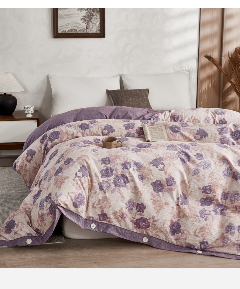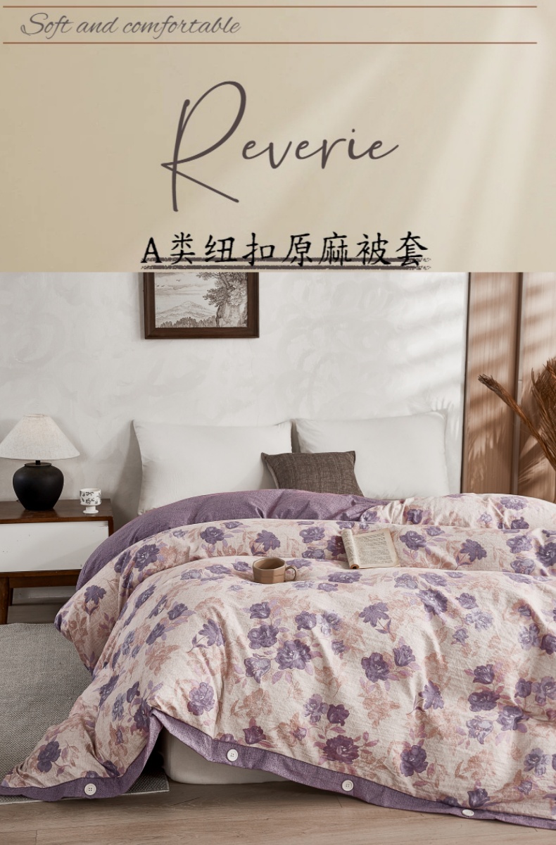 商品名称:圣比熊 2026新款A类原麻纽扣加厚被套床单宿舍双人床仿亚麻被子 安紫