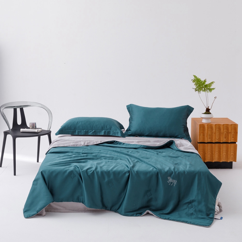 商品名称:CINNY馨宜 2026新款60莱赛尔大豆纤维撞色天丝夏被-伯爵 孔雀绿