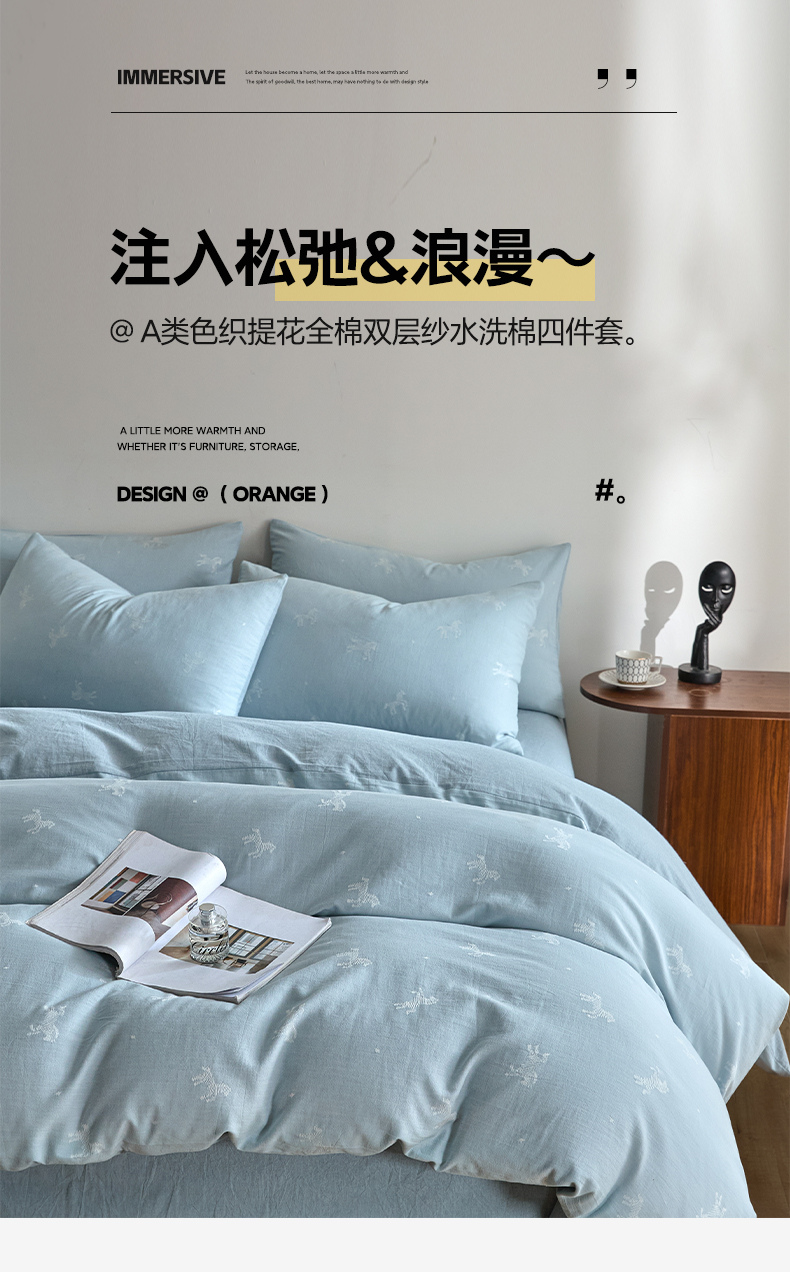 (总)如一 2026新款A类色织提花全棉双层纱水洗棉四件套,序章蓝,序章粉,序章绿,蝶漫粉,蝶漫灰,蝶漫咖,蝶漫绿,浮光粉,浮光灰,浮光咖,浮光绿,花忆粉,花忆灰,花忆绿,骏影黑,骏影蓝,骏影绿,兰序咖,兰序蓝,兰序绿,兰序紫,叶笙粉,叶笙咖,叶笙绿