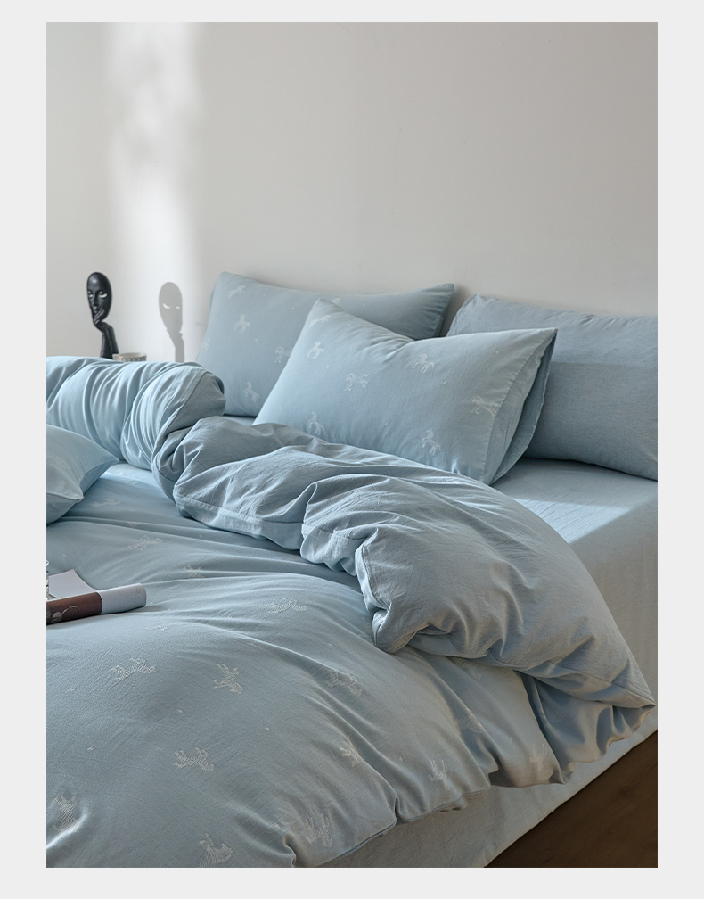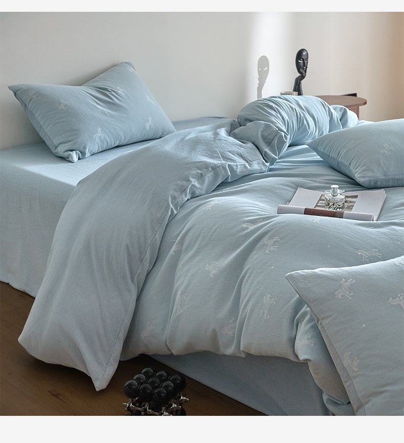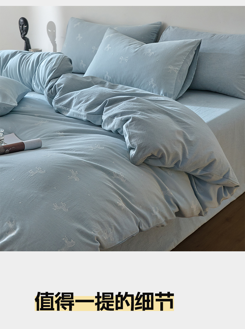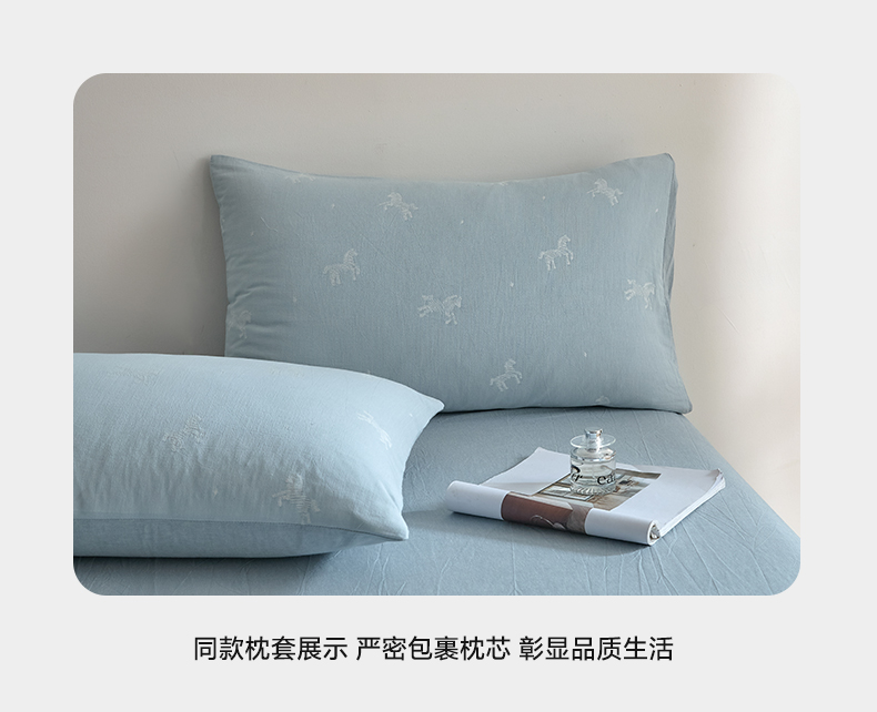 商品名称:如一 2026新款A类色织提花全棉双层纱水洗棉四件套 骏影蓝