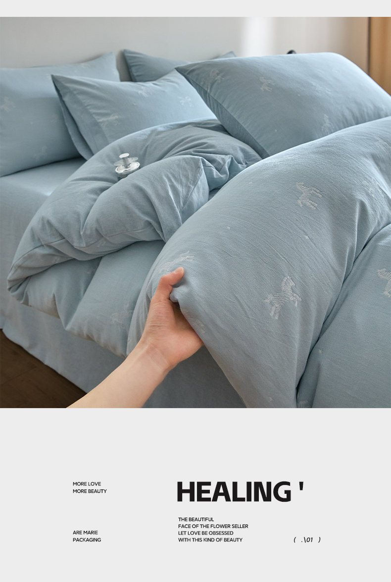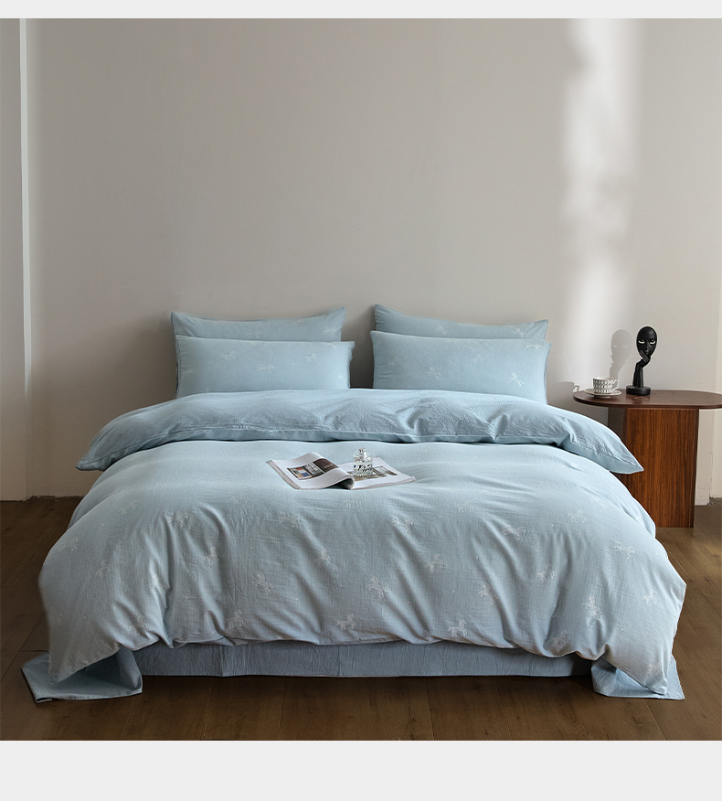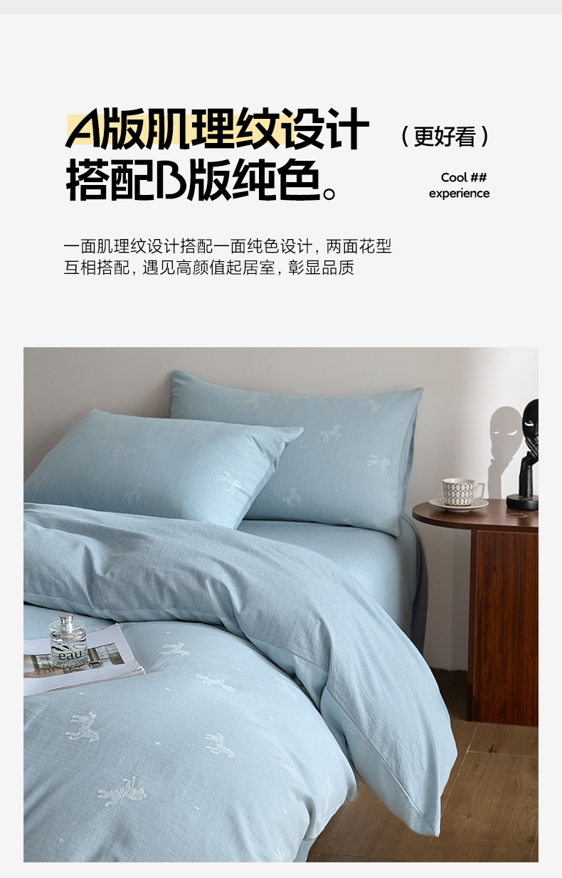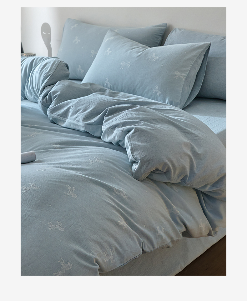 商品名称:如一 2026新款A类色织提花全棉双层纱水洗棉四件套 骏影蓝