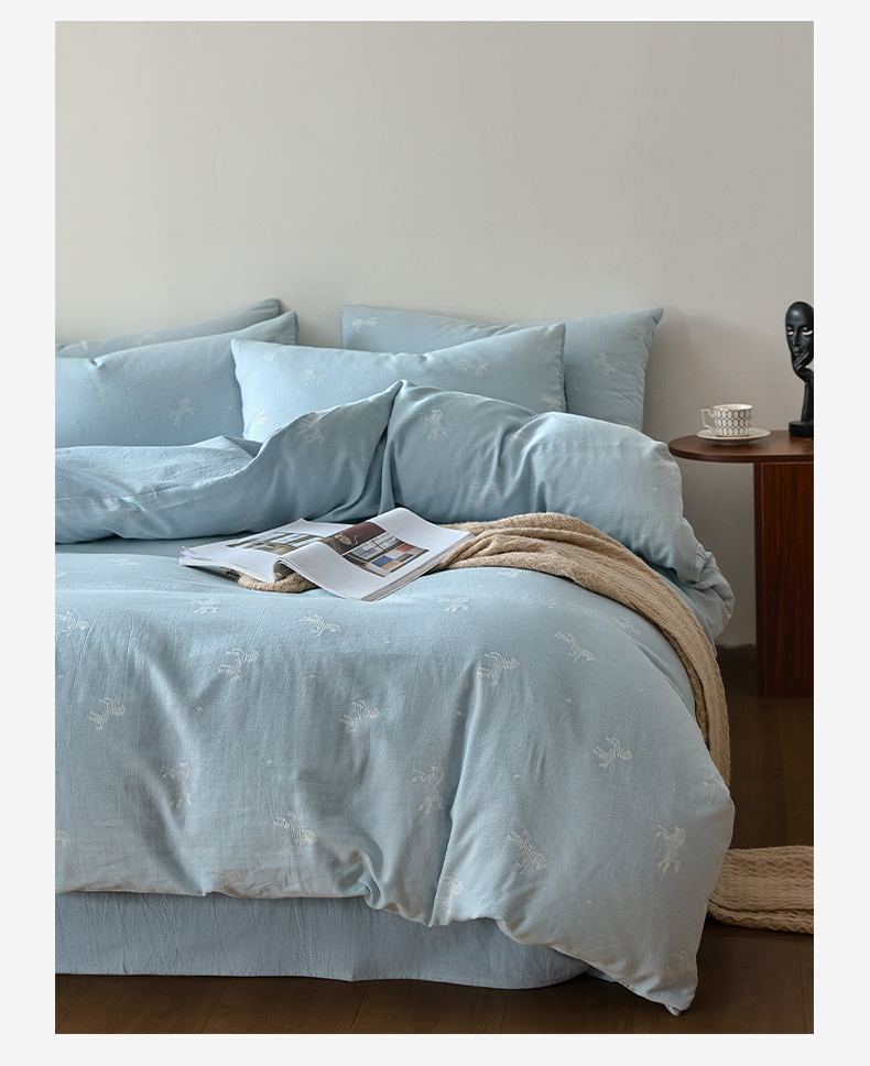 如一 2026新款A类色织提花全棉双层纱水洗棉四件套 骏影蓝