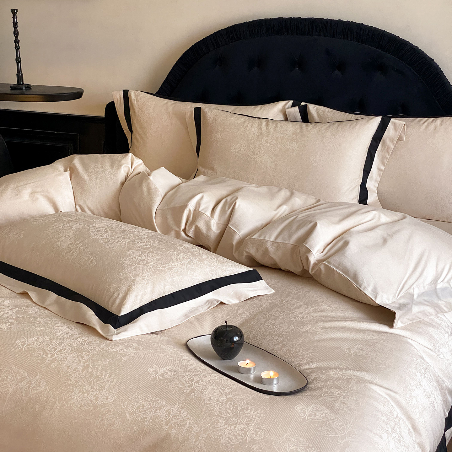 (总)太古汇家居 2026新款全棉提花“凡尔赛”系列四件套,凡尔赛-浅奶油,凡尔赛-天空蓝,凡尔赛-香草粉