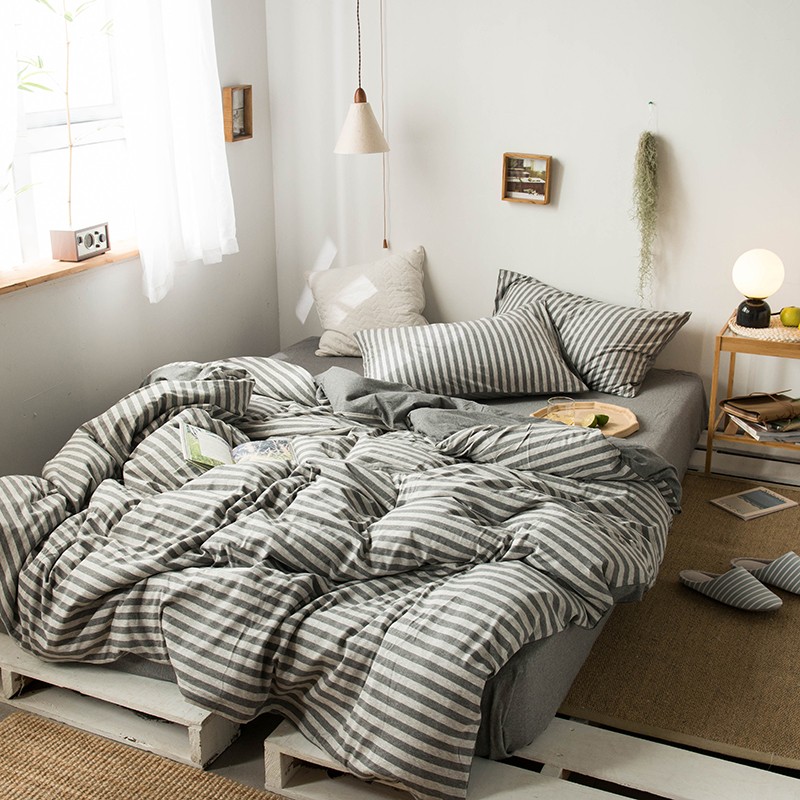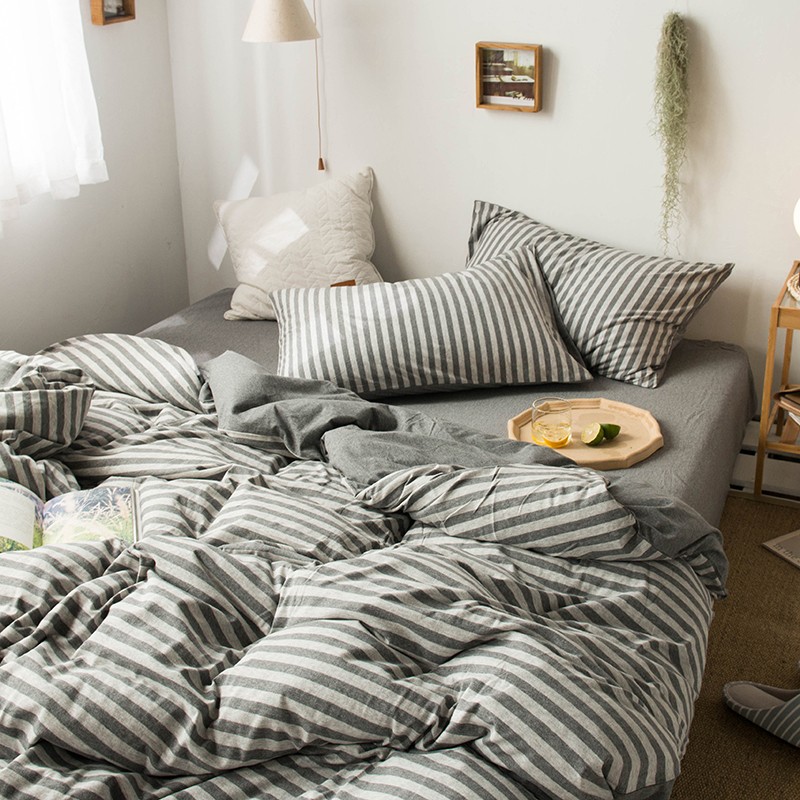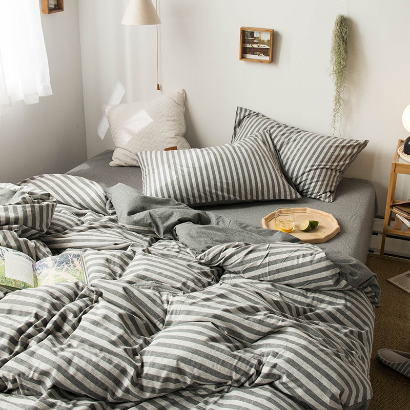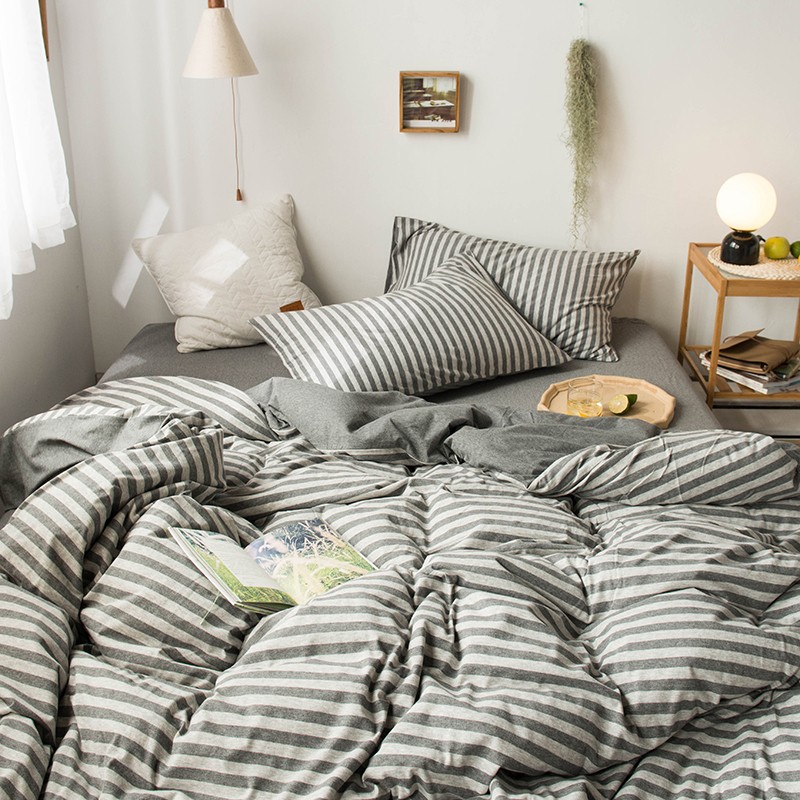 尚品本色2025年新款简约风全棉水洗棉格子条纹系列四件套光年灰,光年灰