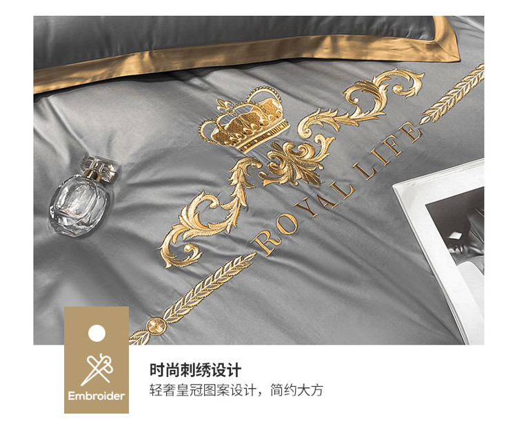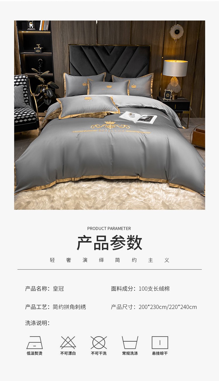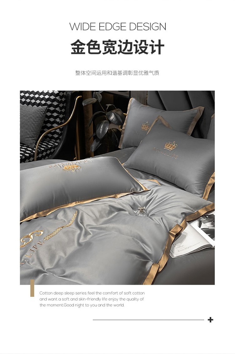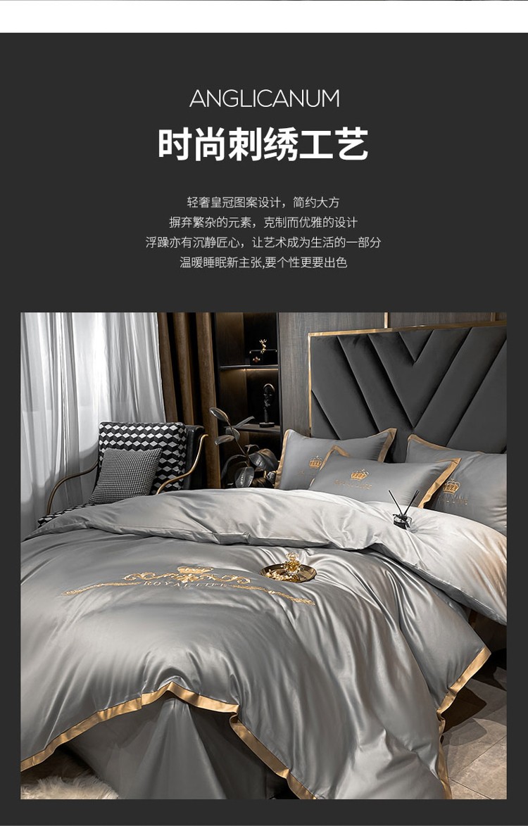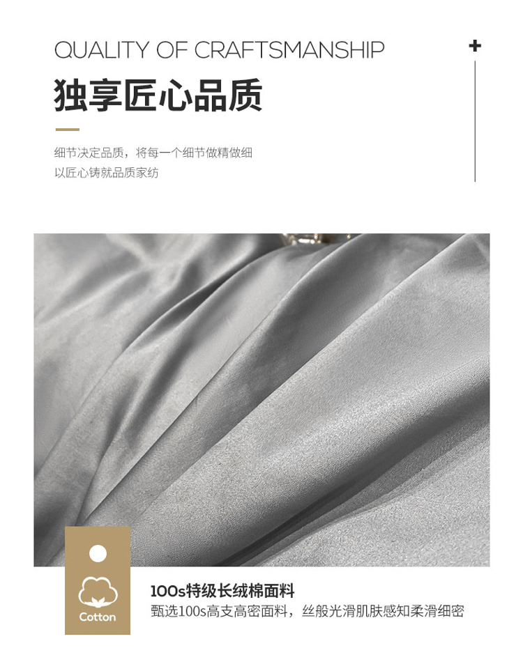 商品名称:安妮家居 2021新款皇冠100s长绒棉四件套 高级灰