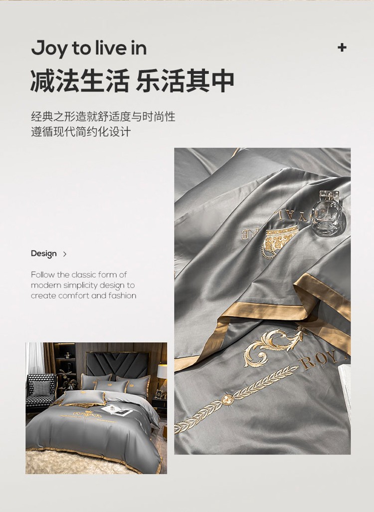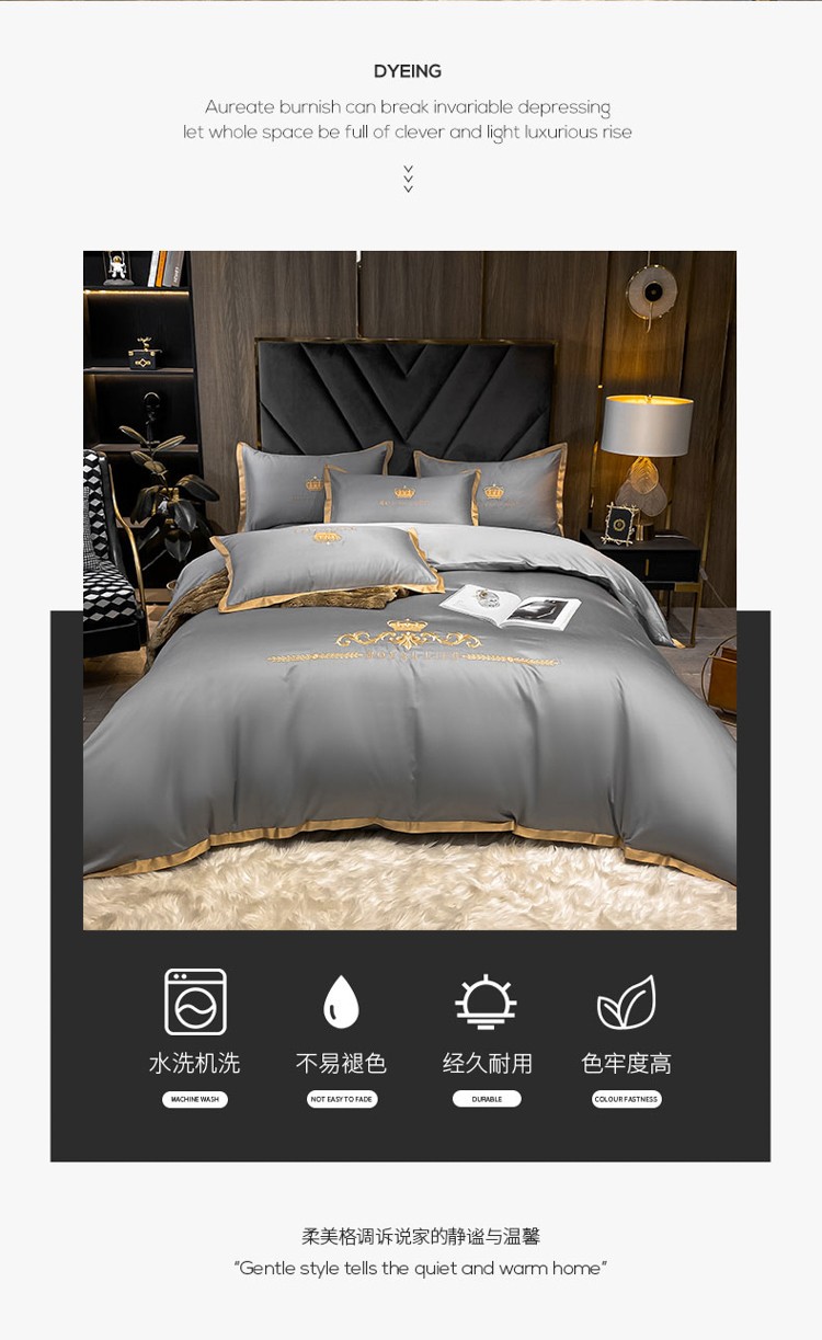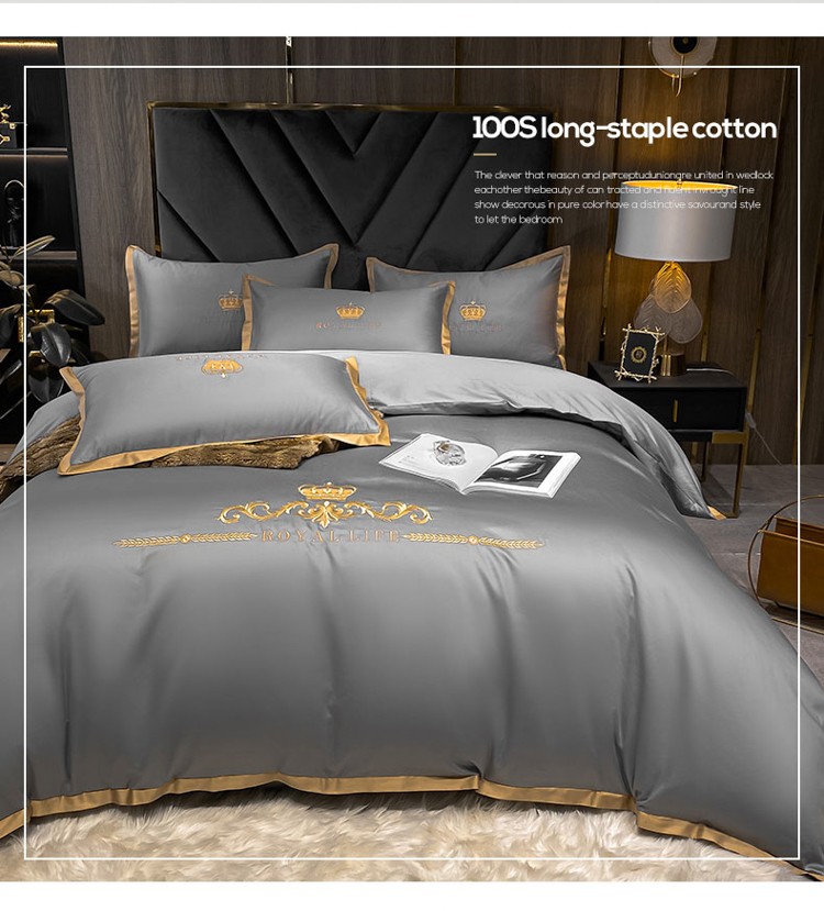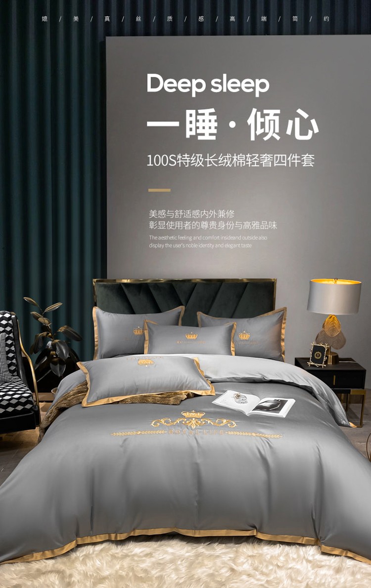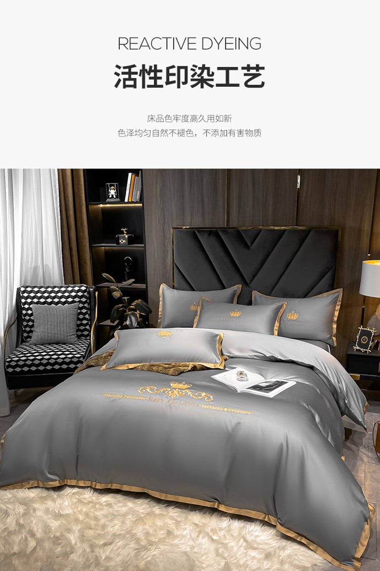 商品名称:安妮家居 2021新款皇冠100s长绒棉四件套 高级灰