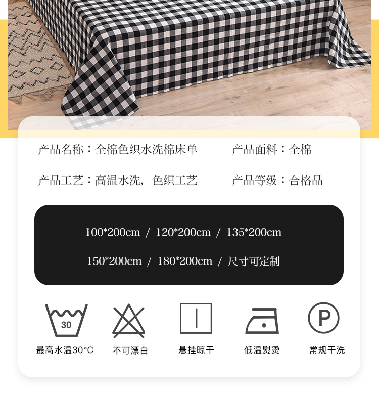 商品名称:甜之梦2025水洗棉单品床笠(任何尺寸都可以定做) 经典黑格
