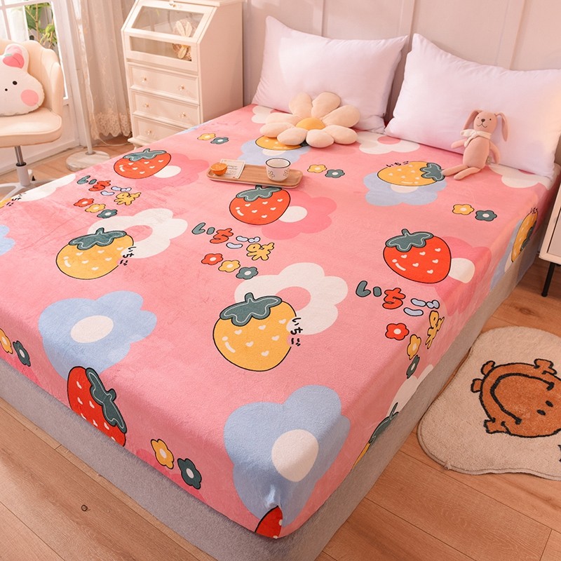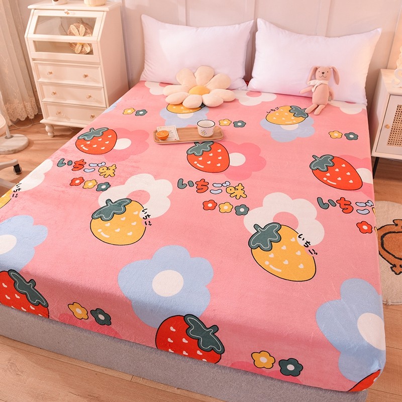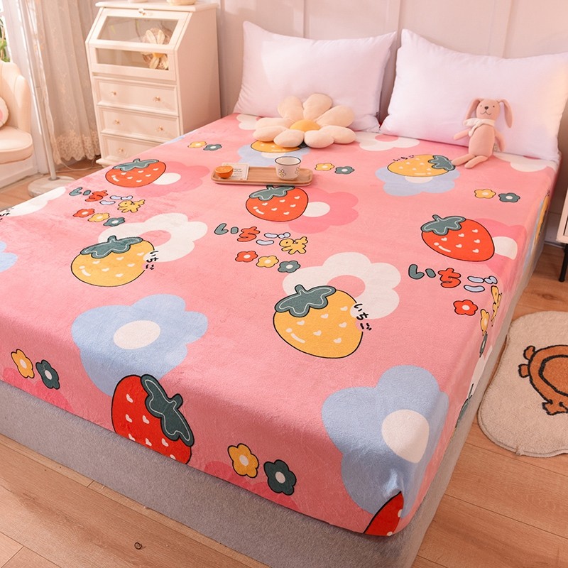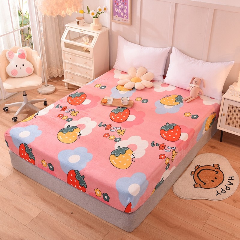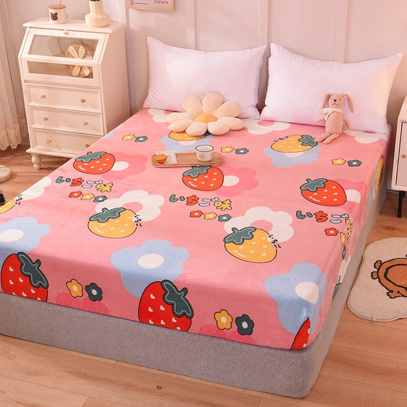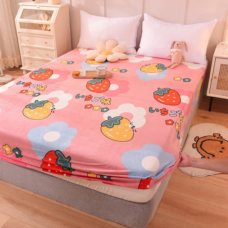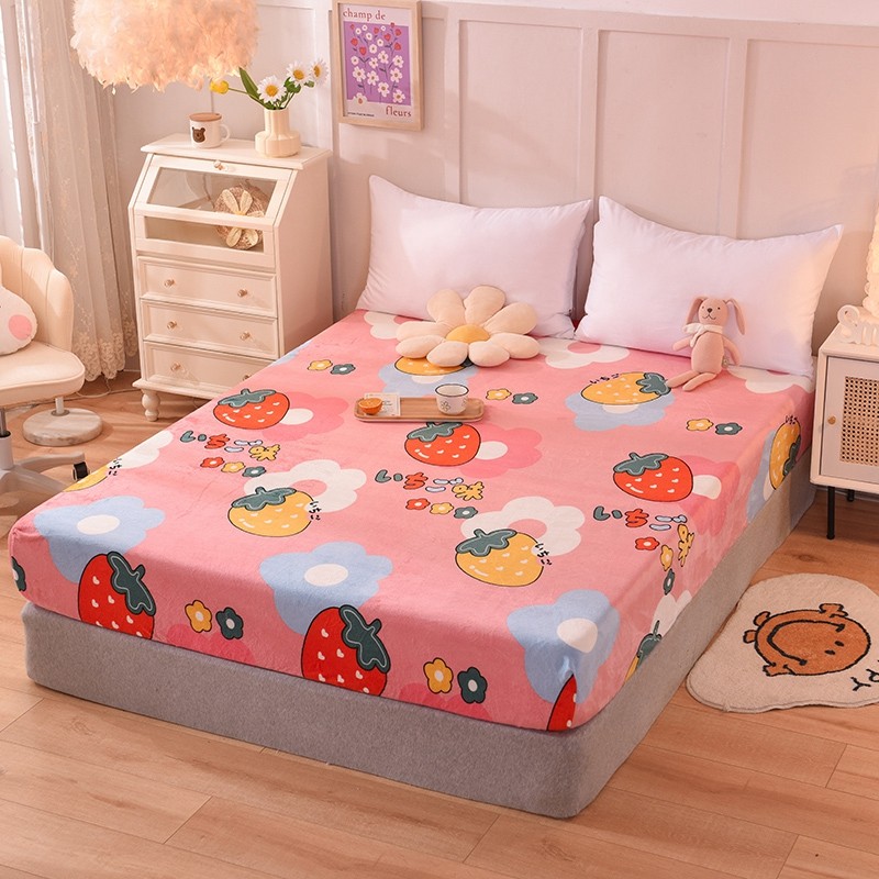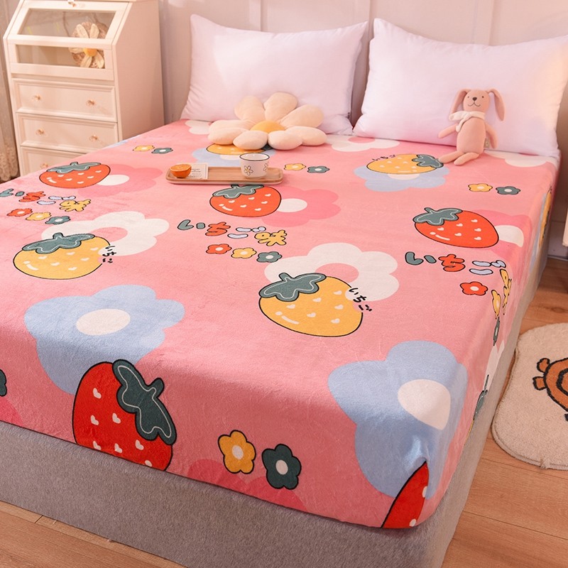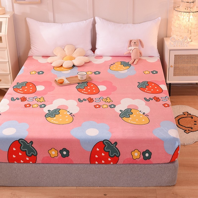 甜之梦 2025新款水晶绒单品床笠 草莓格