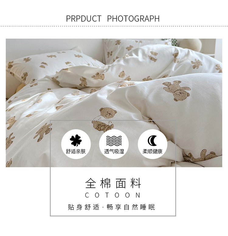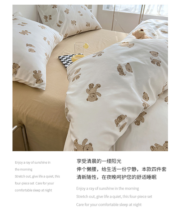 当前位置: 91家纺网 > 商品网购 > 床品套件 > 四件套 > 全棉普通四件套 > 艾沁 2022新款全棉北欧简约风四件套 小熊-驼