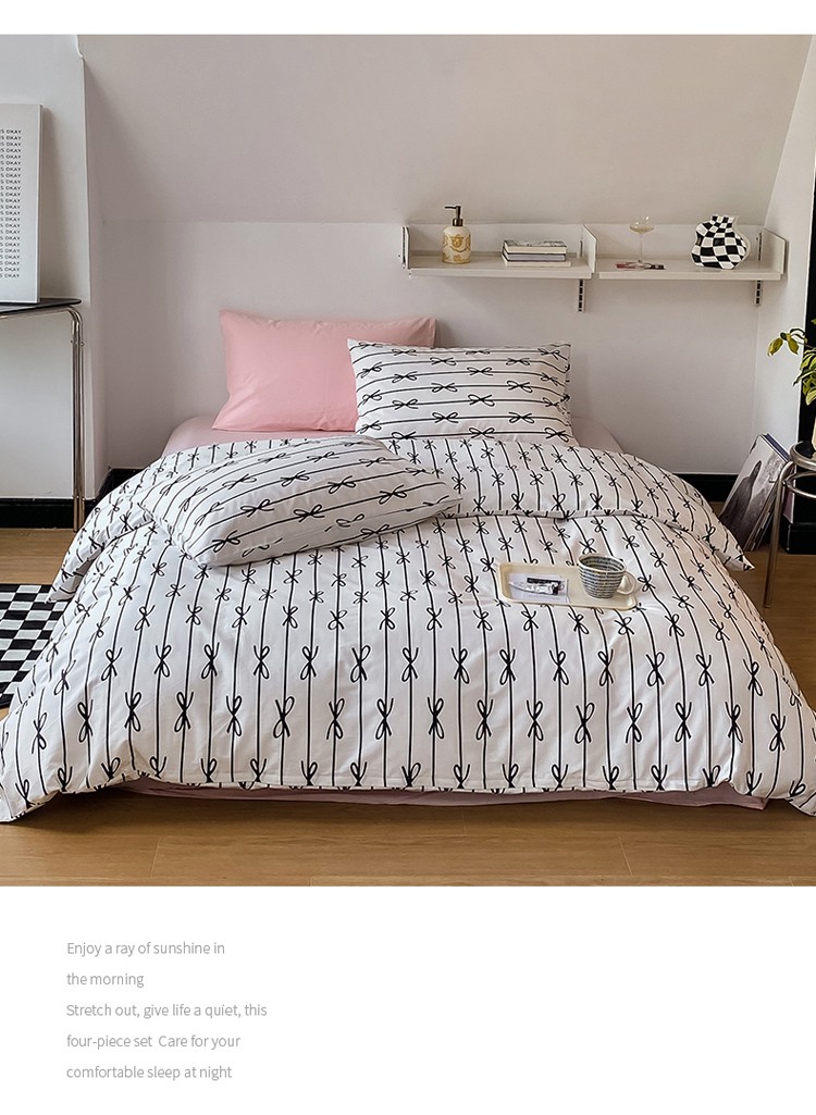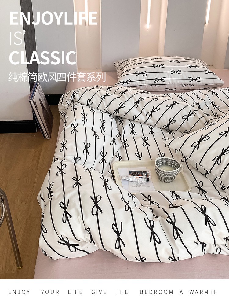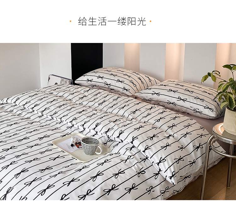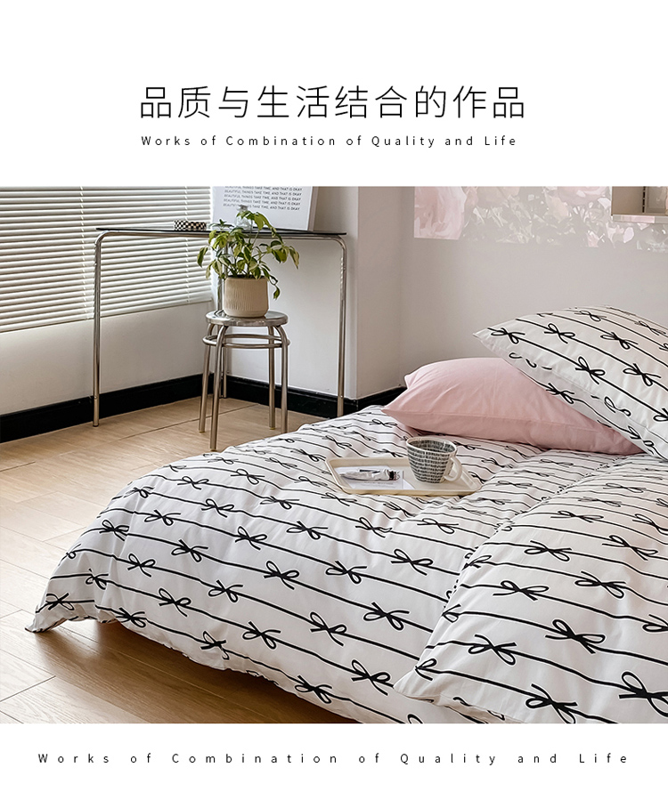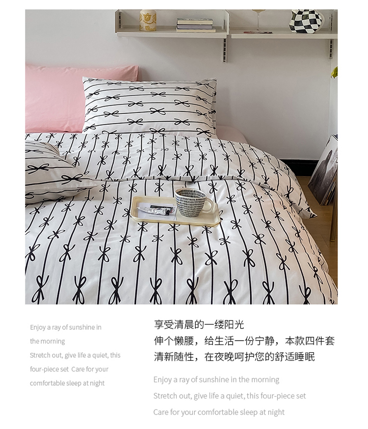 当前位置: 91家纺网 > 商品网购 > 床品套件 > 四件套 > 全棉普通四件套 > 2022新款40支13372全棉简约风水洗混搭四件套 蝴蝶结
