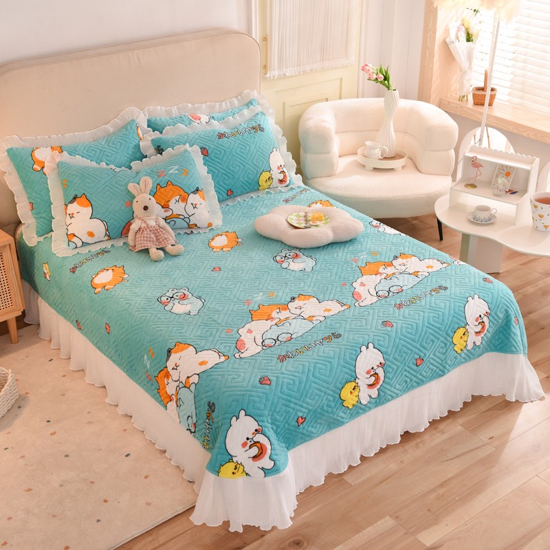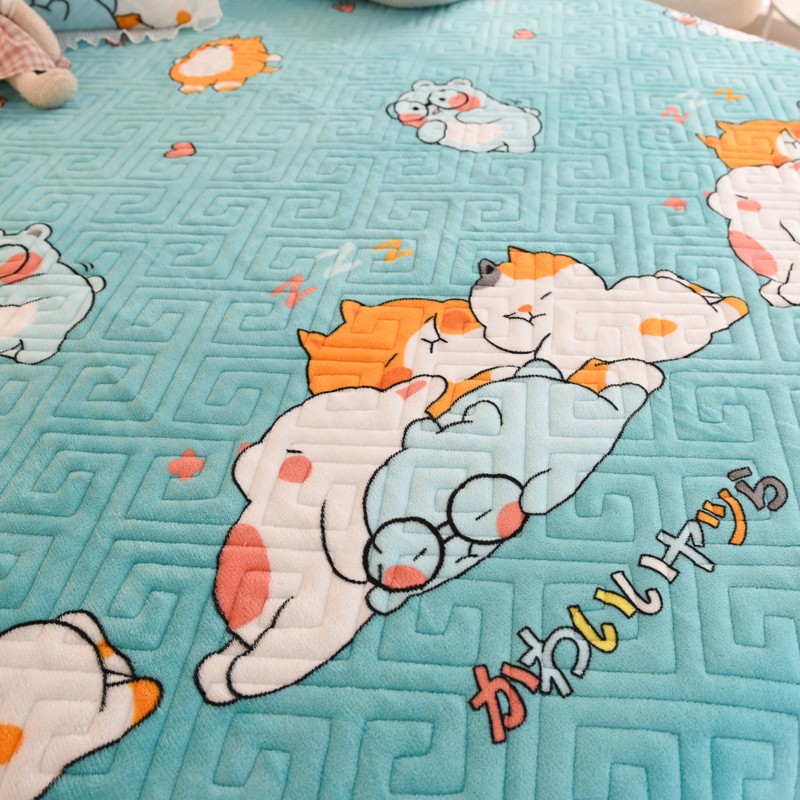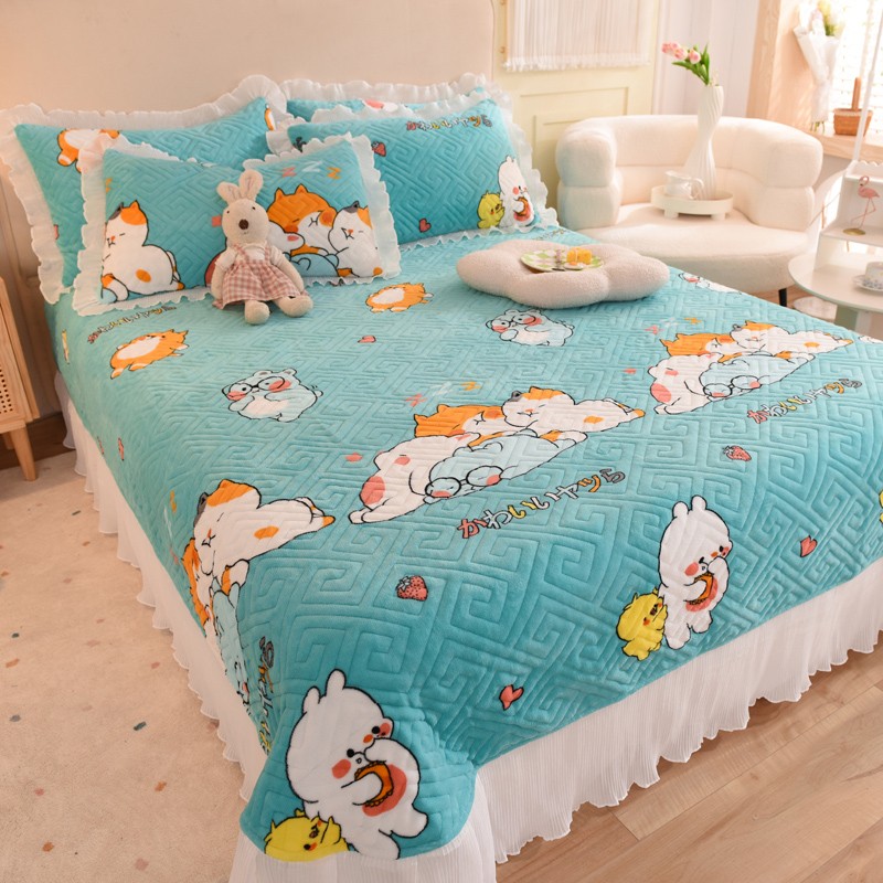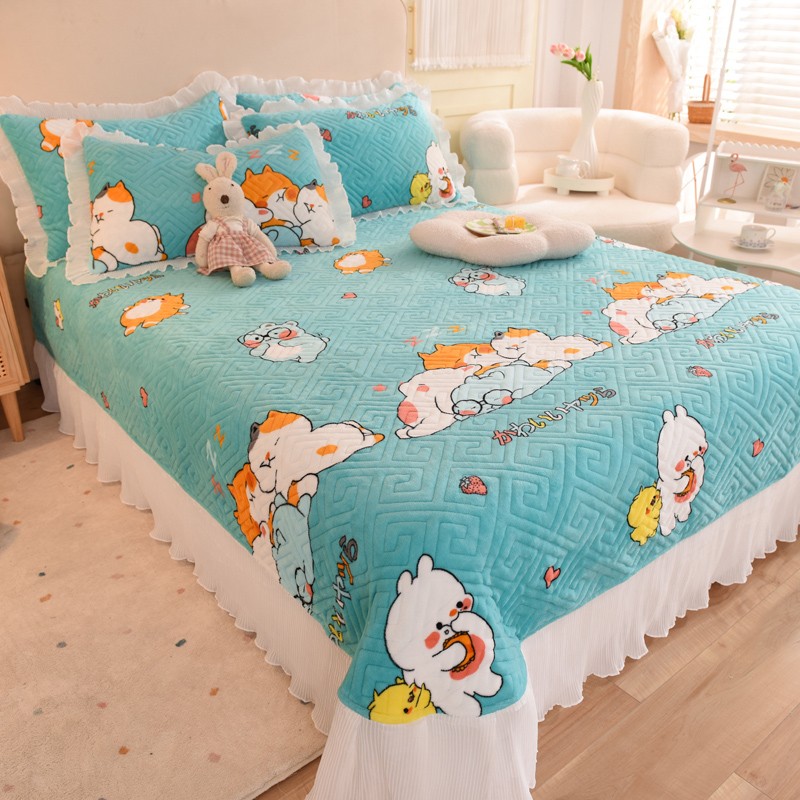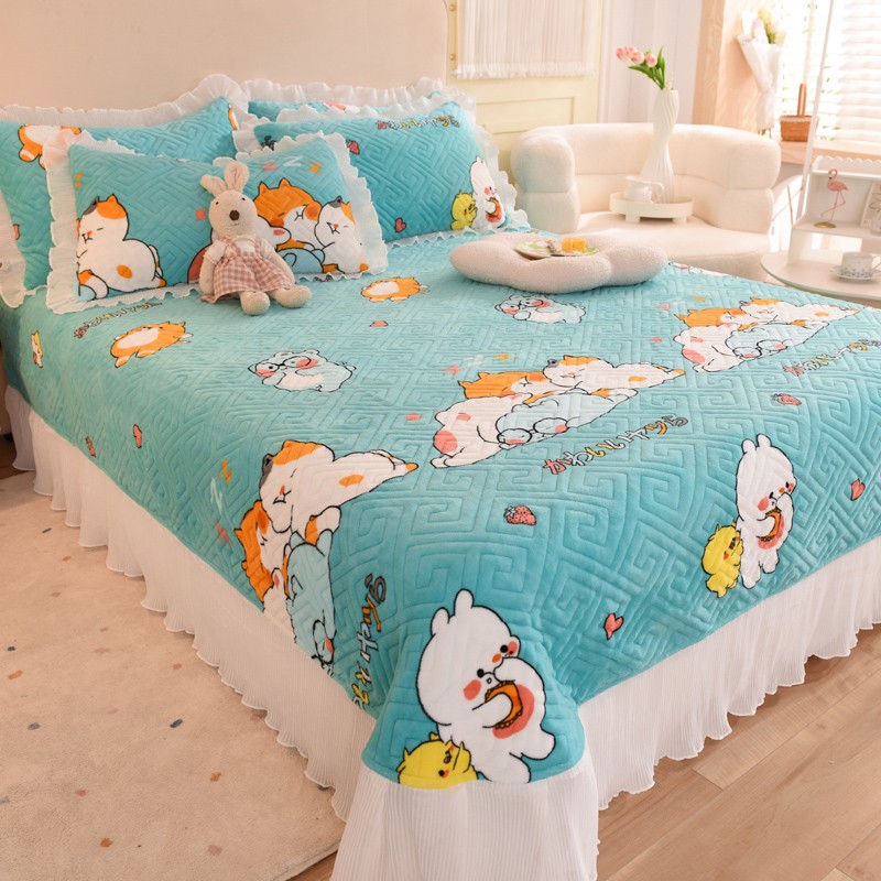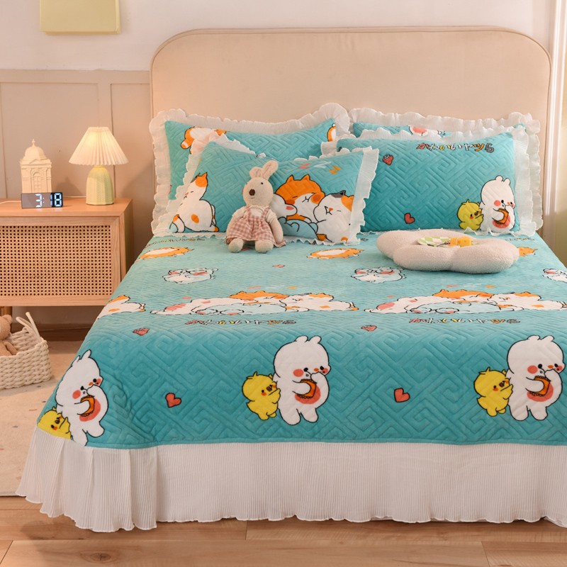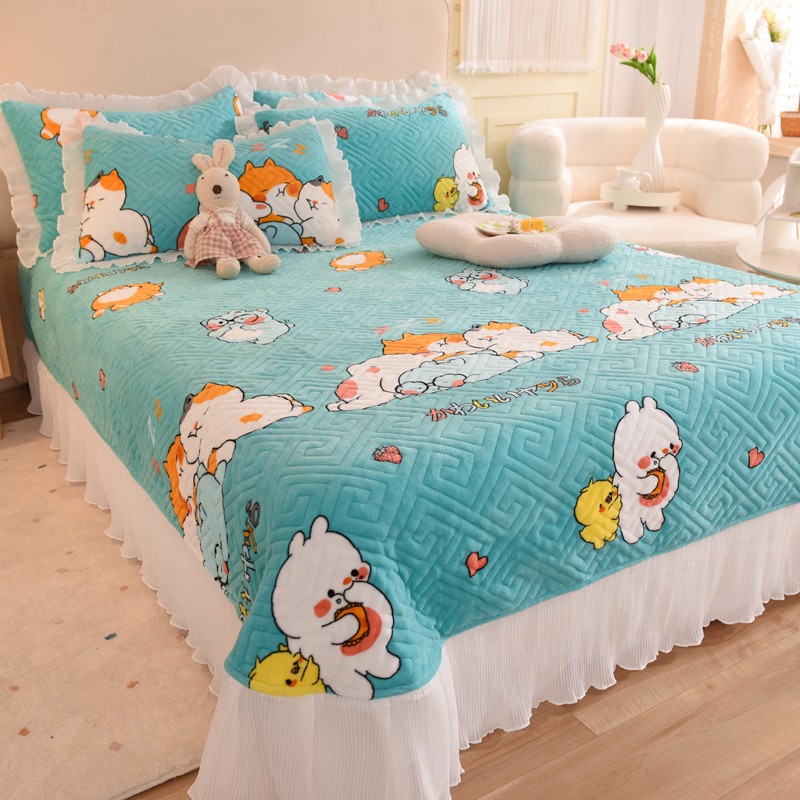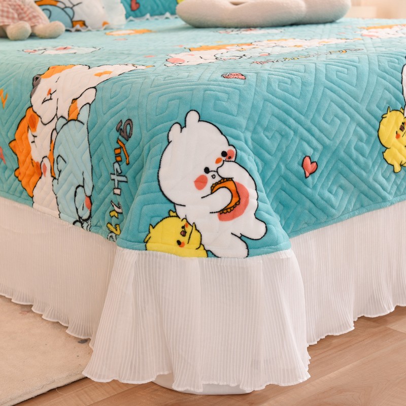 2025新款牛奶绒印花夹棉花边 单品床盖 乖乖熊