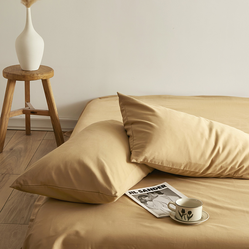 (总)寝柔家纺 2025新款60S纯色长绒棉磨毛素色四件套床单床笠款,杏驼,魅力紫,奶霜黄,暖橙,少女粉,水波兰,碳木灰,午夜蓝