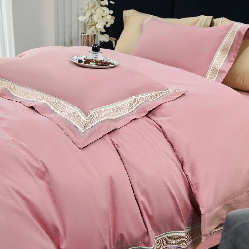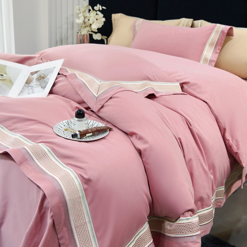 (总)榻尚家居 2023新款纯棉贡缎提花四件套(会员-10),缤兰,烟粉