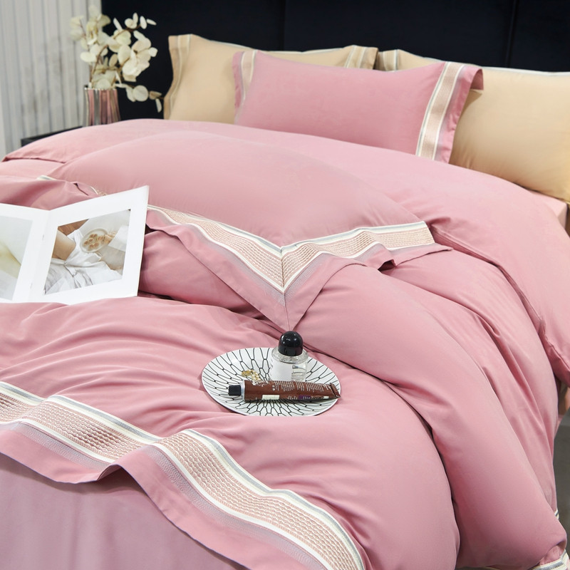(总)榻尚家居 2025新款天丝床盖夏被夏凉被空调被四件套-佩利兹,佩利兹床盖夏被四件套-粉色,佩利兹床盖夏被四件套-香槟