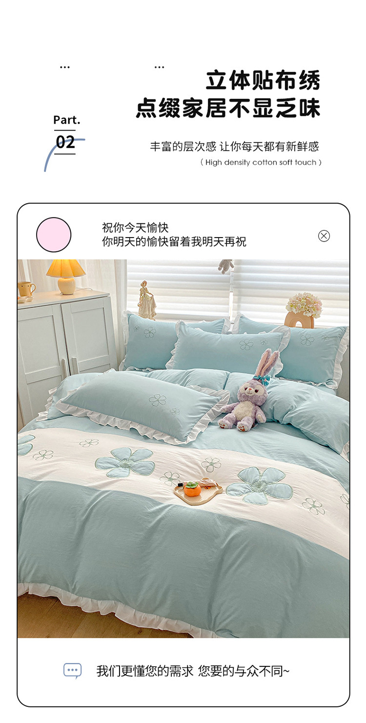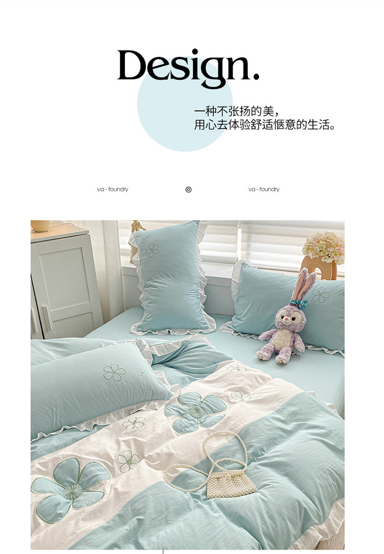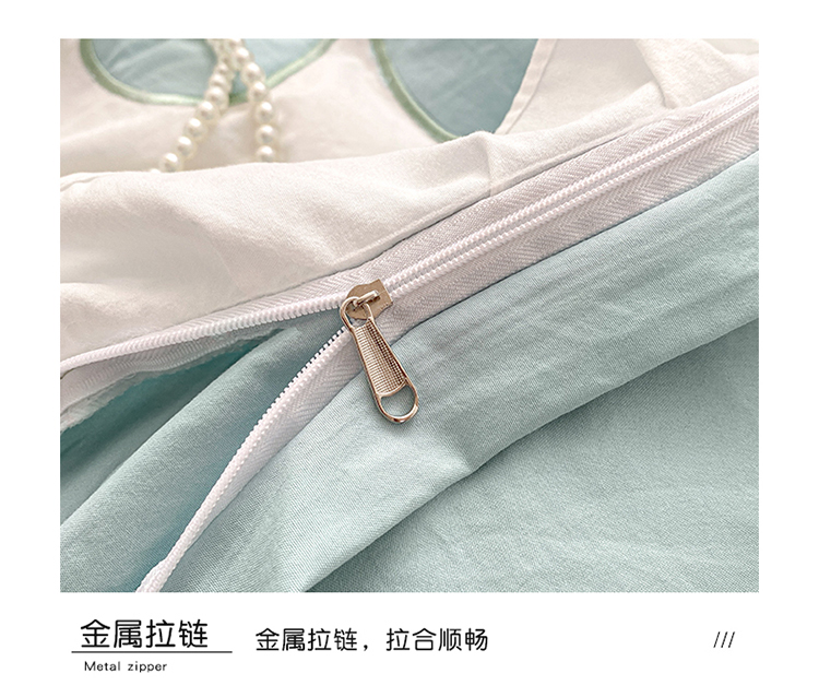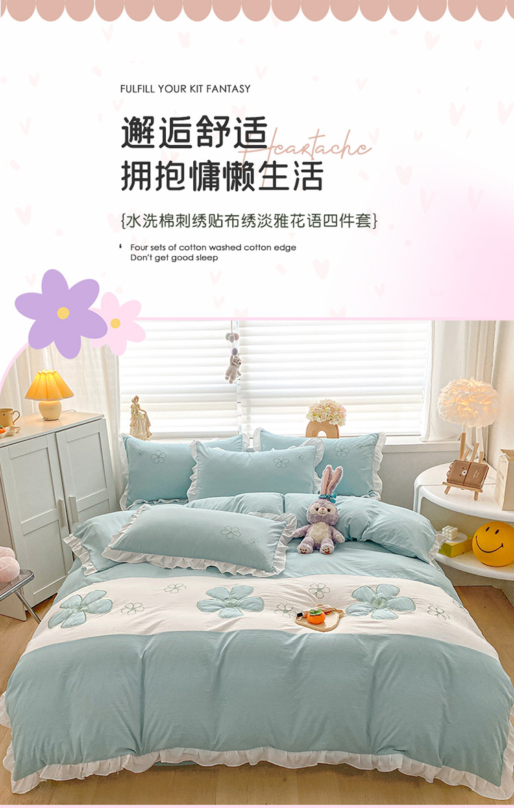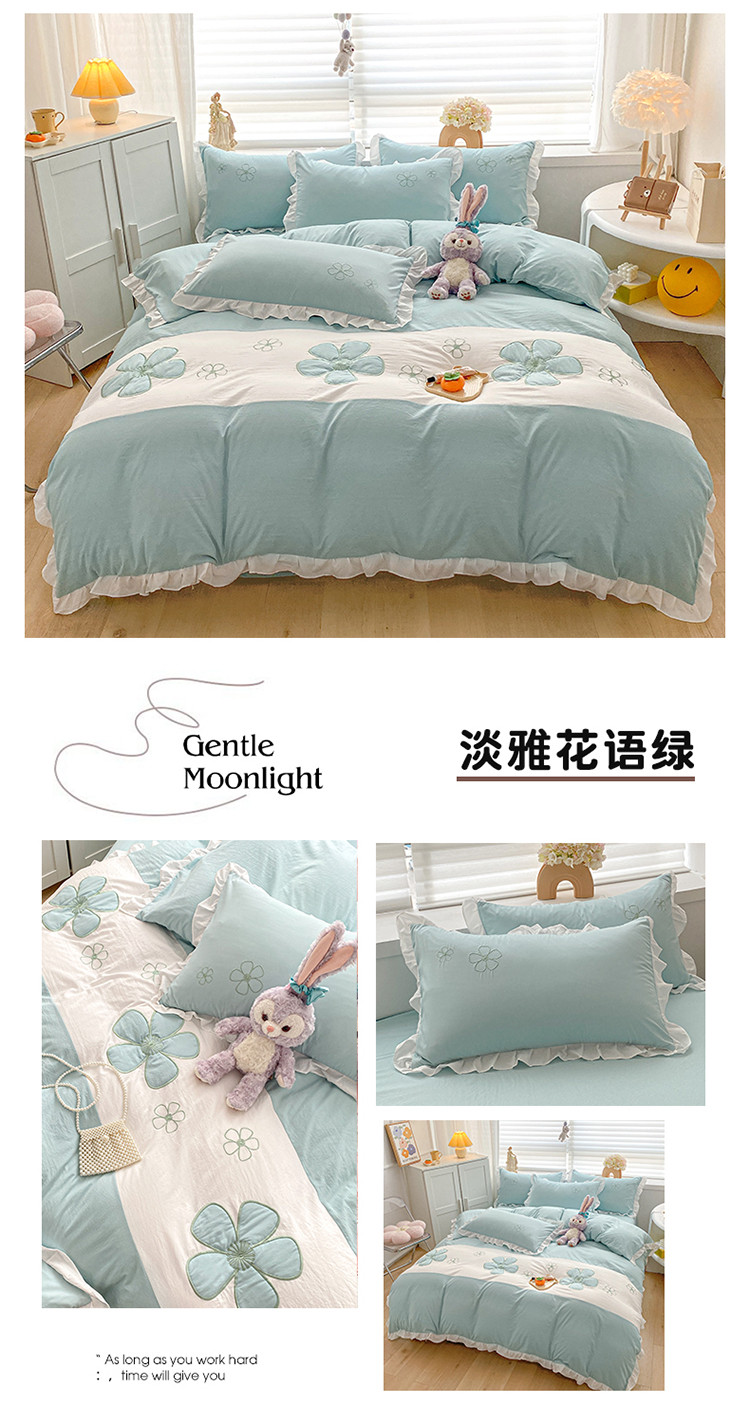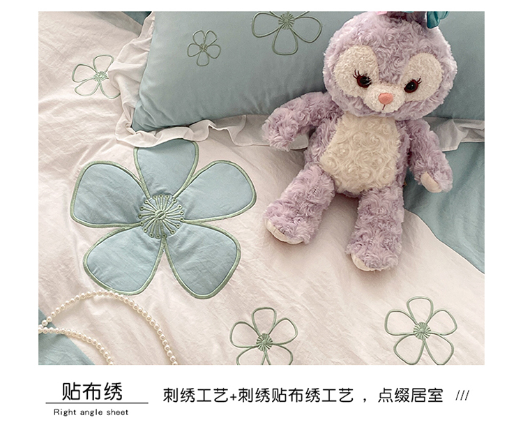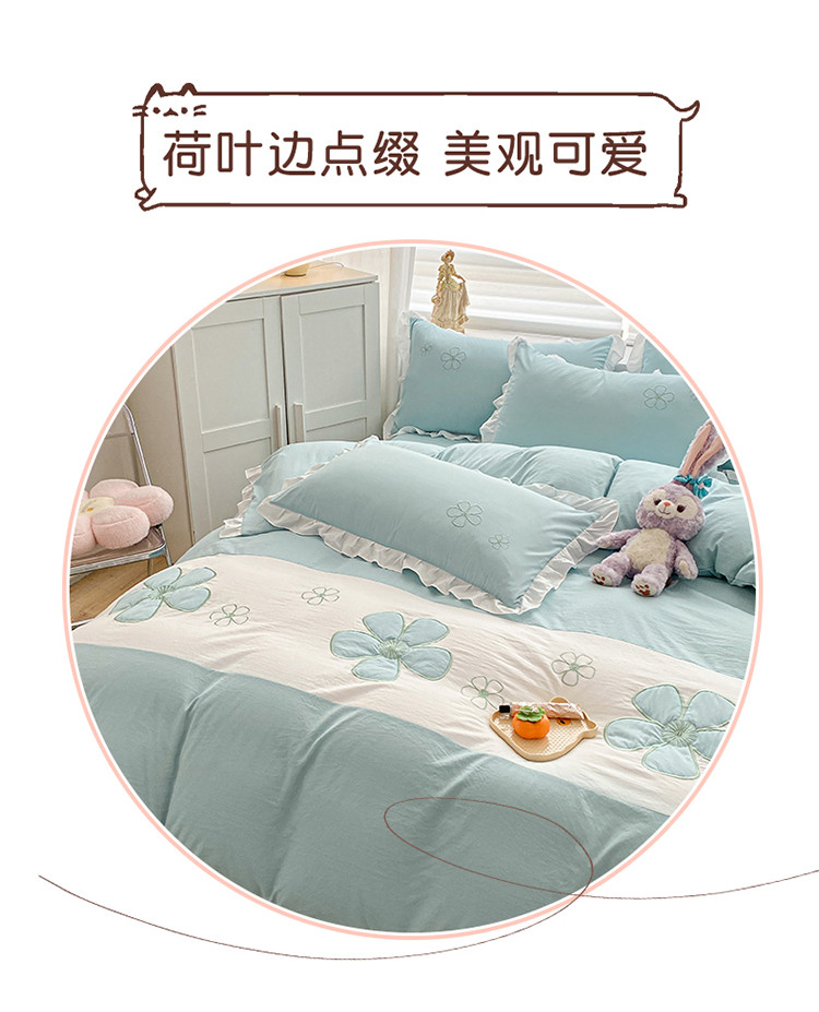 当前位置: 91家纺网 > 商品网购 > 床品套件 > 四件套 > 普通磨毛四件套 > 你好美丽 2025新款水洗磨毛蝴蝶刺绣三拼四件套 淡雅花语绿
