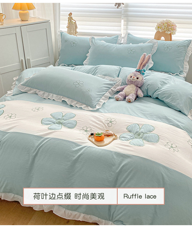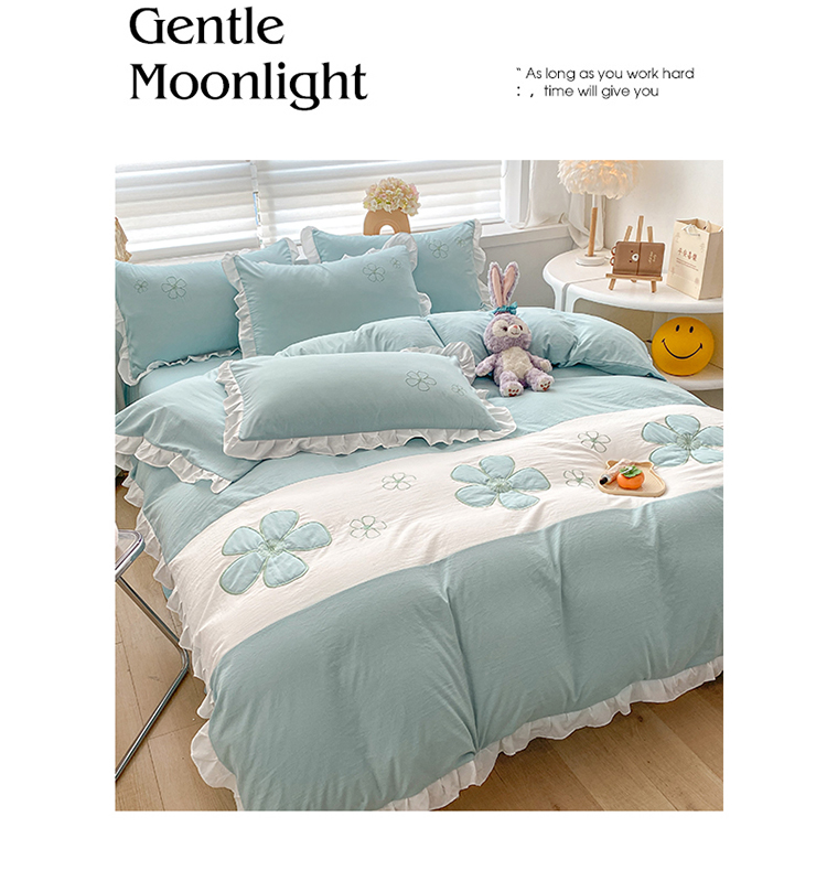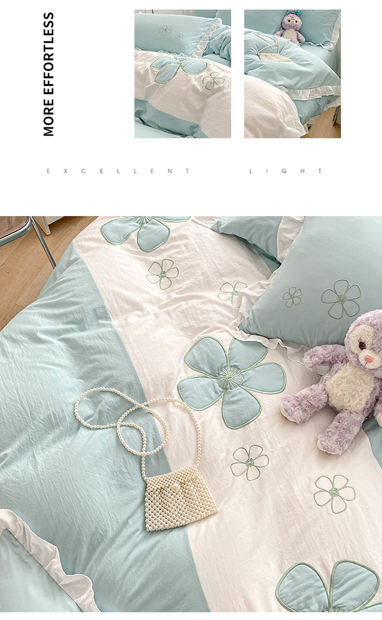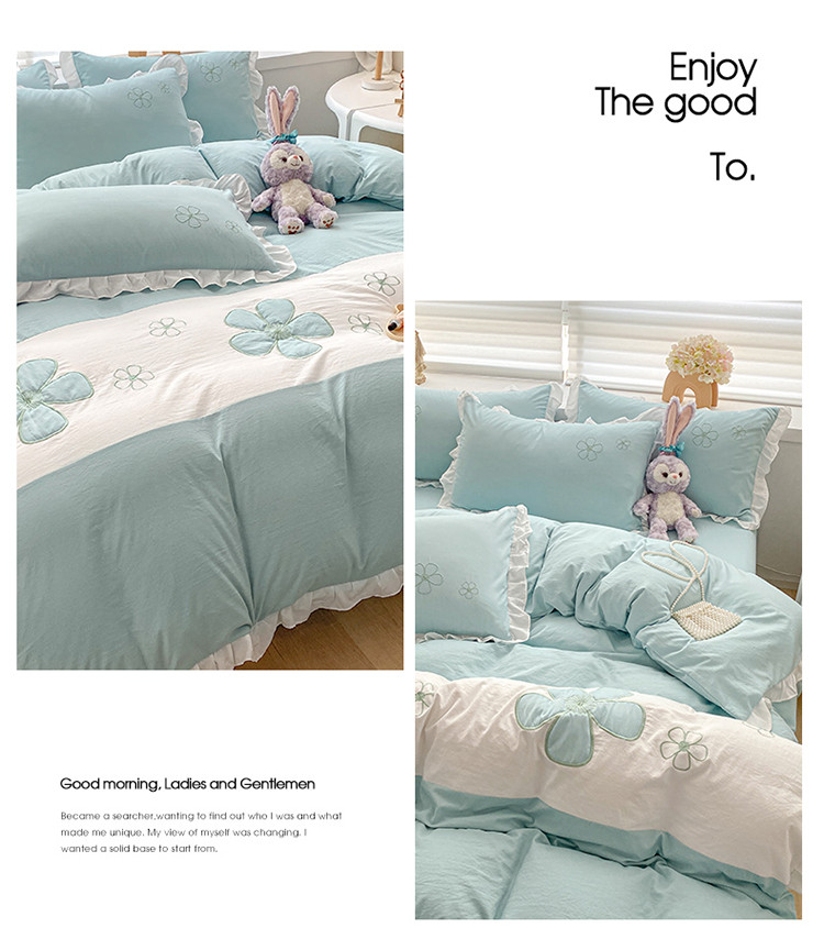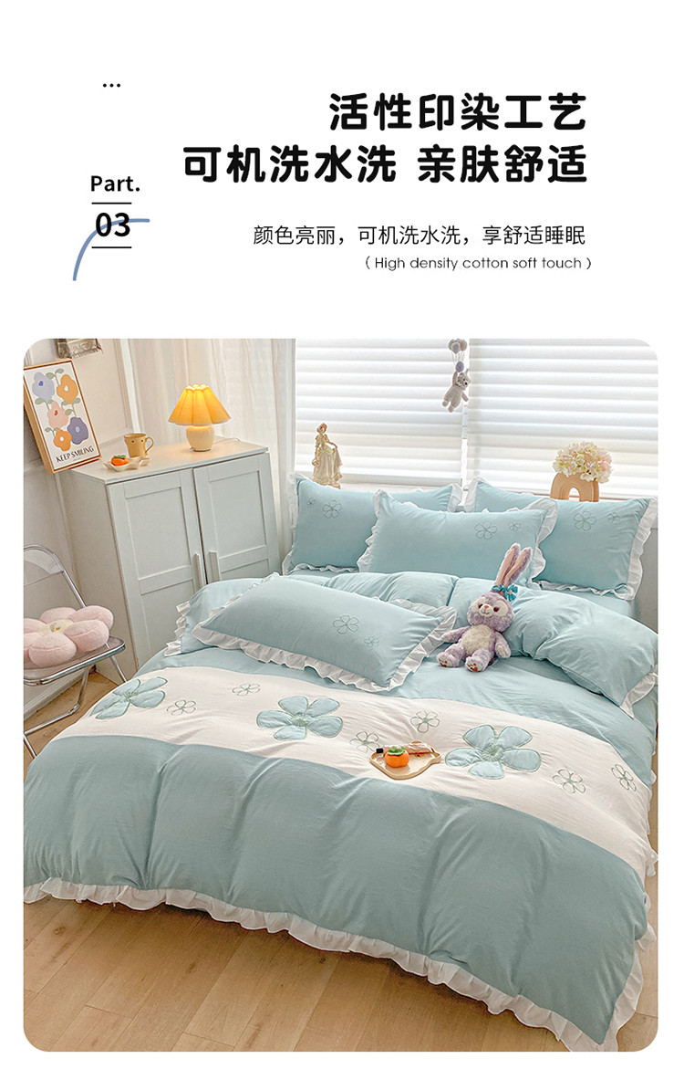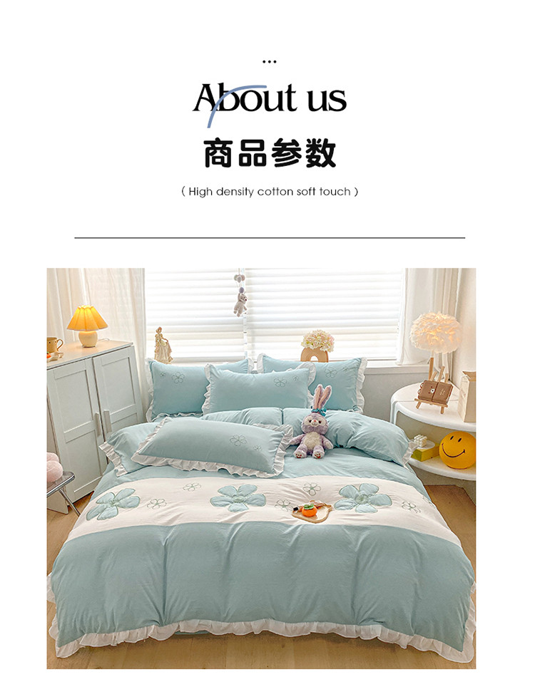 当前位置: 91家纺网 > 商品网购 > 床品套件 > 四件套 > 普通磨毛四件套 > 你好美丽 2025新款水洗磨毛蝴蝶刺绣三拼四件套 淡雅花语绿