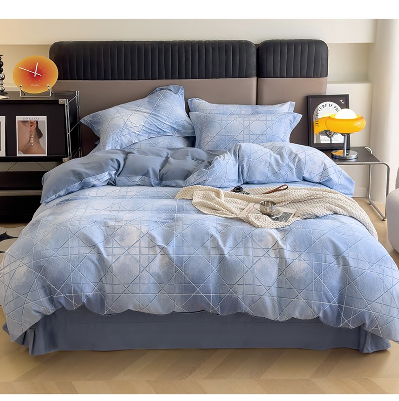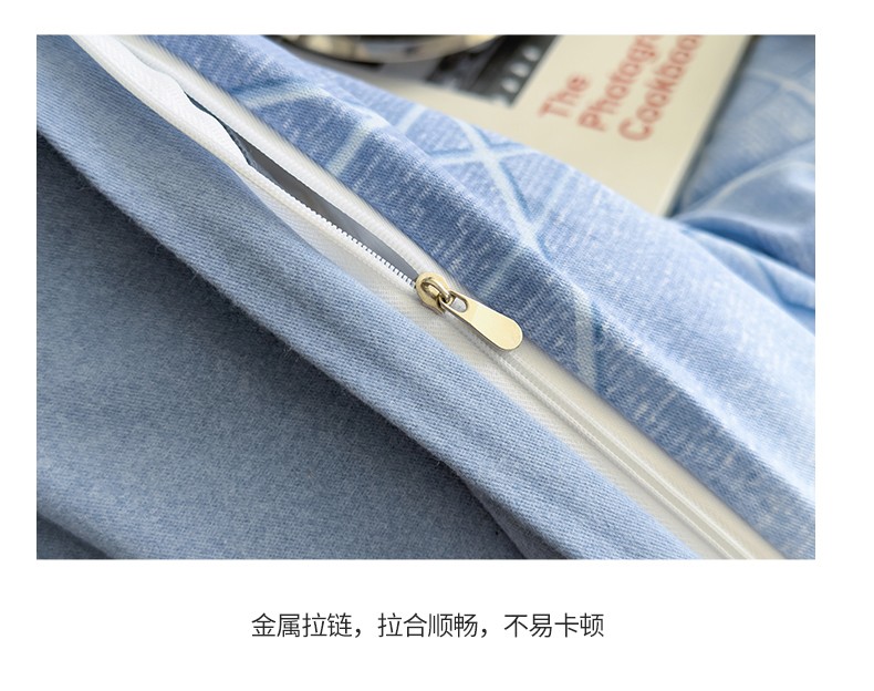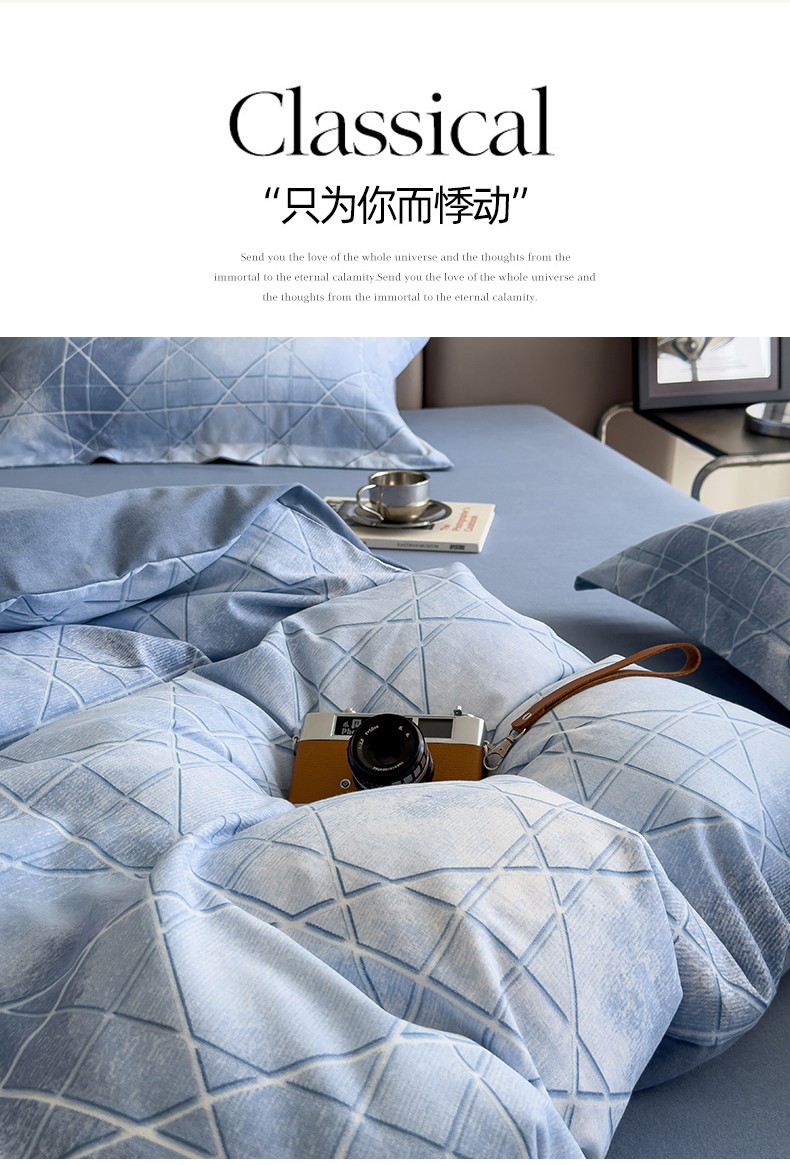 佰亿莱 2024直播爆款简约风全棉磨毛四件套格子系列 简约-蓝