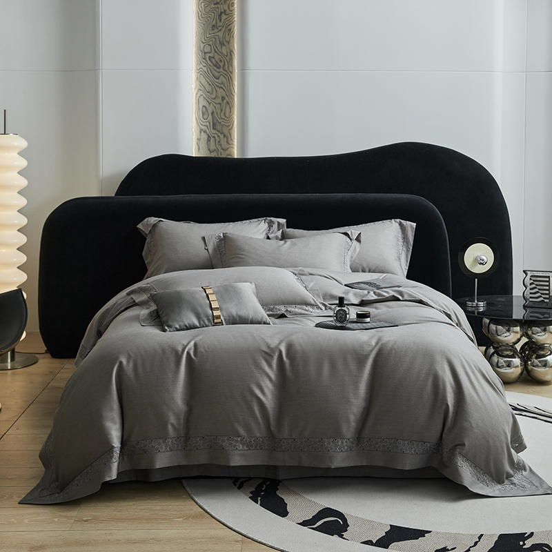 总榻尚家居 2023新款格瑞斯系列100贡缎长绒棉四件套工艺款四件套,格瑞斯紫,格瑞斯白,格瑞斯灰,格瑞斯蓝