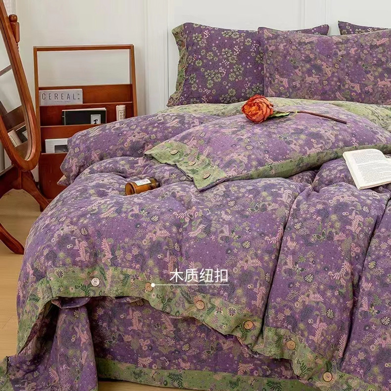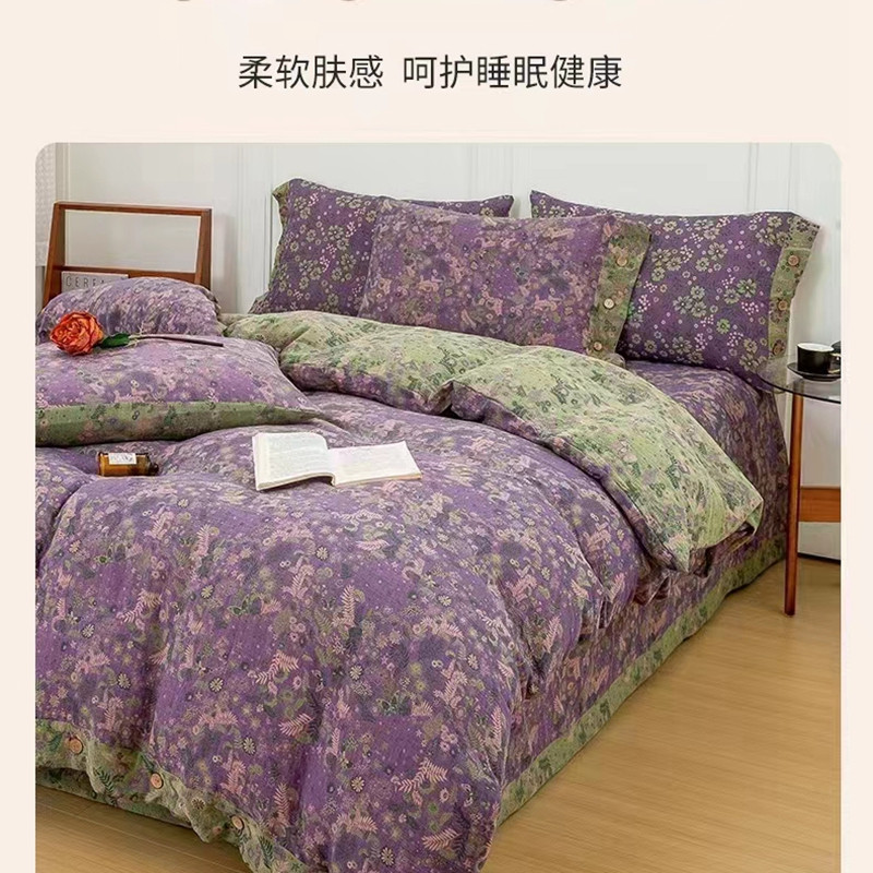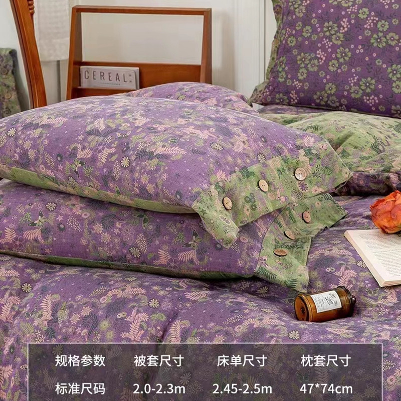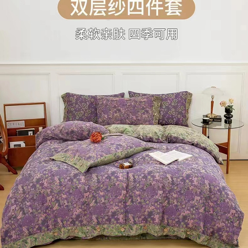(总)双层纱家居 2025新款纯棉双层纱纽扣款四件套,春雨墨绿,凤尾花,黑茶,红石榴,蝴蝶粉,蝴蝶紫,花絮黄,花絮蓝,流金岁月粉灰,流金岁月紫,陌上花开深蓝,牡丹深紫,牡丹夕颜紫红,秋雨墨绿,亭亭玉立,雾里看花墨蓝,新款薰衣草,新龙凤呈祥,一帆风顺灰,羽毛桔,织梦粉,织梦水墨,织梦紫罗兰