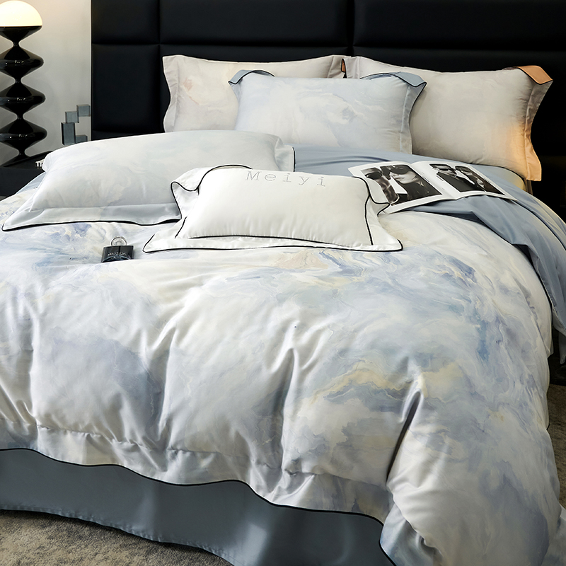 榻尚家居 2024新款澳棉贡缎长绒棉数码印花四件套-璀璨系列 璀璨-蓝