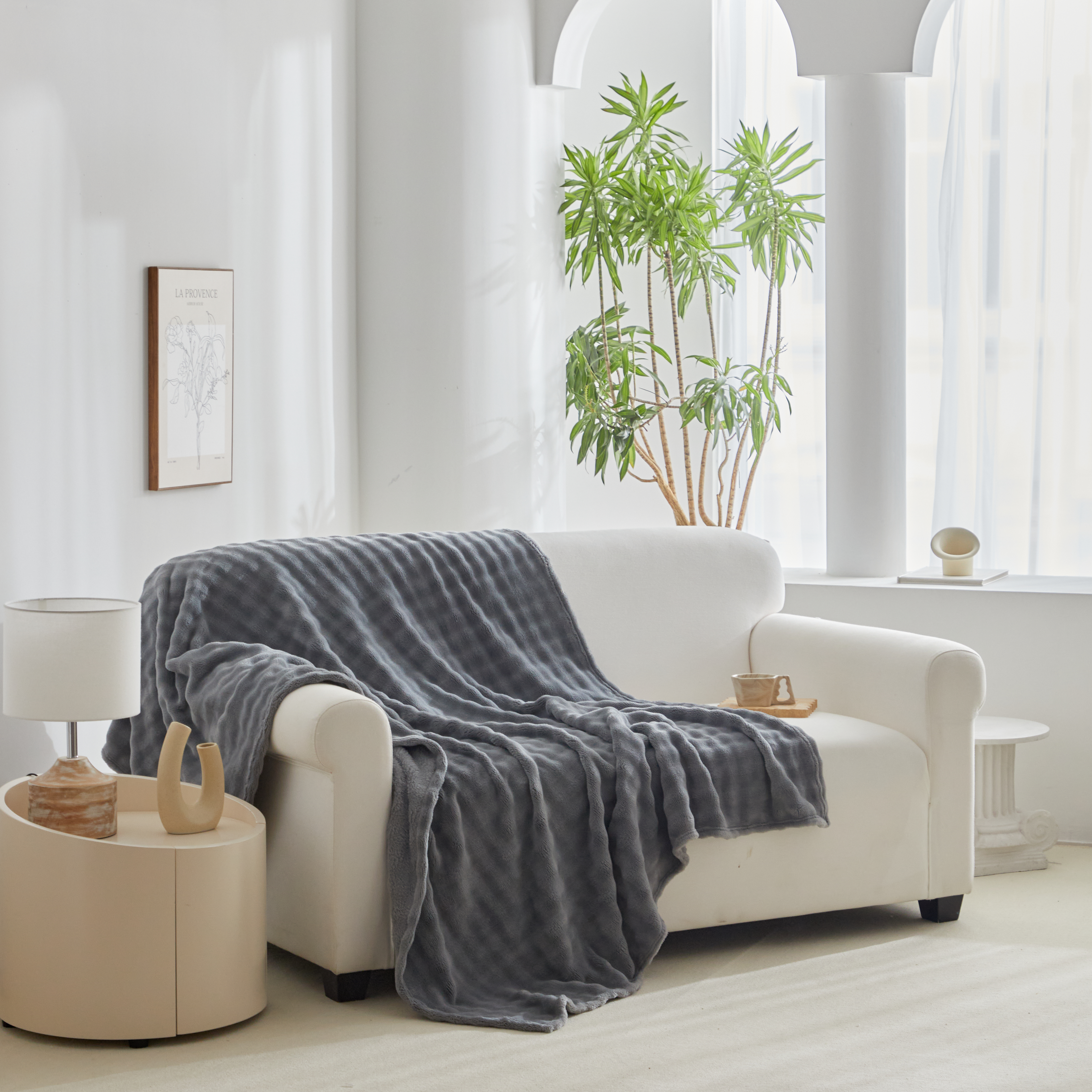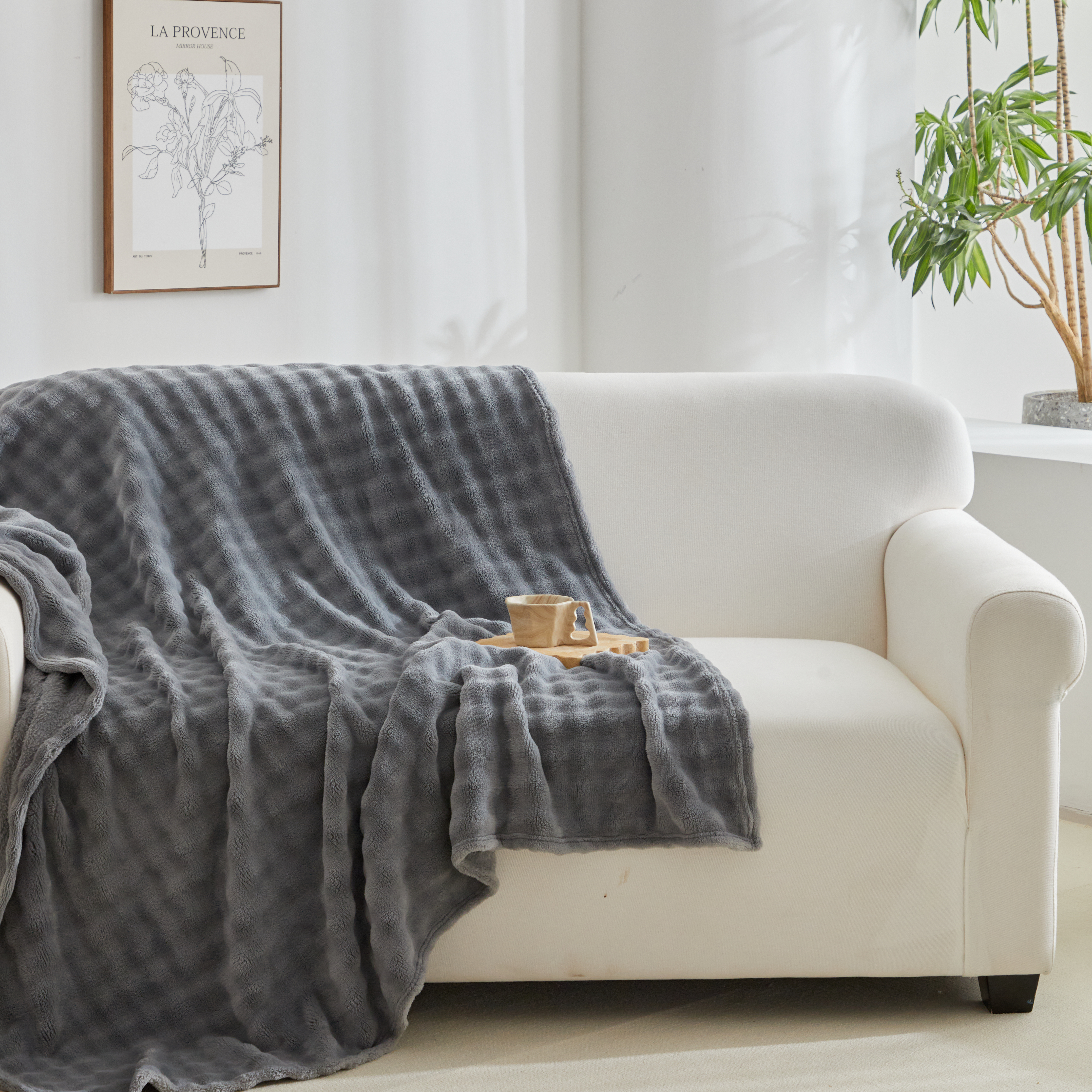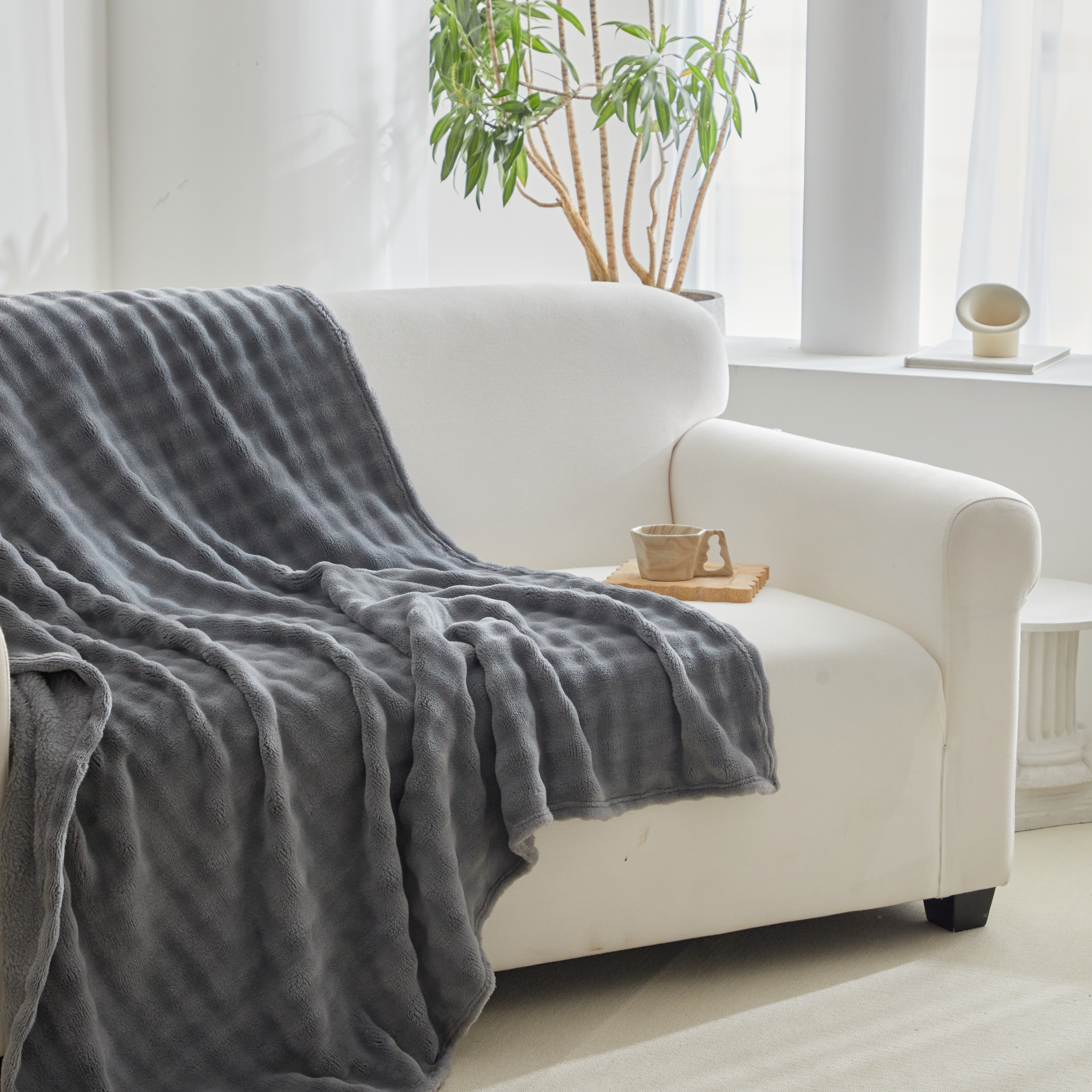 商品名称:巴木赫 2024新款法兰绒泡泡卷边毯子毛毯 深灰