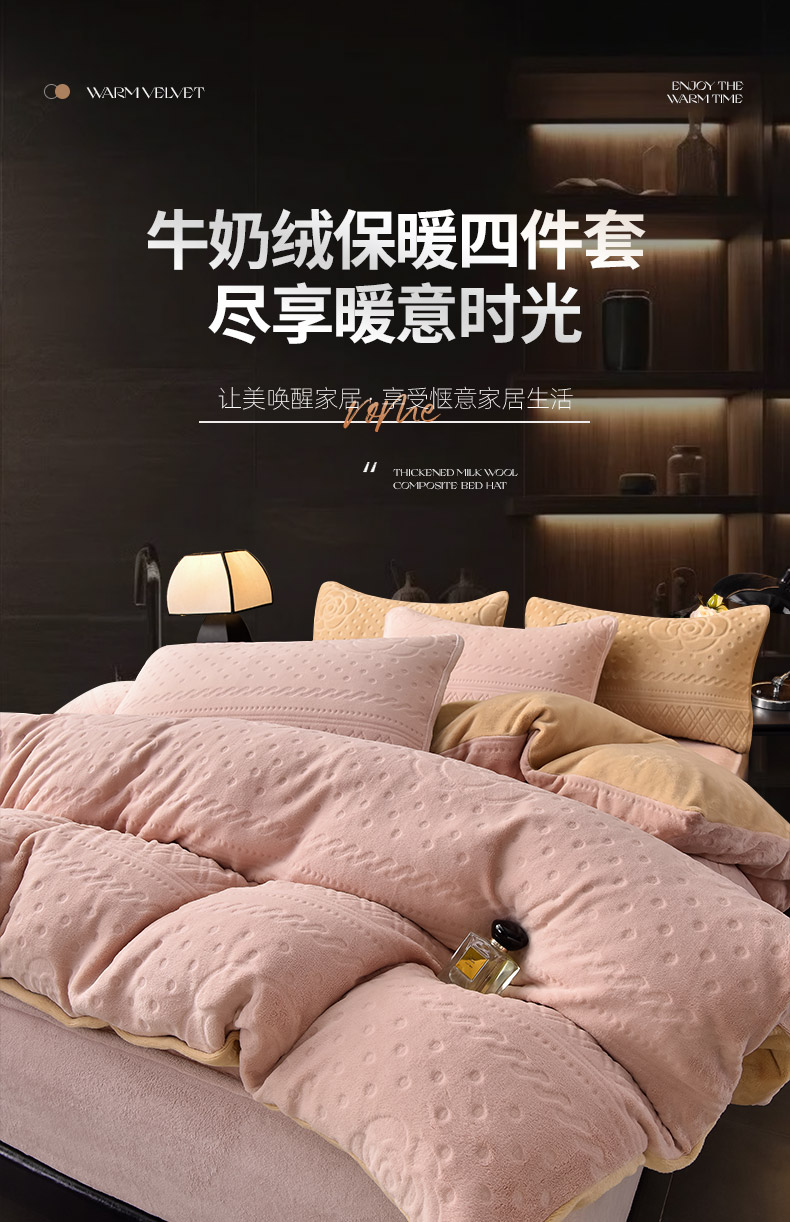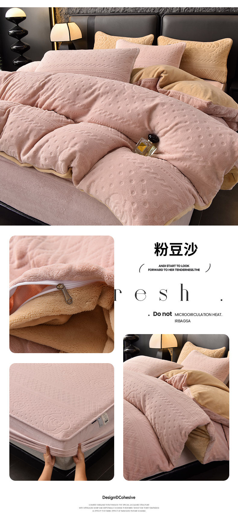 商品名称:好眠好梦家纺 2024新款阳光玫瑰牛奶绒复合床笠四件套 阳光玫瑰-粉豆沙