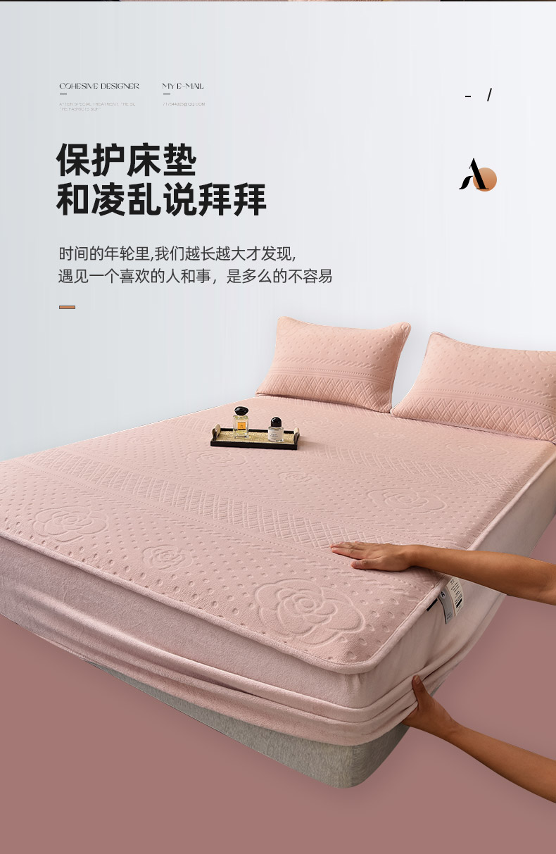 好眠好梦家纺 2024新款阳光玫瑰牛奶绒复合床笠四件套 阳光玫瑰-粉豆沙
