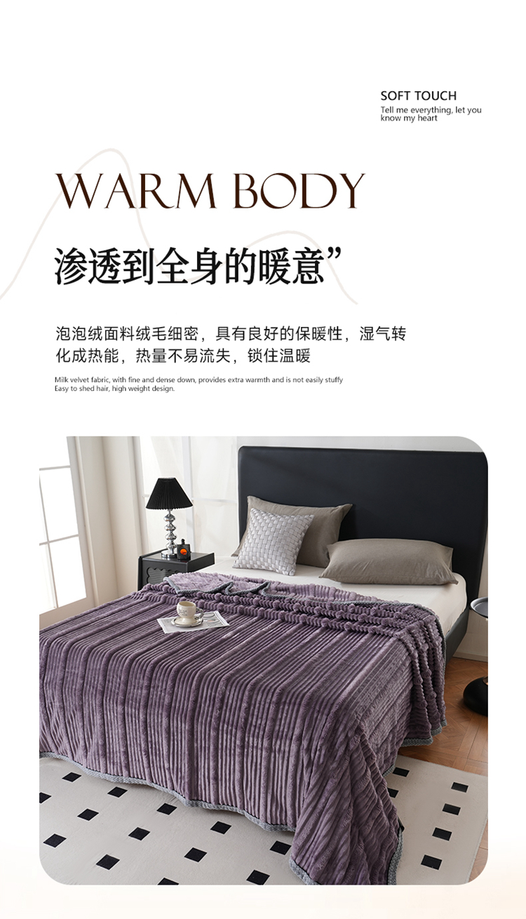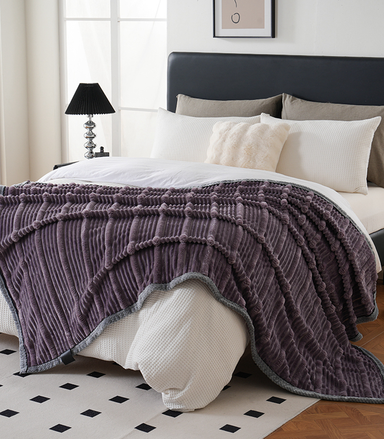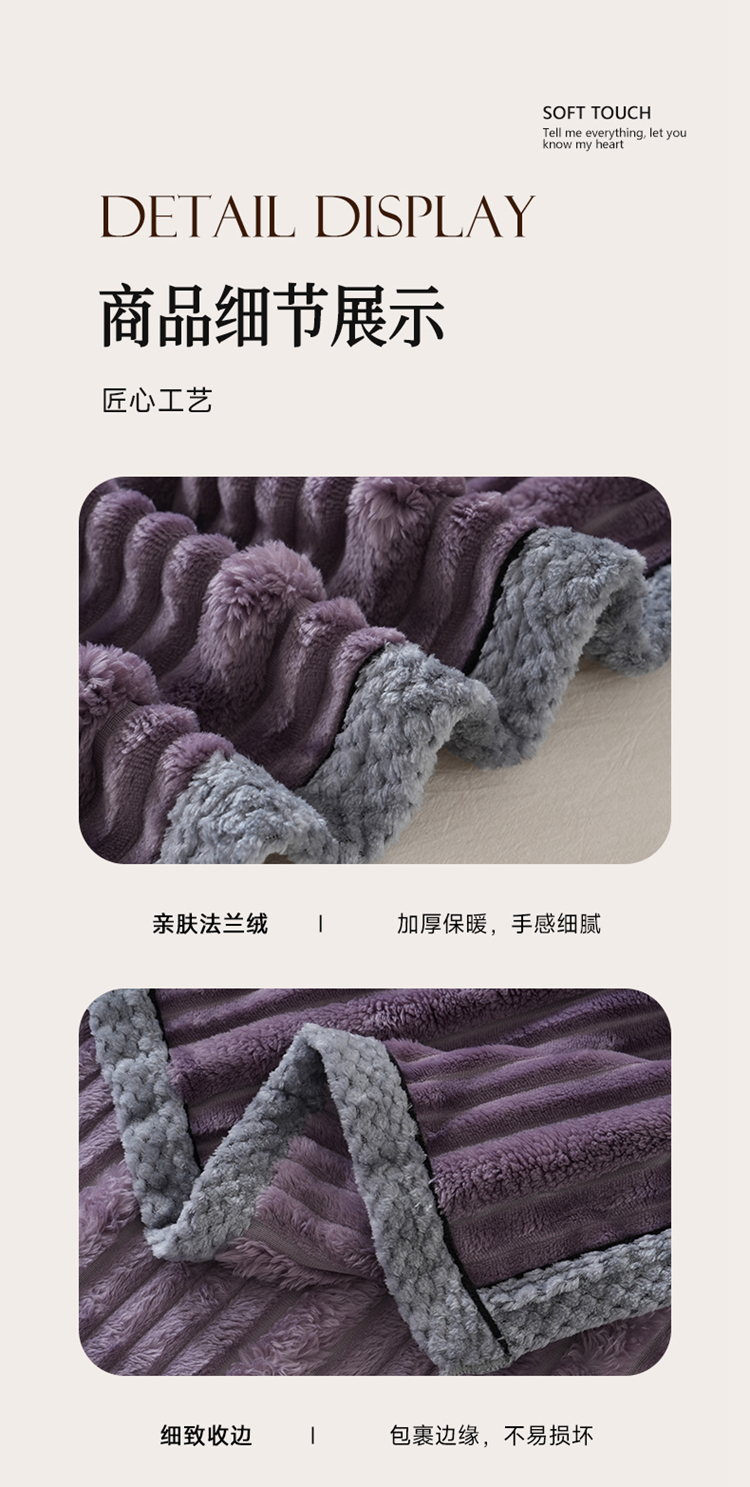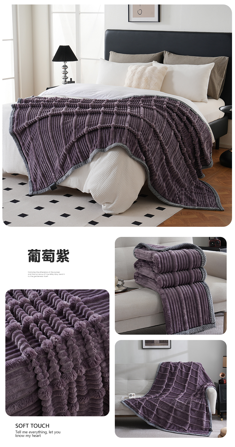商品名称:巴木赫 2024新款子母抽条兔毛绒绒毯毯子 葡萄紫