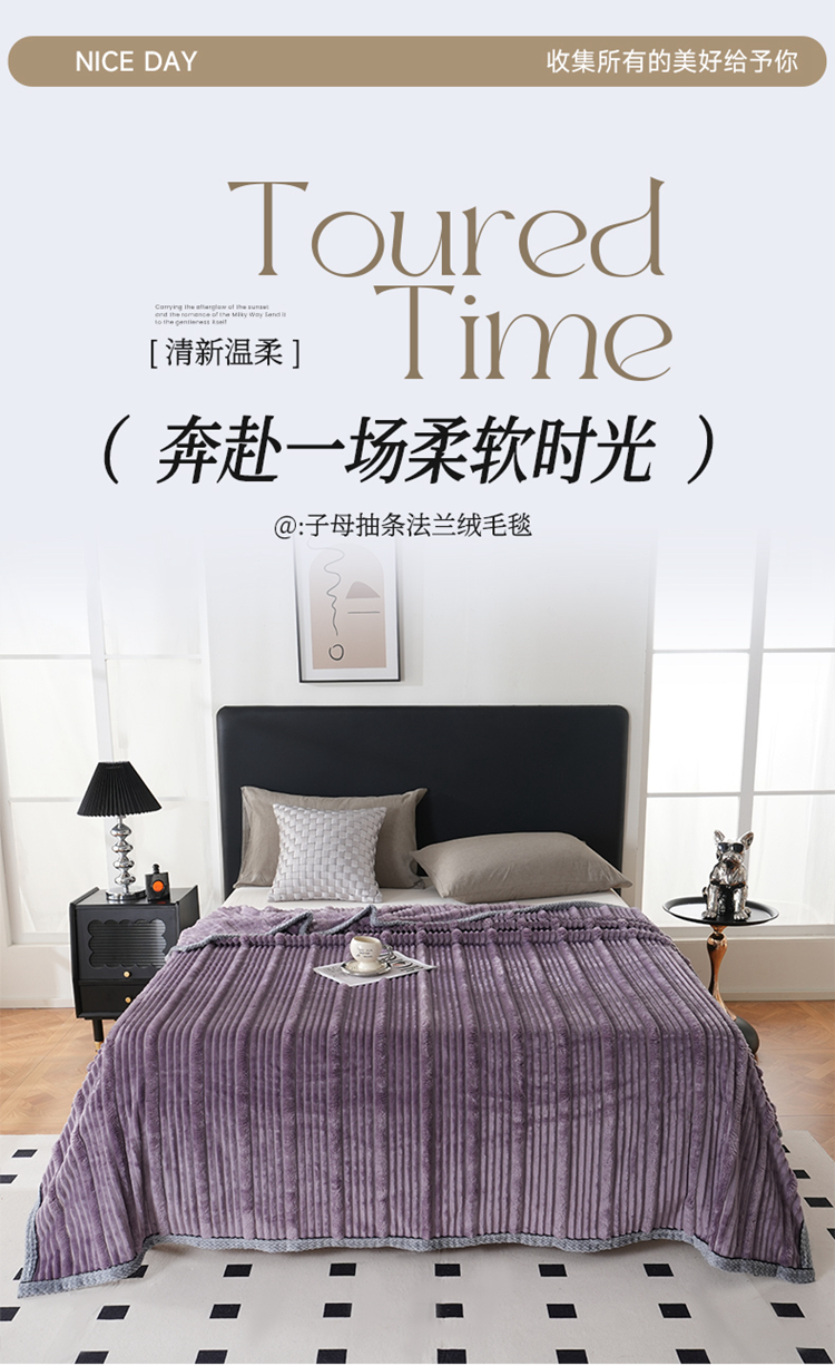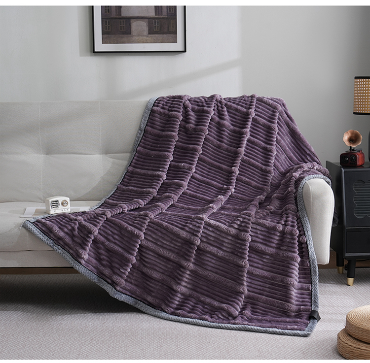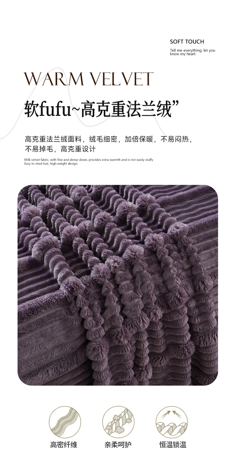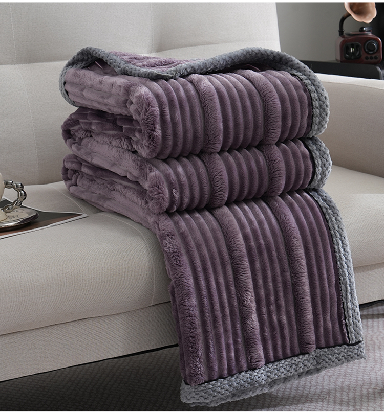 商品名称:巴木赫 2024新款子母抽条兔毛绒绒毯毯子 葡萄紫