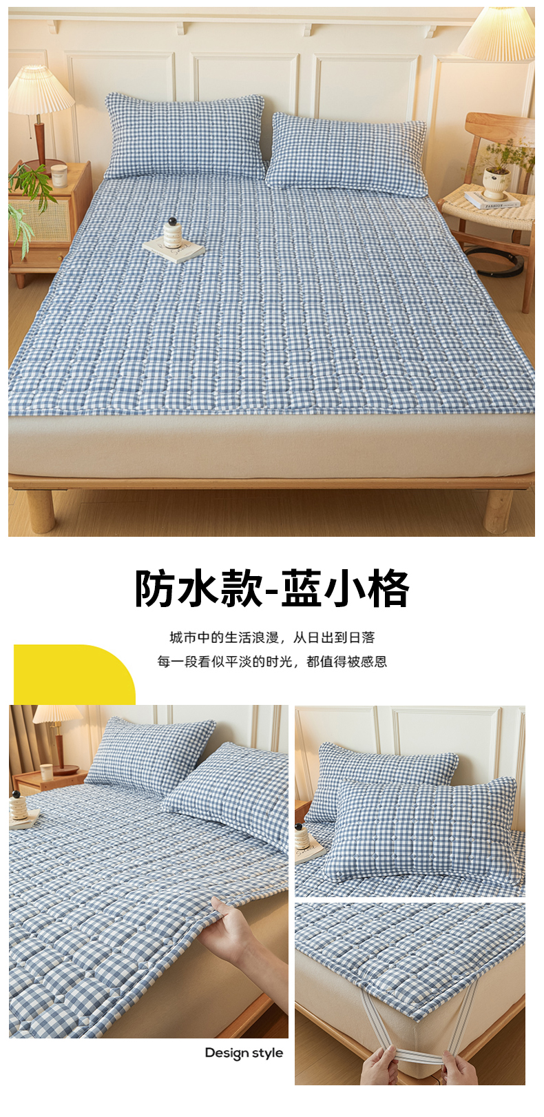 恋绒家纺 2025新款无印风水洗棉防水款床褥隔尿垫床褥护理垫床垫 蓝小格