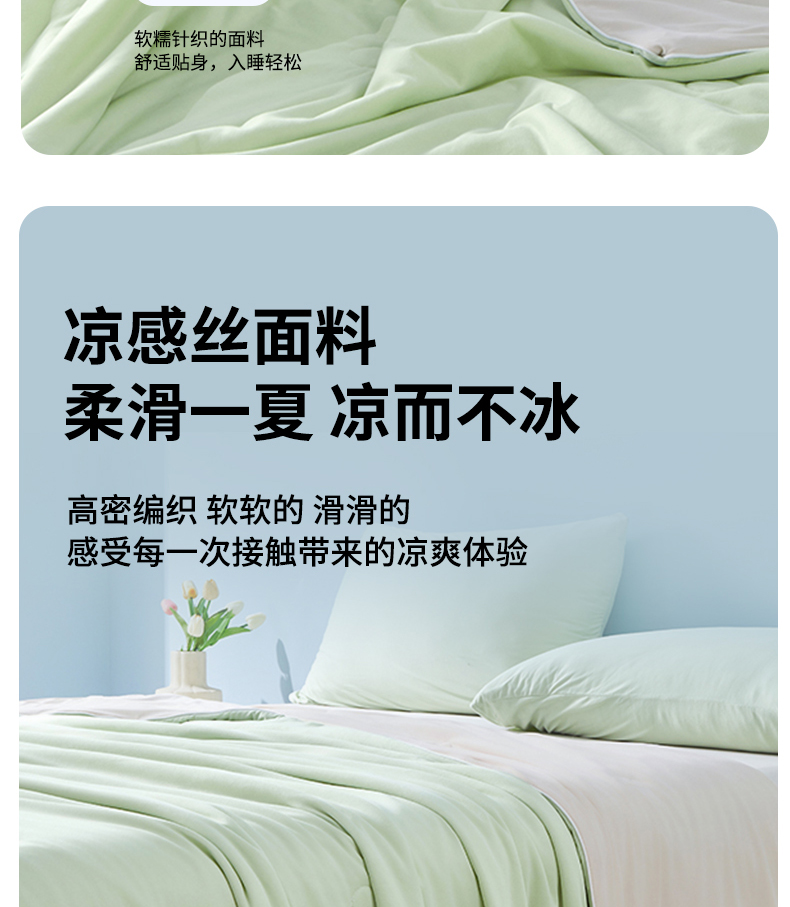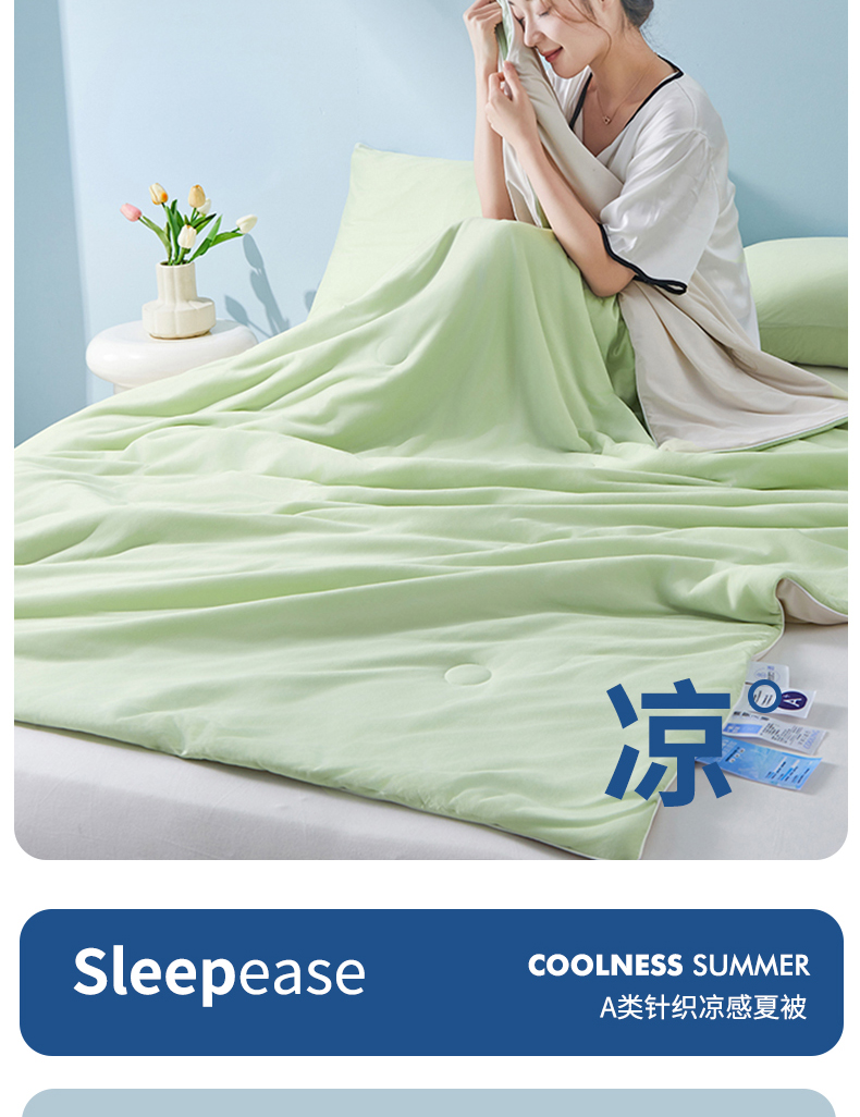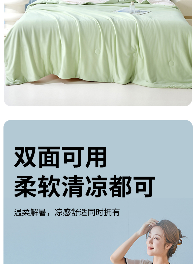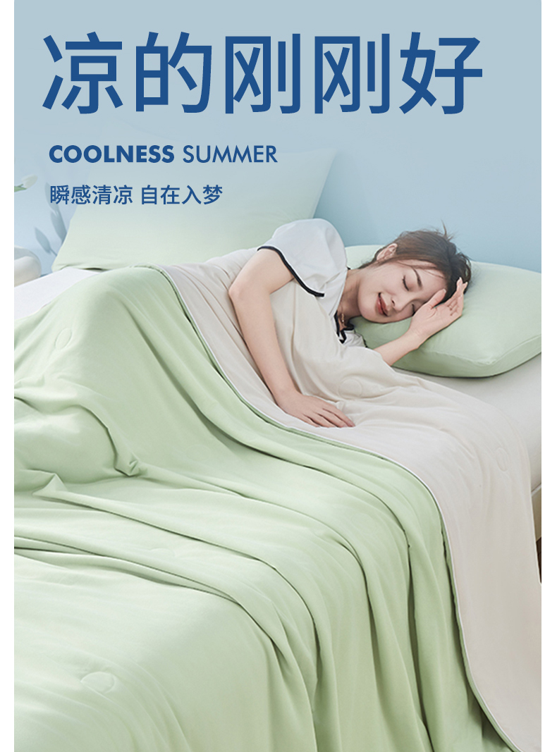 商品名称:梦恬佳 2025新款高克重A类双拼凉感丝针织棉夏凉被 奶油青提
