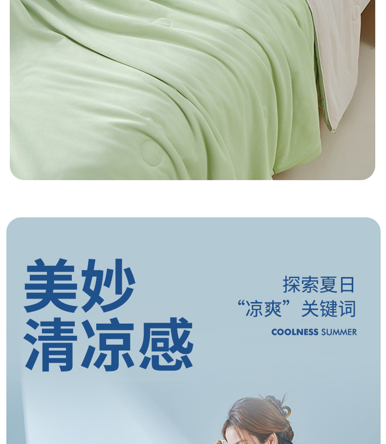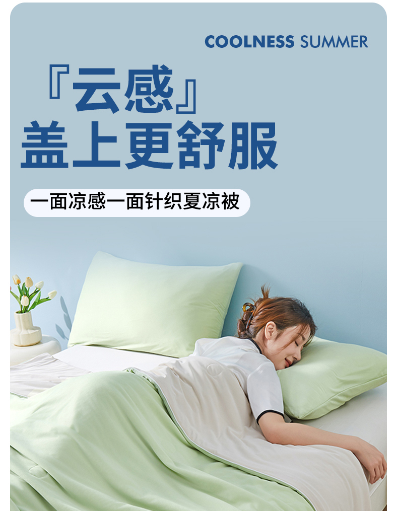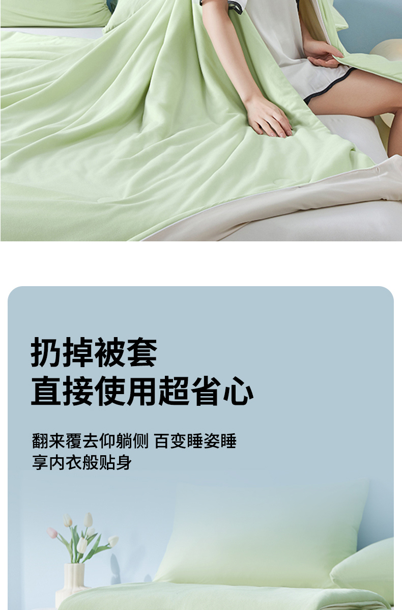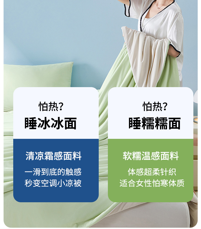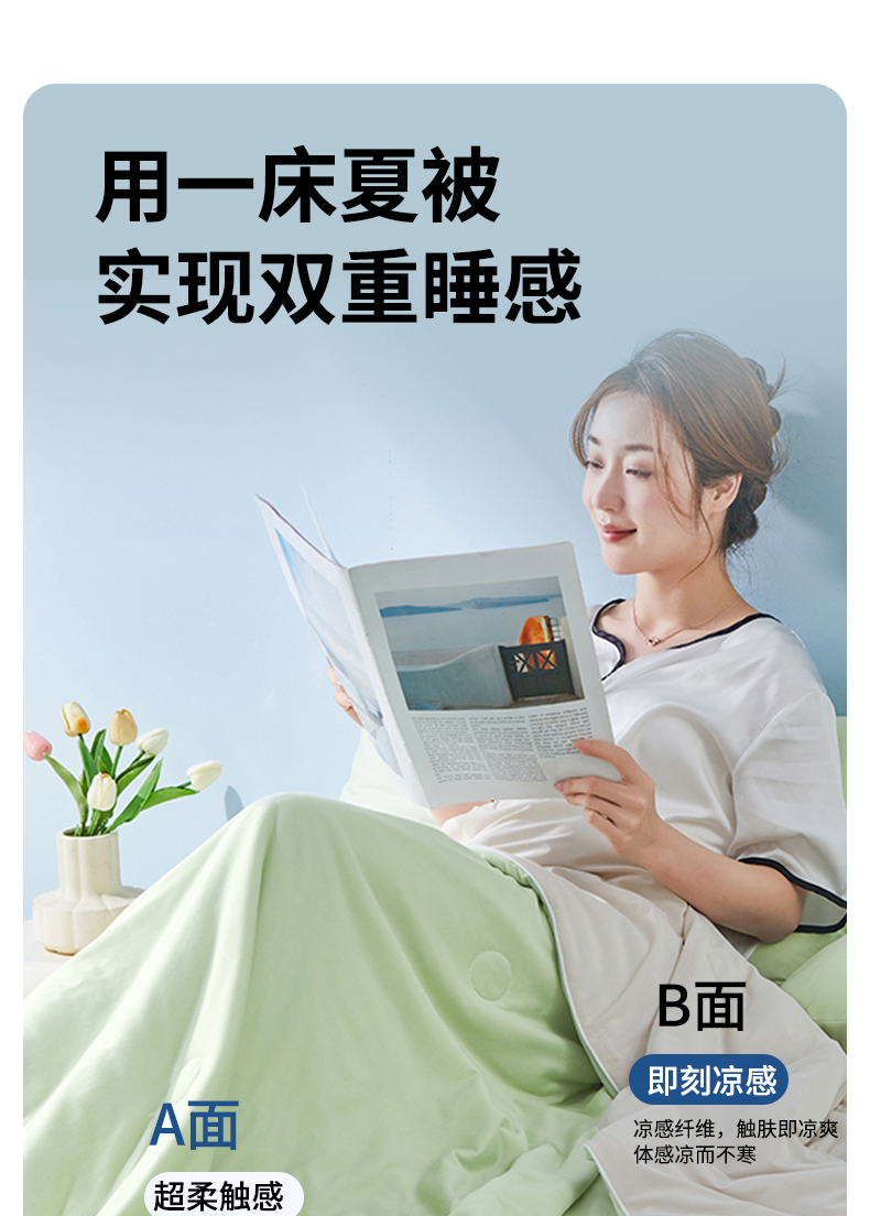 商品名称:梦恬佳 2025新款高克重A类双拼凉感丝针织棉夏凉被 奶油青提