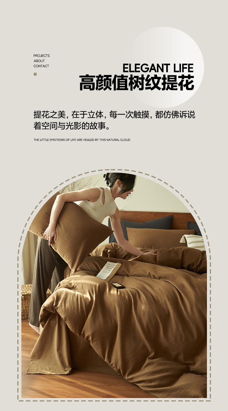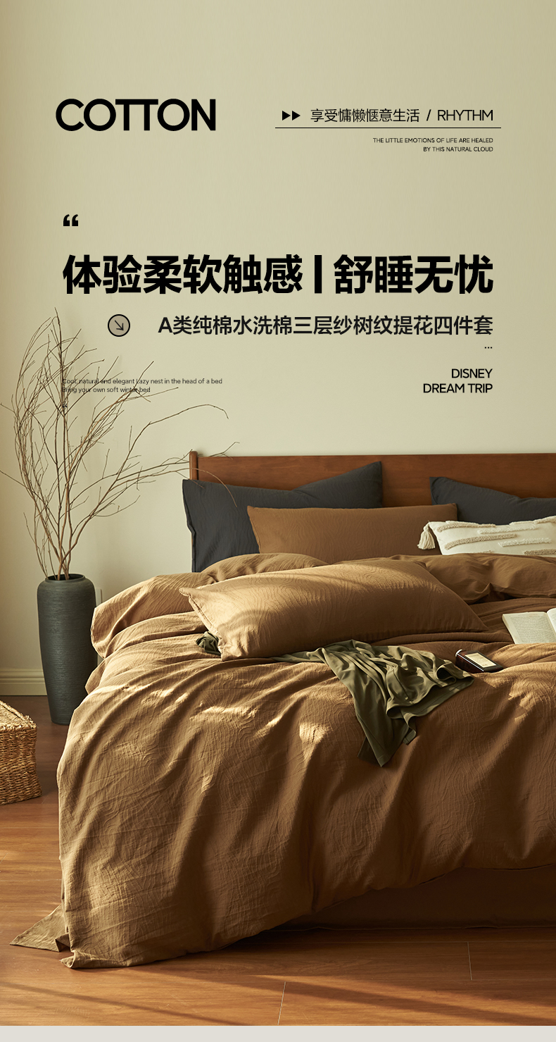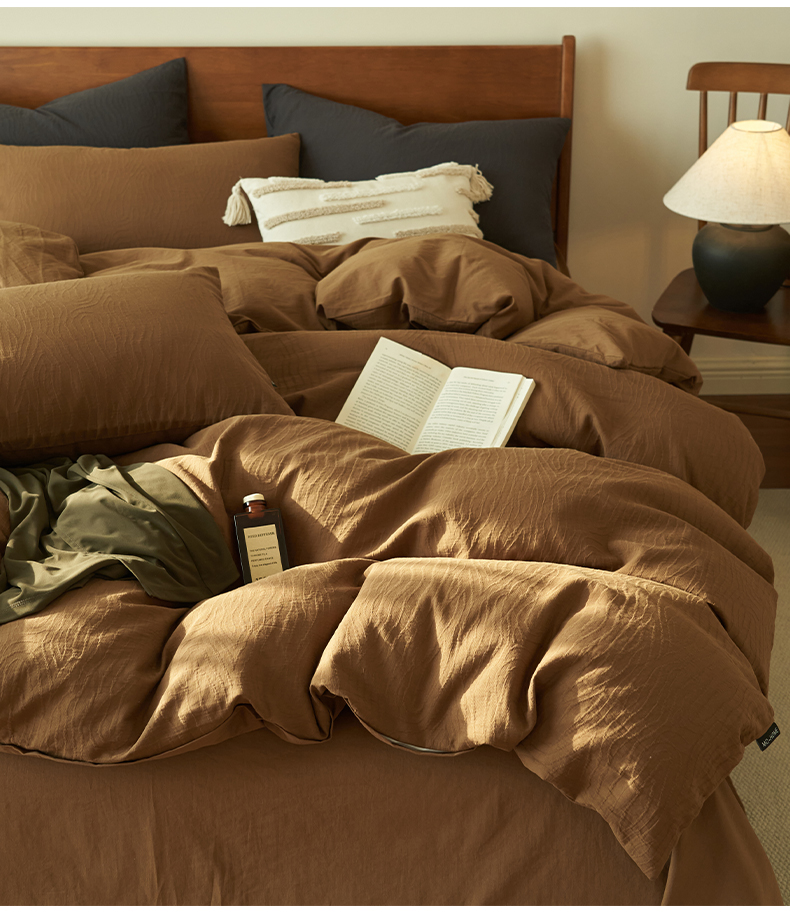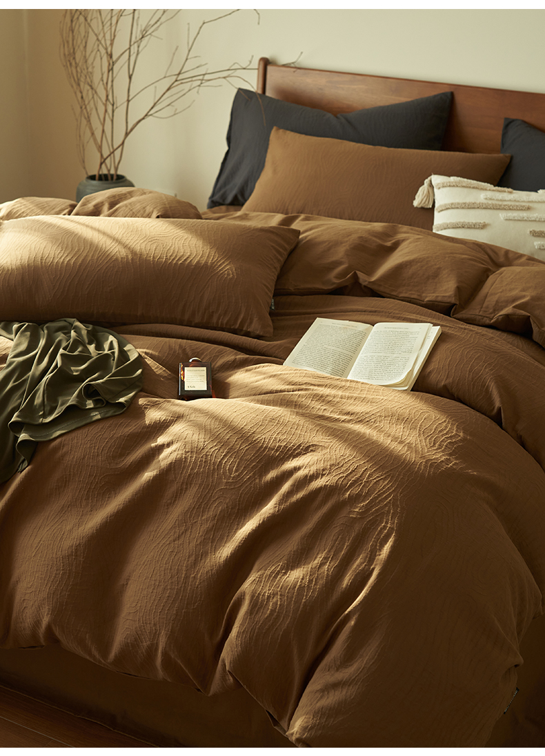 当前位置: 91家纺网 > 商品网购 > 床品套件 > 四件套 > 全棉活性四件套 > 2025新款纯棉水洗棉三层树纹提花四件套 三层纱树皮纹四件套-焦糖咖