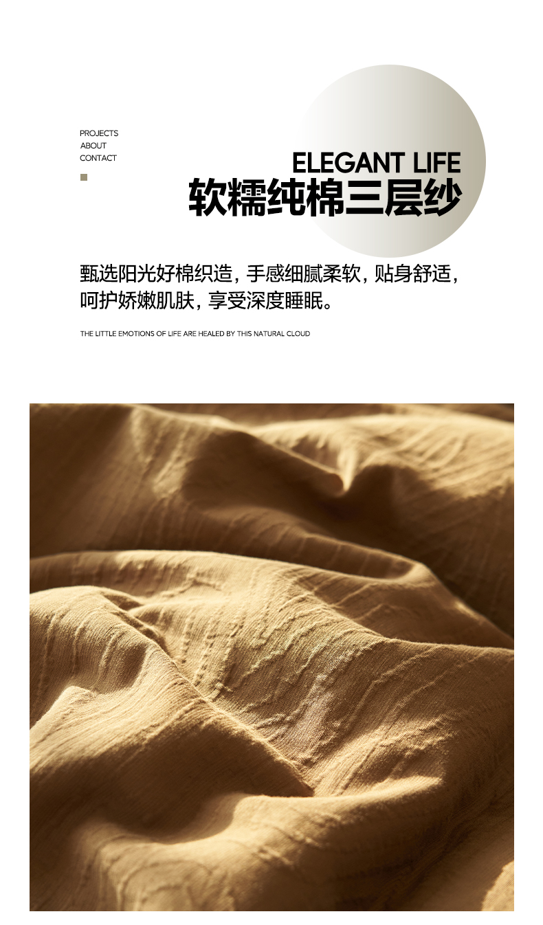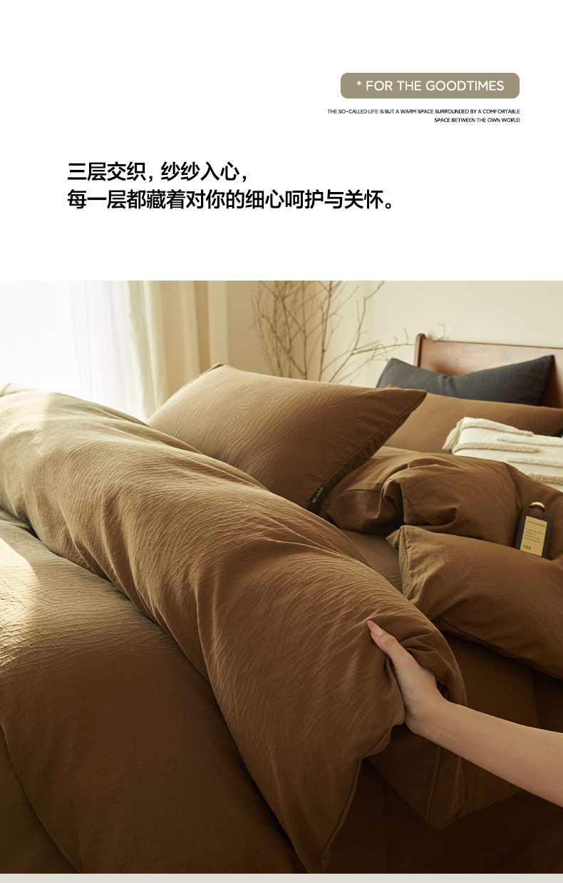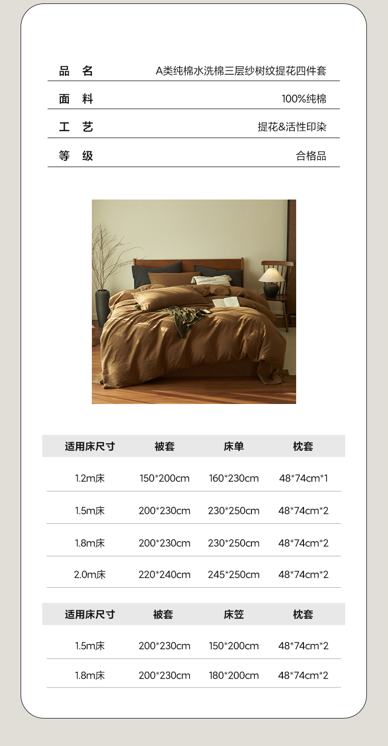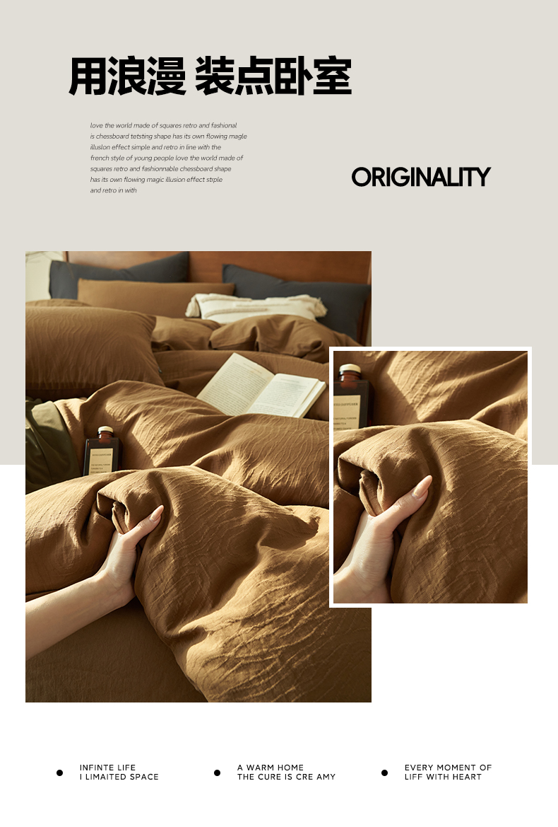 当前位置: 91家纺网 > 商品网购 > 床品套件 > 四件套 > 全棉活性四件套 > 2025新款纯棉水洗棉三层树纹提花四件套 三层纱树皮纹四件套-焦糖咖