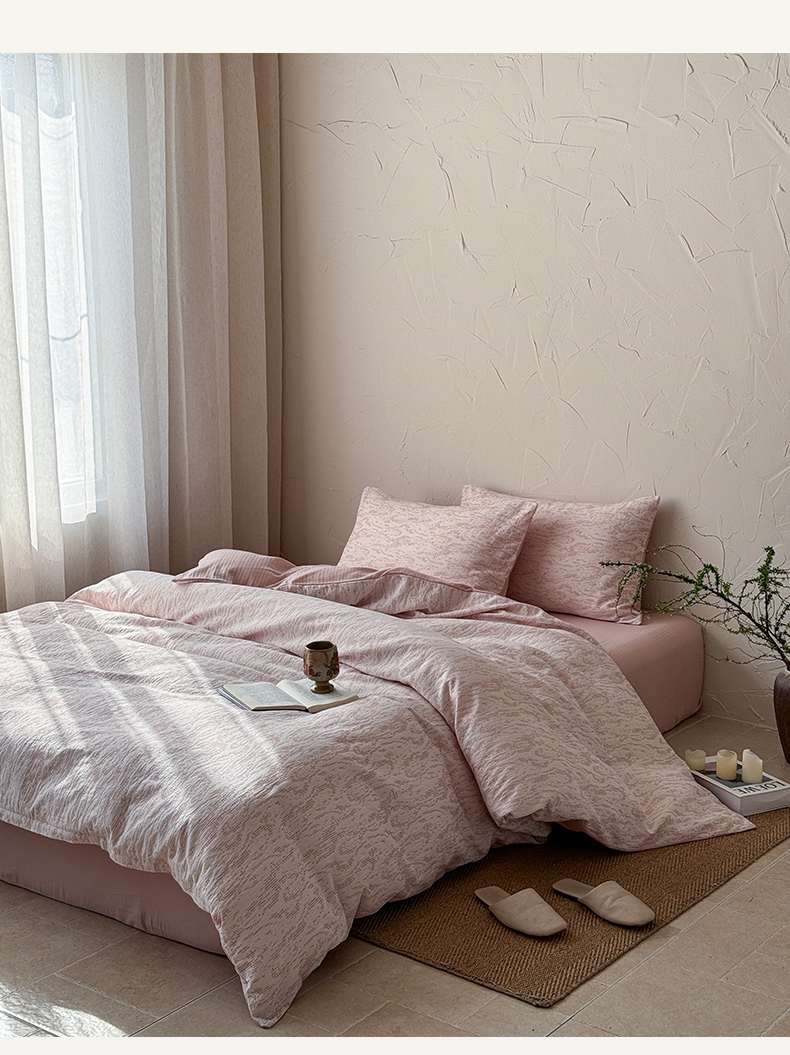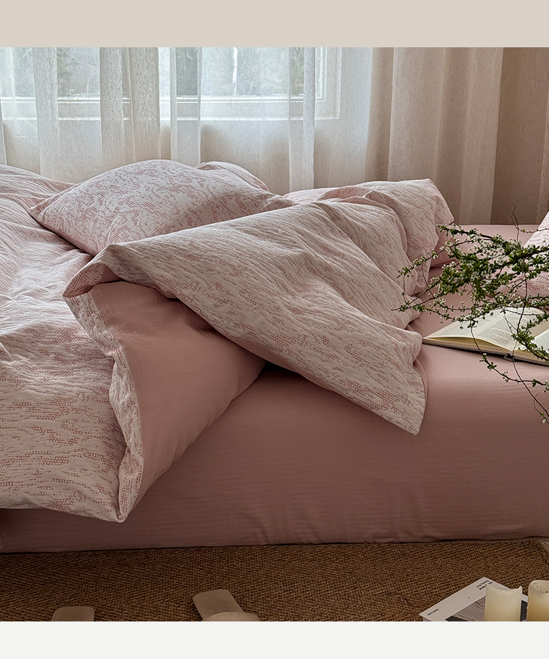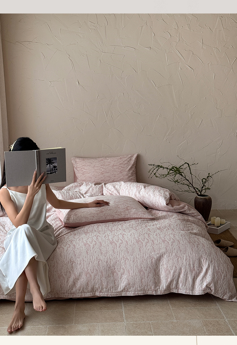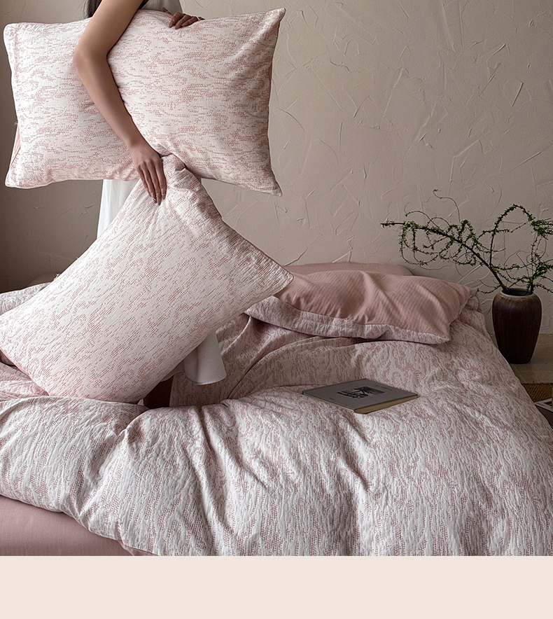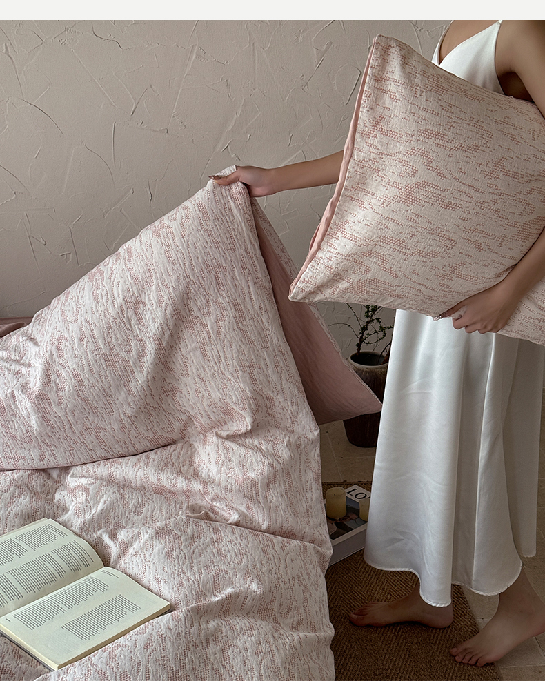 山舍家居 2025新款色织针刺子提花四件套-無由 無由-白桃