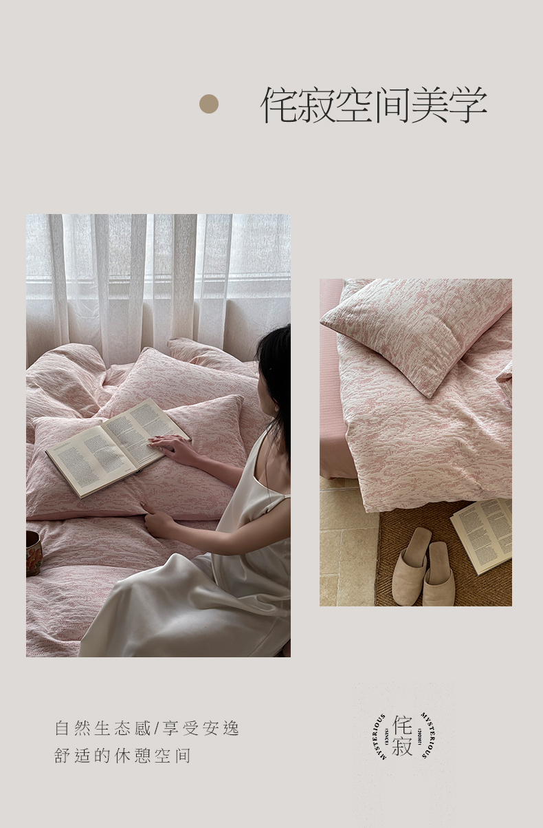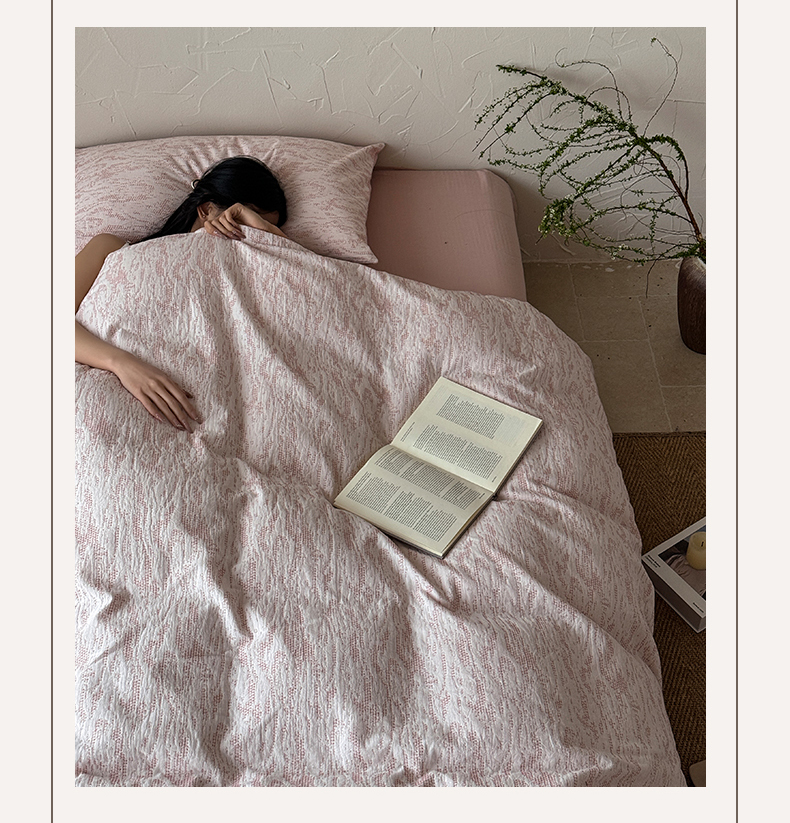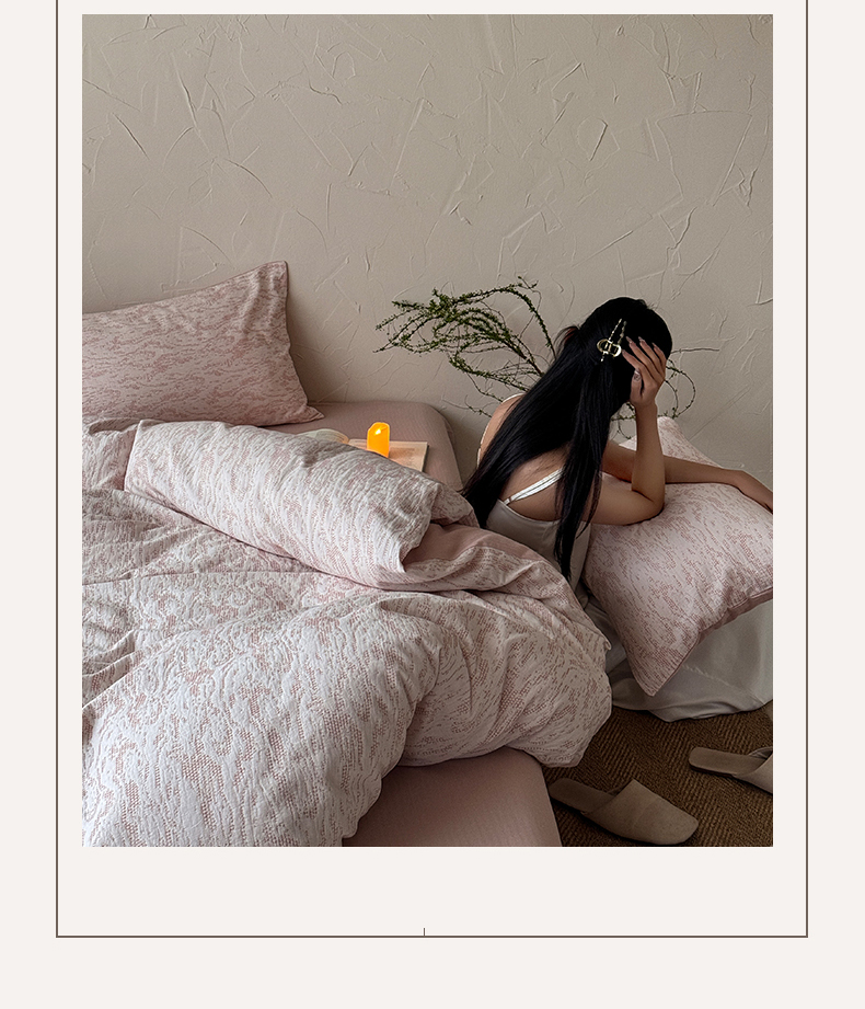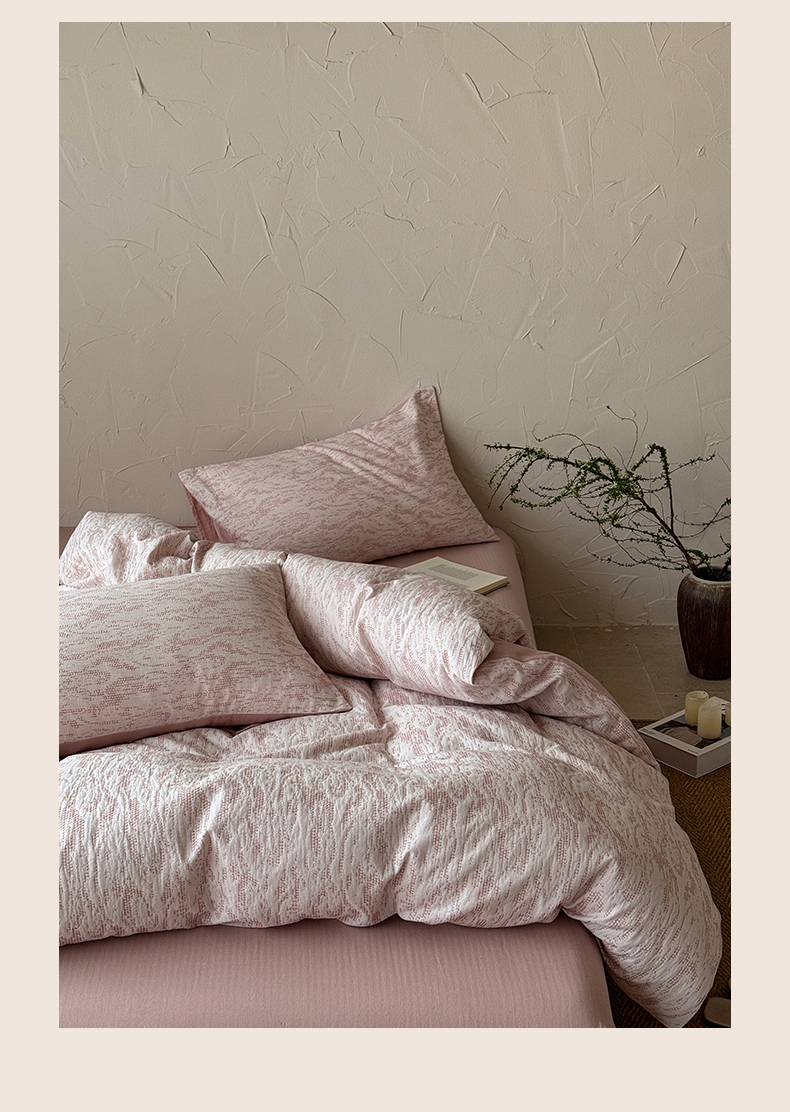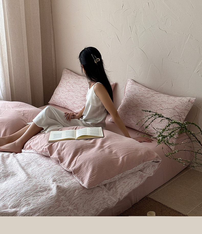 山舍家居 2025新款色织针刺子提花四件套-無由 無由-白桃