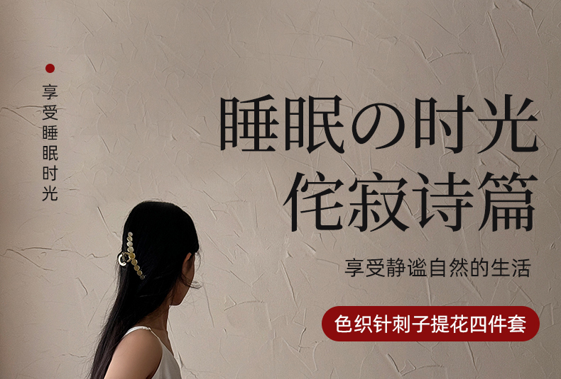 商品名称:山舍家居 2025新款色织针刺子提花四件套-無由 無由-白桃