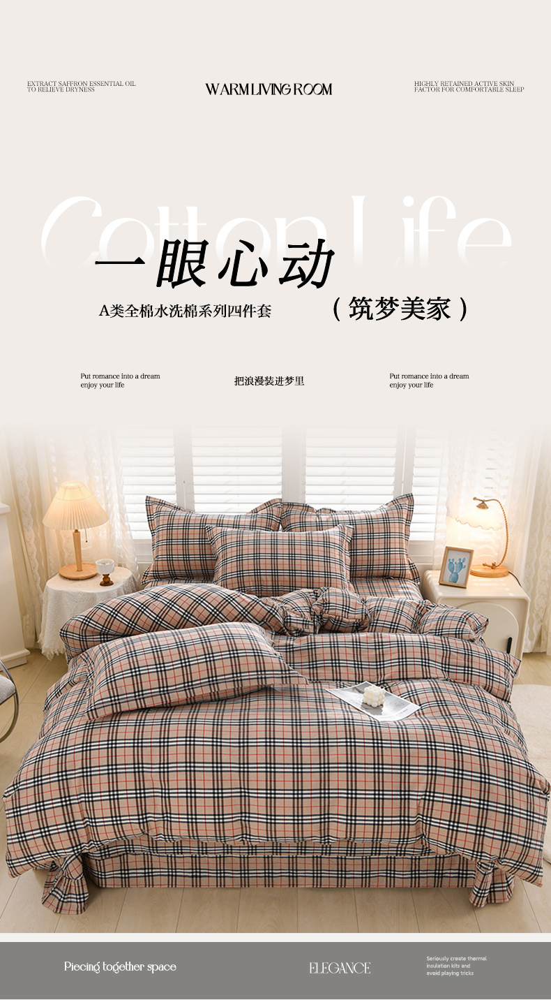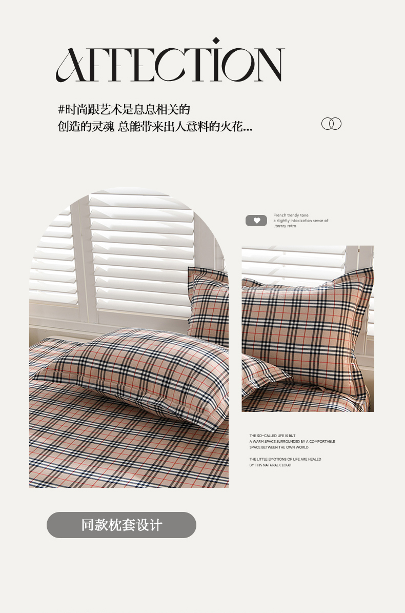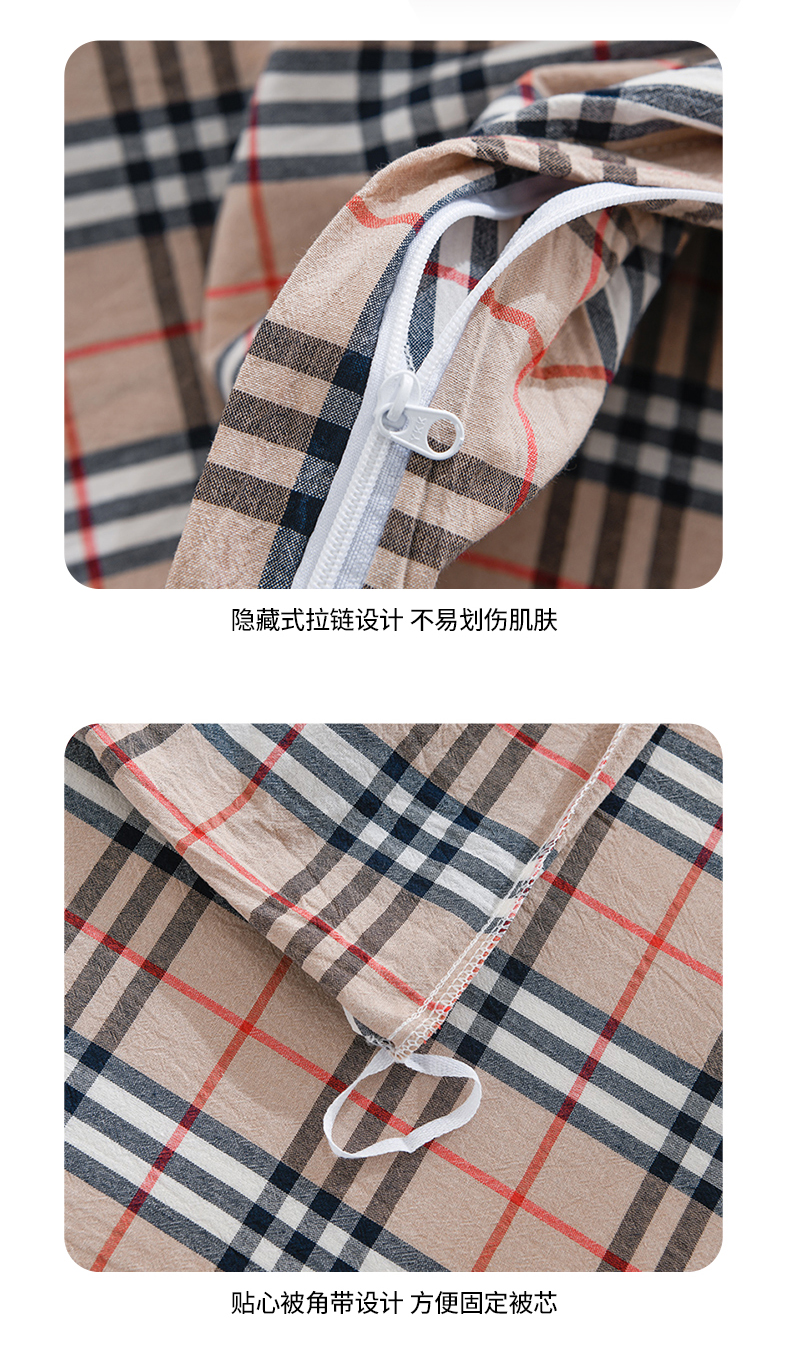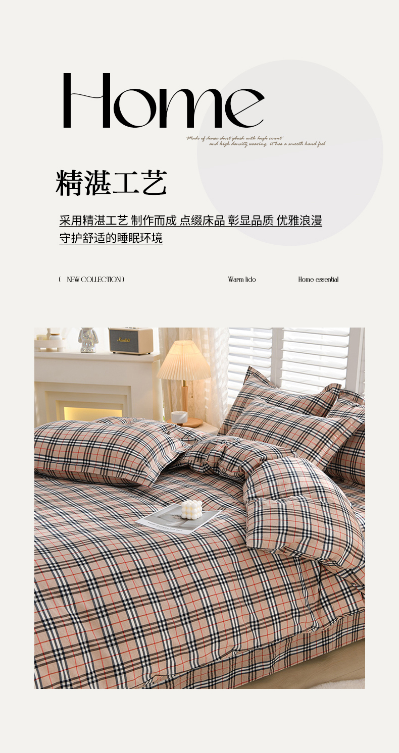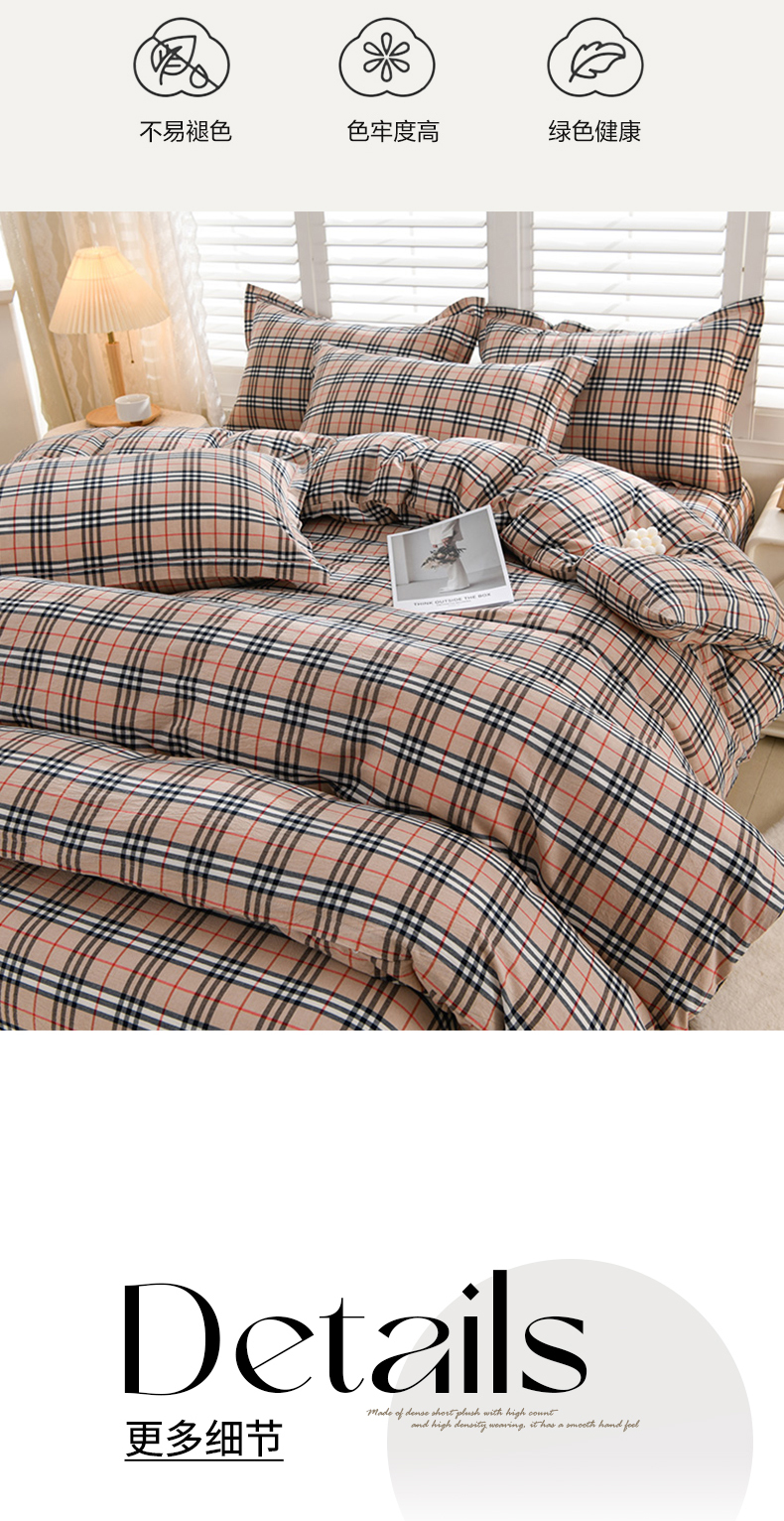 商品名称:润淳家居 2025新款A类全棉水洗棉四件套三件套 巴宝莉 迷你格